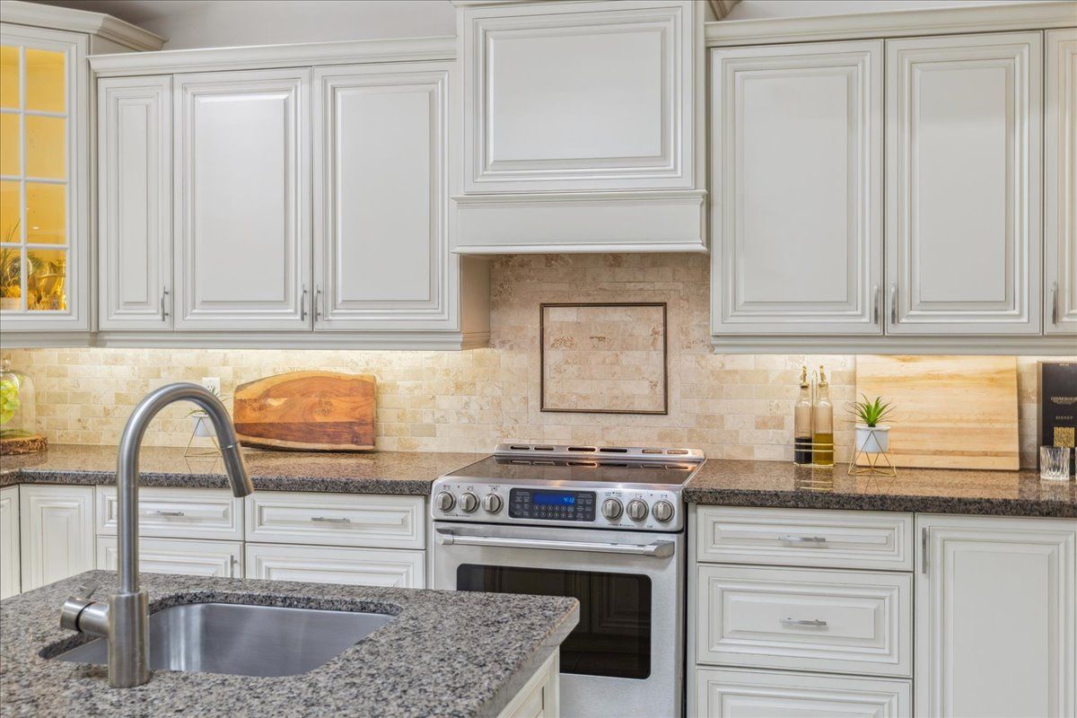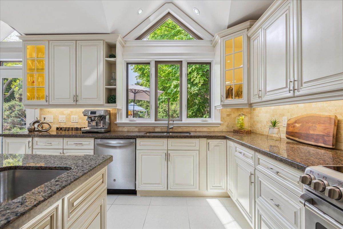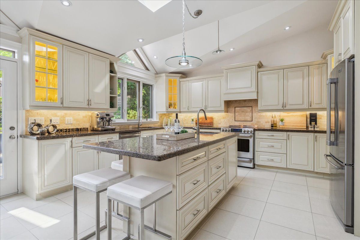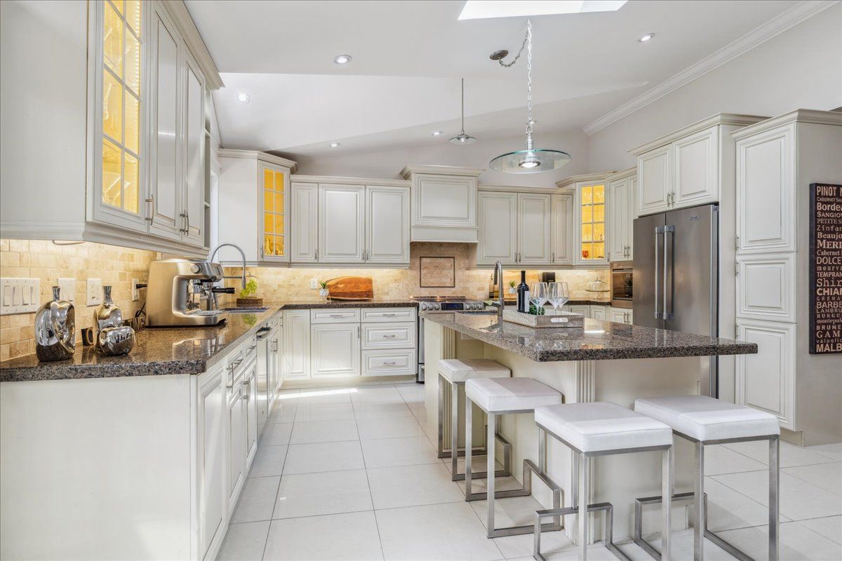 • Gourmet kitchen features granite counters and stainless steel appliances.