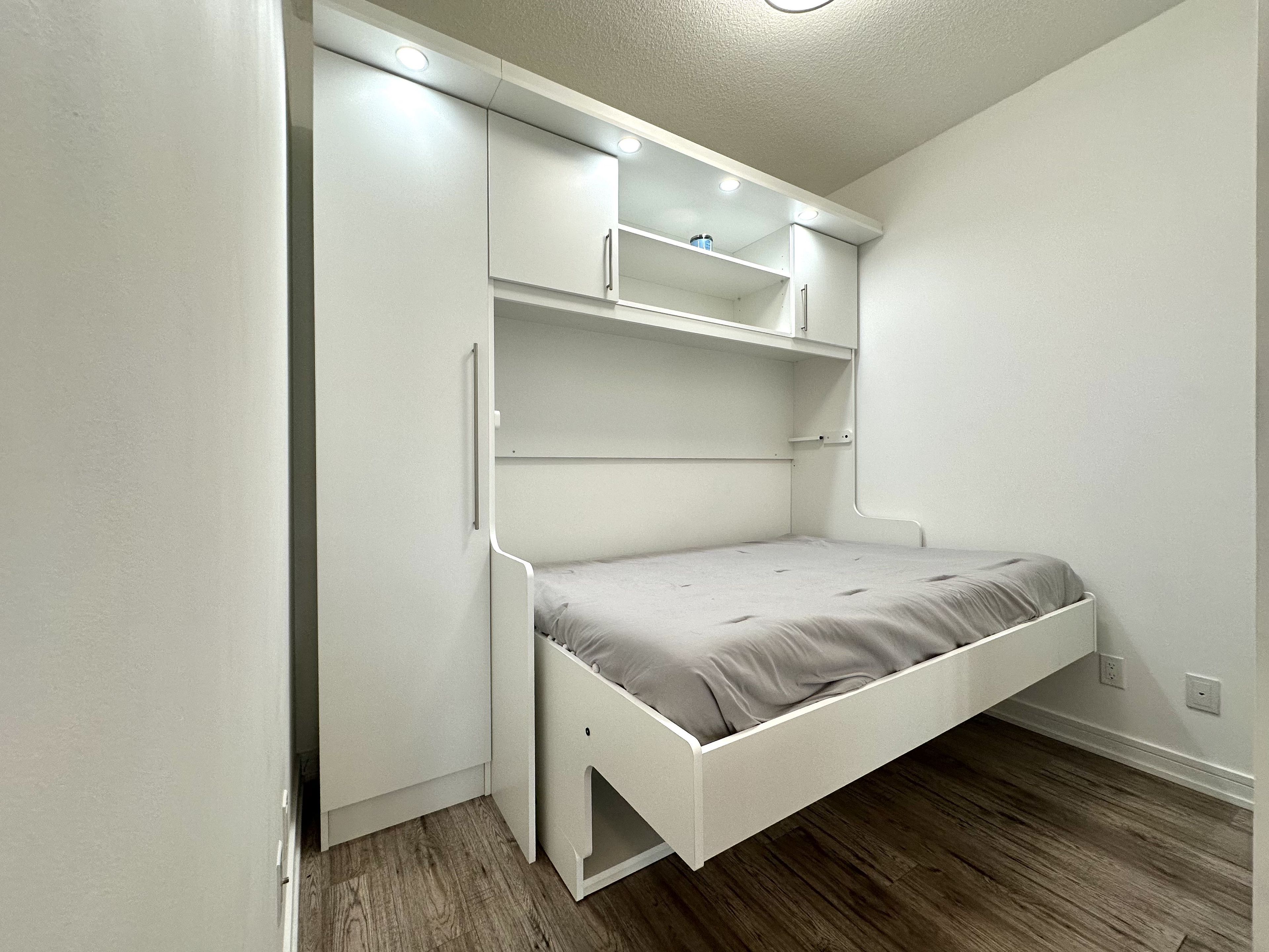 • Custom designed Murphy bed in second bedroom offers versatility.