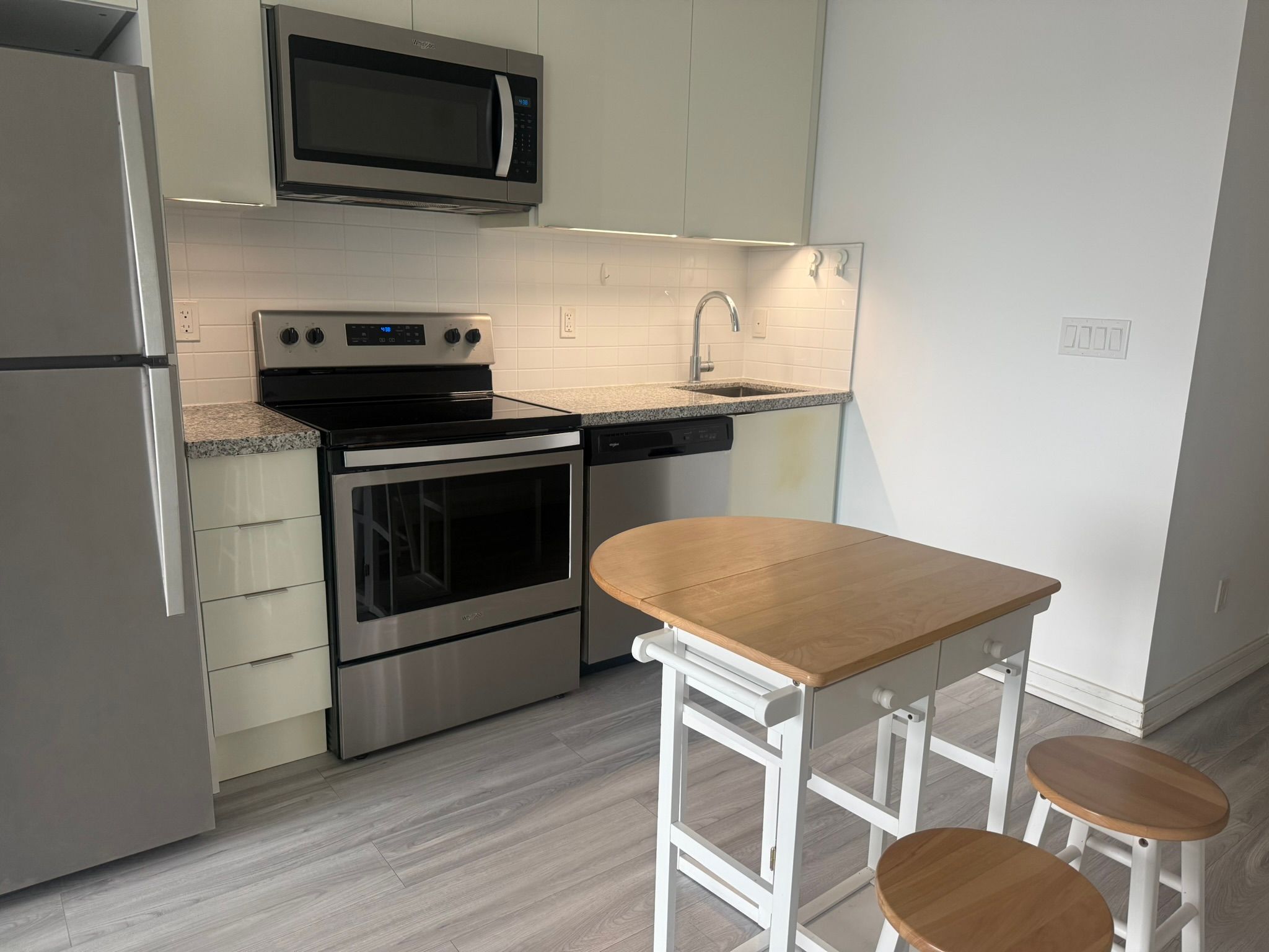 Enjoy the convenience and upscale living in the centre of the prestigious bayview village area. Ttc and bus stops are within minutes walk. Bayview village shopping mall, loblaws & restaurants are in proximity. Easy access to highway 401. This bright, south exposure, 9' ceiling, one bedroom unit has a large balcony across its bedroom and living room. The lots of upgrades makes it exceptionally tempting. The lease includes one parking spot and one locker. It is partially furnished with a 3-seater sofa, a floor lamp and a dining table and stools set.