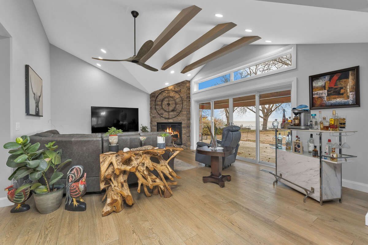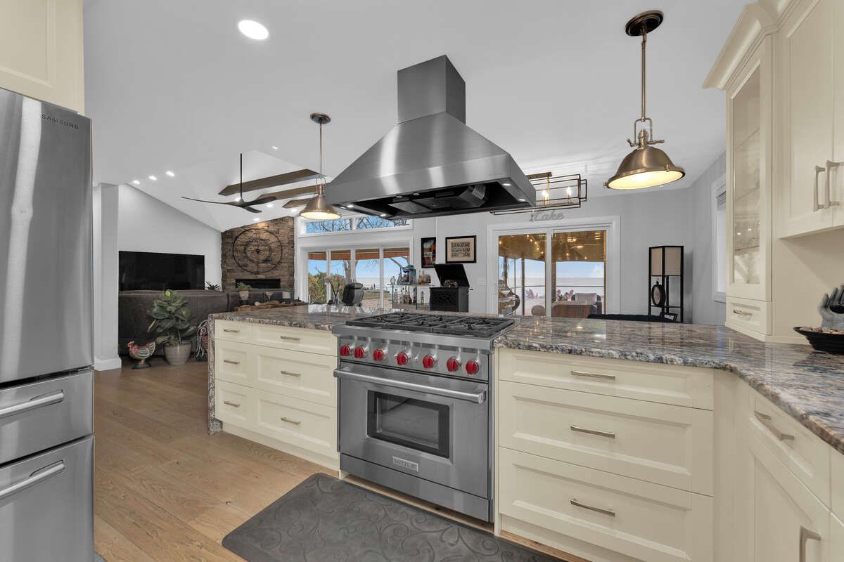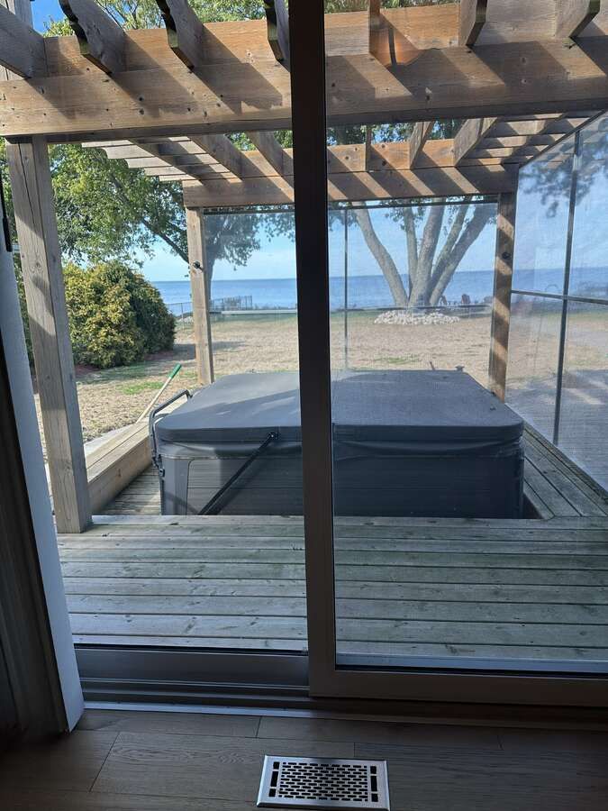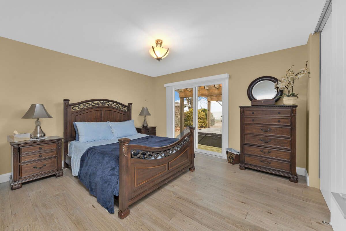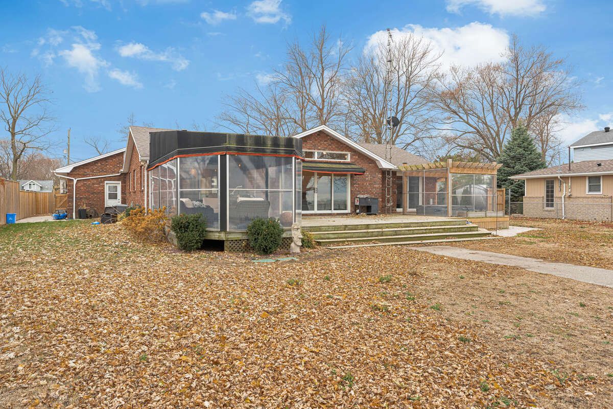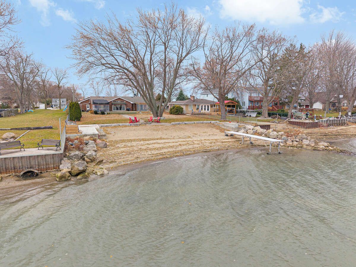 For more info on this property, please click the brochure button. Affordable lakeside living in this beautifully updated (2018) modern ranch-style home, offering 1,600 sq ft of open-concept living space on one floor, set on a generous 90' x 330' lot in the quiet community of stoney point, ontario. With incredible sunset and sunrise views, sandy beach and all the modern comforts, this property is the perfect blend of style, space, and serenity. Good fishing right off the the dock with a shallow sandy beach for the grandkids to enjoy. Spacious open-concept kitchen, dining, and living area with vaulted ceilings and gorgeous gas fireplace. Upgraded stainless steel appliances, including a professional wolf 6-burner gas stove & oven, ss hood fan, and modern cabinetry - ideal for entertaining or working in a well-appointed kitchen. Three comfortable bedrooms, including the primary bedroom with a new sliding patio door offering stunning lake views and access to a newer hot tub. Sprawling deck the width of the house, with a large covered awning off of the eating area (summer screens and winter walls included), a large seating/lounging area off the living room and a great covered hot tub. 1 large bathroom with updated finishes, large rain showerhead and double vanity. A convenient, beautifully appointed large half-bath located off the entertaining area. Ample storage with large closets, floor to roof doors, linen closet and additional utility space. Attached double car garage, heated/ac, epoxy flooring man cave/games room to enjoy all the big games! Additional new 1-1/2 car attached garage for indoor parking, more storage and pull down ladder for attic access. New landscaping, waterfront firepit, lakeside cement patios and sprinkler system installed in 2024. Ample parking for guests on new cement drive with additional large side pad to winter store your boat or rv if needed. 200 amp service, new tankless hot water, newer vinyl window.