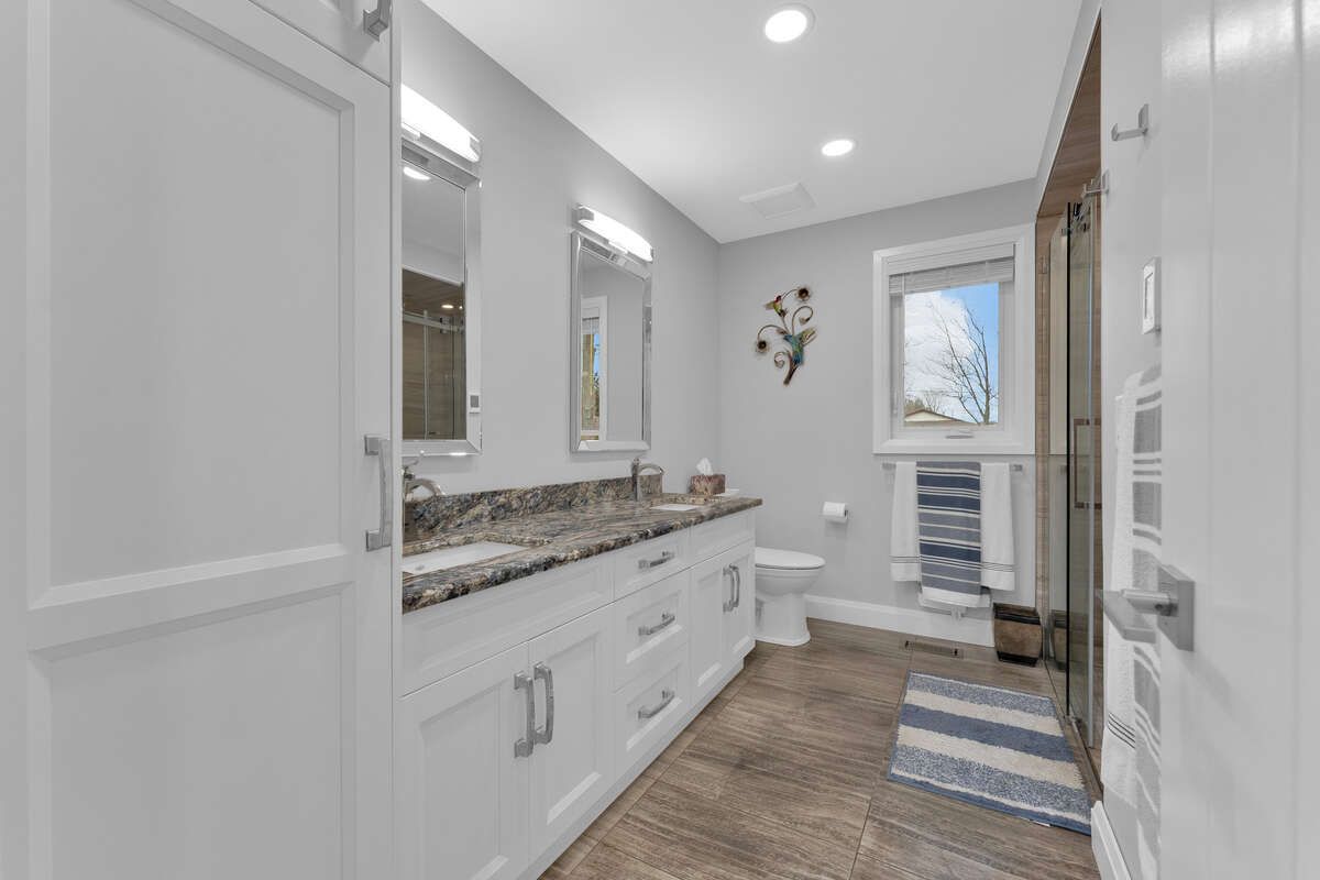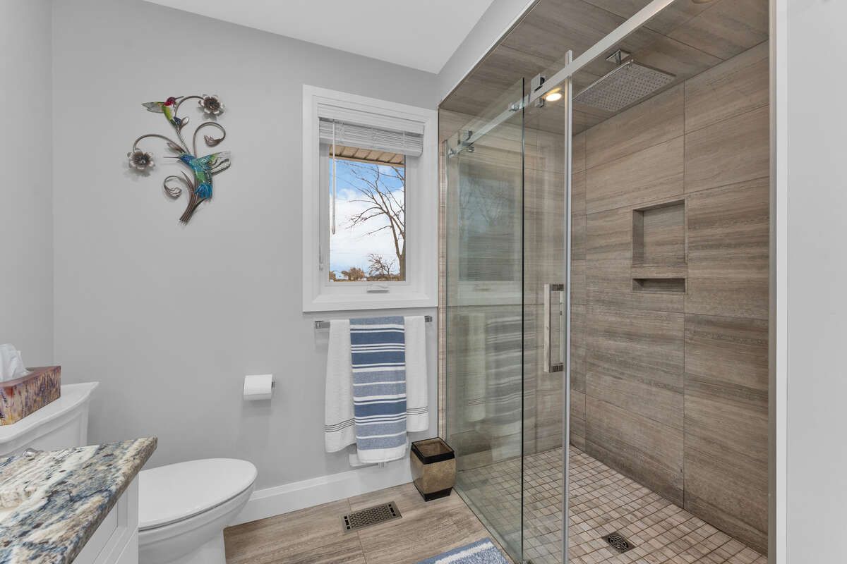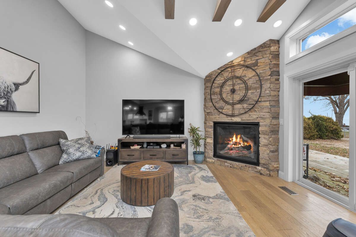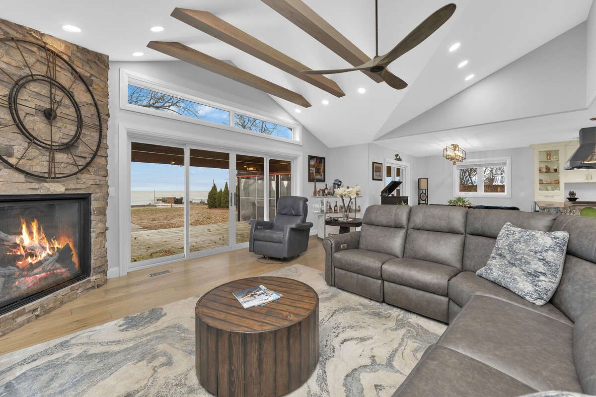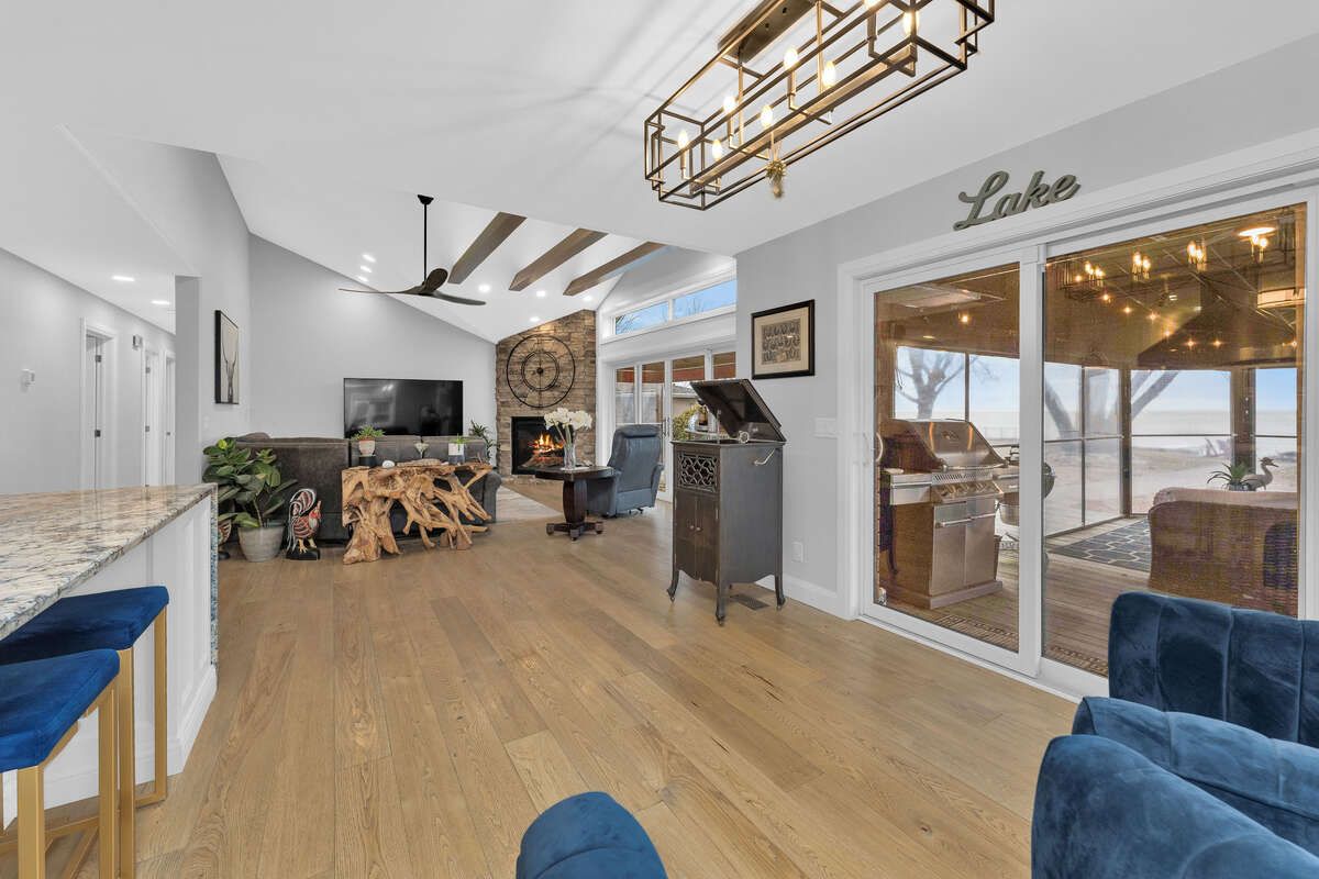 For more info on this property, please click the brochure button. Affordable lakeside living in this beautifully updated (2018) modern ranch-style home, offering 1,600 sq ft of open-concept living space on one floor, set on a generous 90' x 330' lot in the quiet community of stoney point, ontario. With incredible sunset and sunrise views, sandy beach and all the modern comforts, this property is the perfect blend of style, space, and serenity. Good fishing right off the the dock with a shallow sandy beach for the grandkids to enjoy. Spacious open-concept kitchen, dining, and living area with vaulted ceilings and gorgeous gas fireplace. Upgraded stainless steel appliances, including a professional wolf 6-burner gas stove & oven, ss hood fan, and modern cabinetry - ideal for entertaining or working in a well-appointed kitchen. Three comfortable bedrooms, including the primary bedroom with a new sliding patio door offering stunning lake views and access to a newer hot tub. Sprawling deck the width of the house, with a large covered awning off of the eating area (summer screens and winter walls included), a large seating/lounging area off the living room and a great covered hot tub. 1 large bathroom with updated finishes, large rain showerhead and double vanity. A convenient, beautifully appointed large half-bath located off the entertaining area. Ample storage with large closets, floor to roof doors, linen closet and additional utility space. Attached double car garage, heated/ac, epoxy flooring man cave/games room to enjoy all the big games! Additional new 1-1/2 car attached garage for indoor parking, more storage and pull down ladder for attic access. New landscaping, waterfront firepit, lakeside cement patios and sprinkler system installed in 2024. Ample parking for guests on new cement drive with additional large side pad to winter store your boat or rv if needed. 200 amp service, new tankless hot water, newer vinyl window.