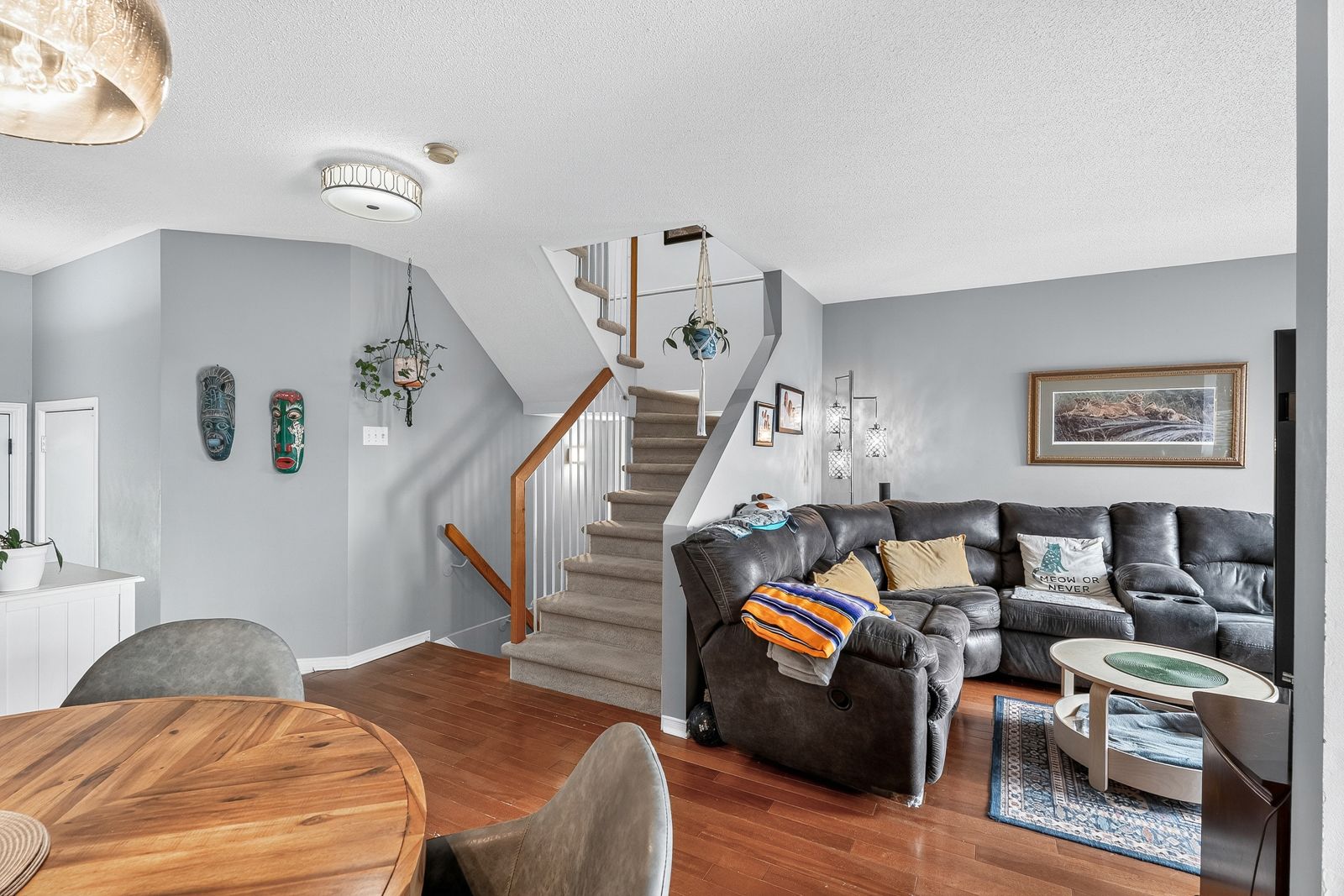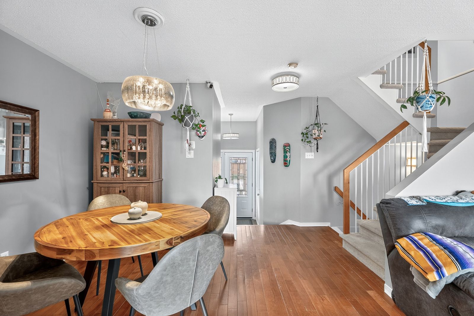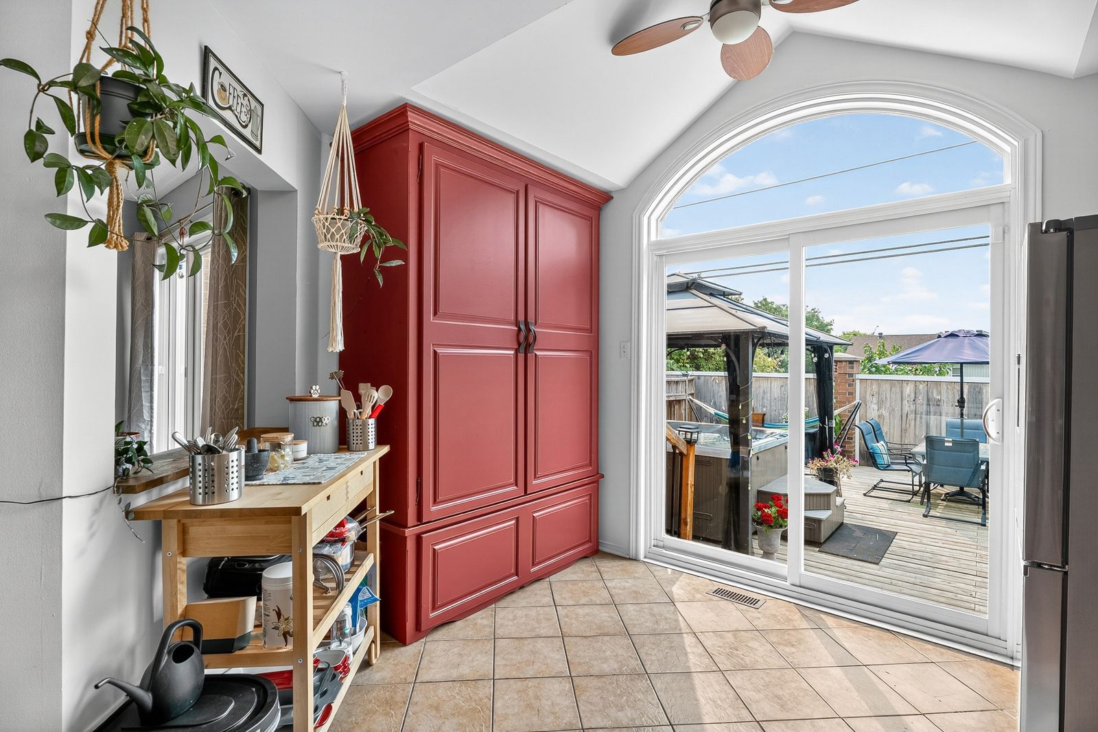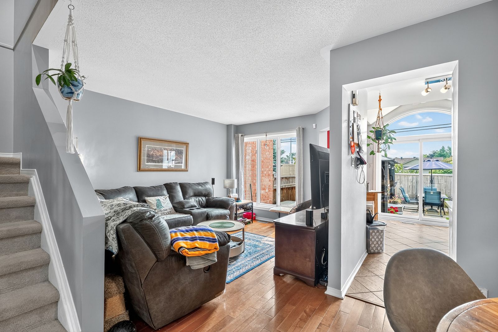 This impeccably maintained 3-bedroom, 3-bathroom row unit offers stylish living with numerous high-end upgrades, including a modern kitchen with quartz countertops, marble backsplash, stainless steel appliances, and task lighting, plus a stunning floor-to-ceiling pantry. The main floor features a dining room, welcoming living room, and a conveniently located powder room. Step outside to a maintenance-free backyard oasis, fully decked and fenced, featuring a 7-person beachcomber hot tub, gazebo, and natural gas bbq line - perfect for entertaining. Upstairs boasts spacious bedrooms, including a 3-piece ensuite in the principal bedroom, while the lower level offers a bright family room with high ceilings, laundry, and ample storage. Major upgrades within the last 15 years: patio door, front door, windows, shingles & ice shield, high-efficiency gas furnace, central air, garage door & opener. This home blends comfort, quality, and convenience in every corner!