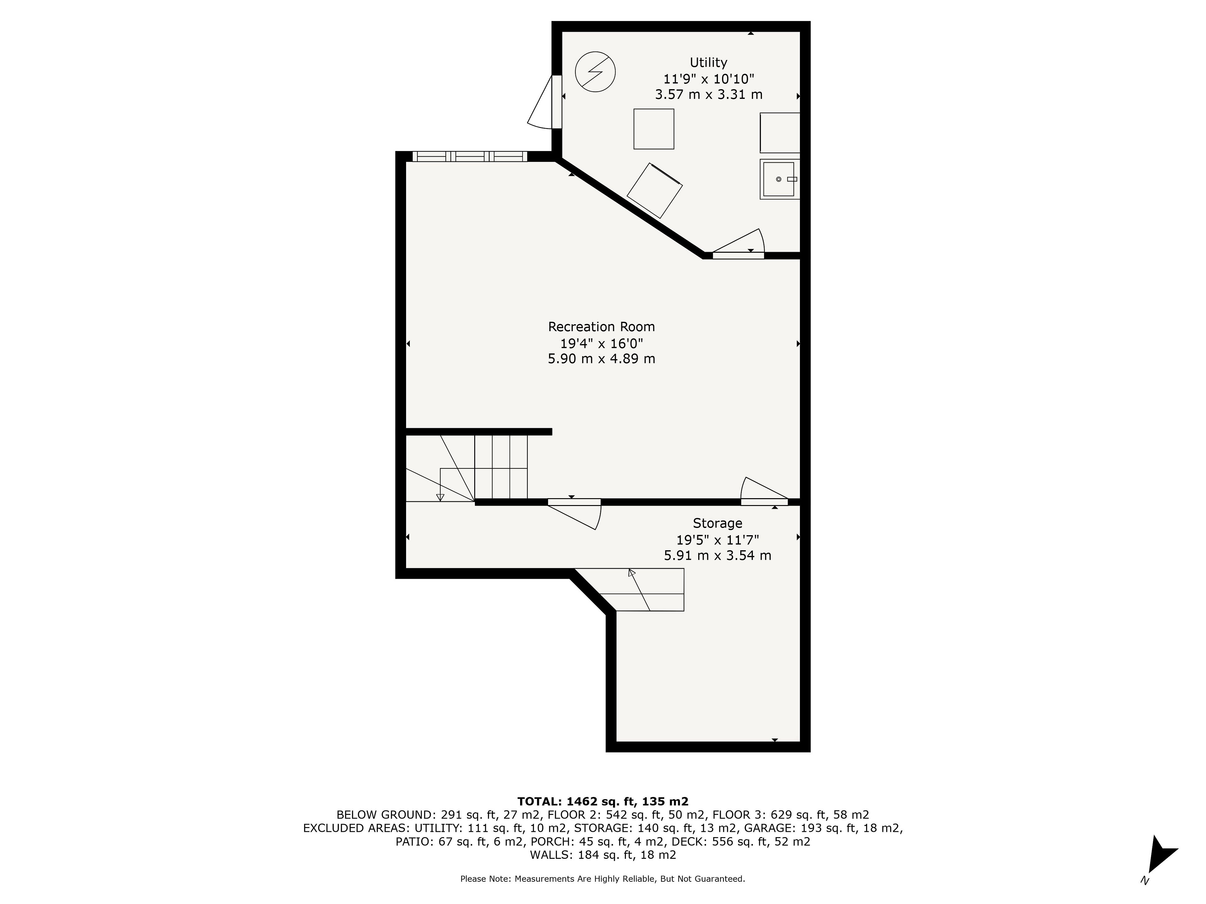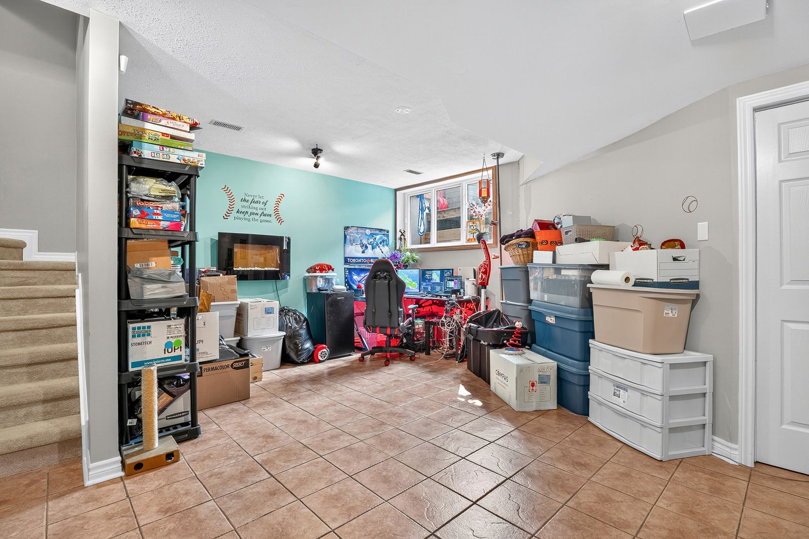 • Bright family room in the lower level with high ceilings and storage.