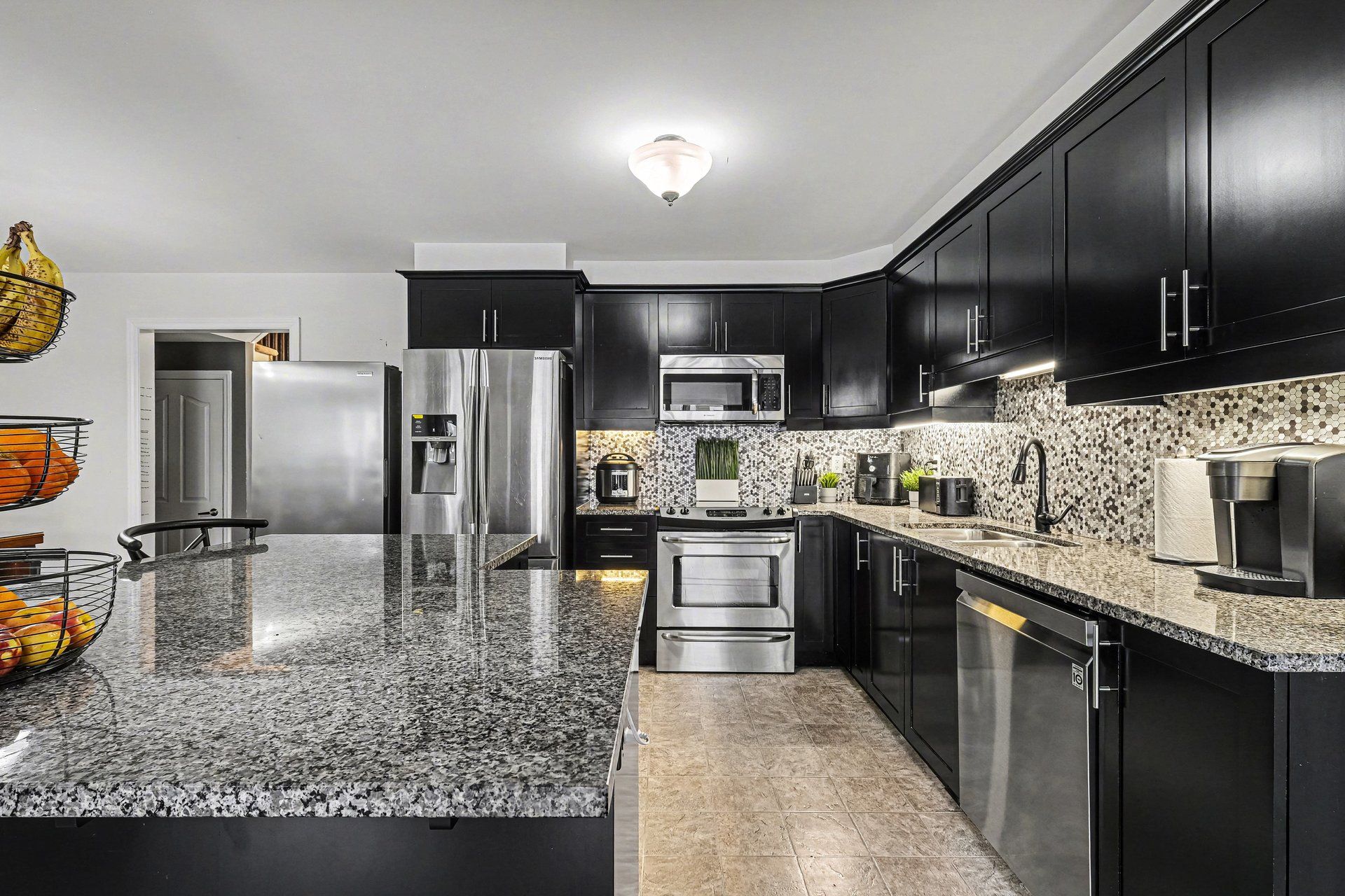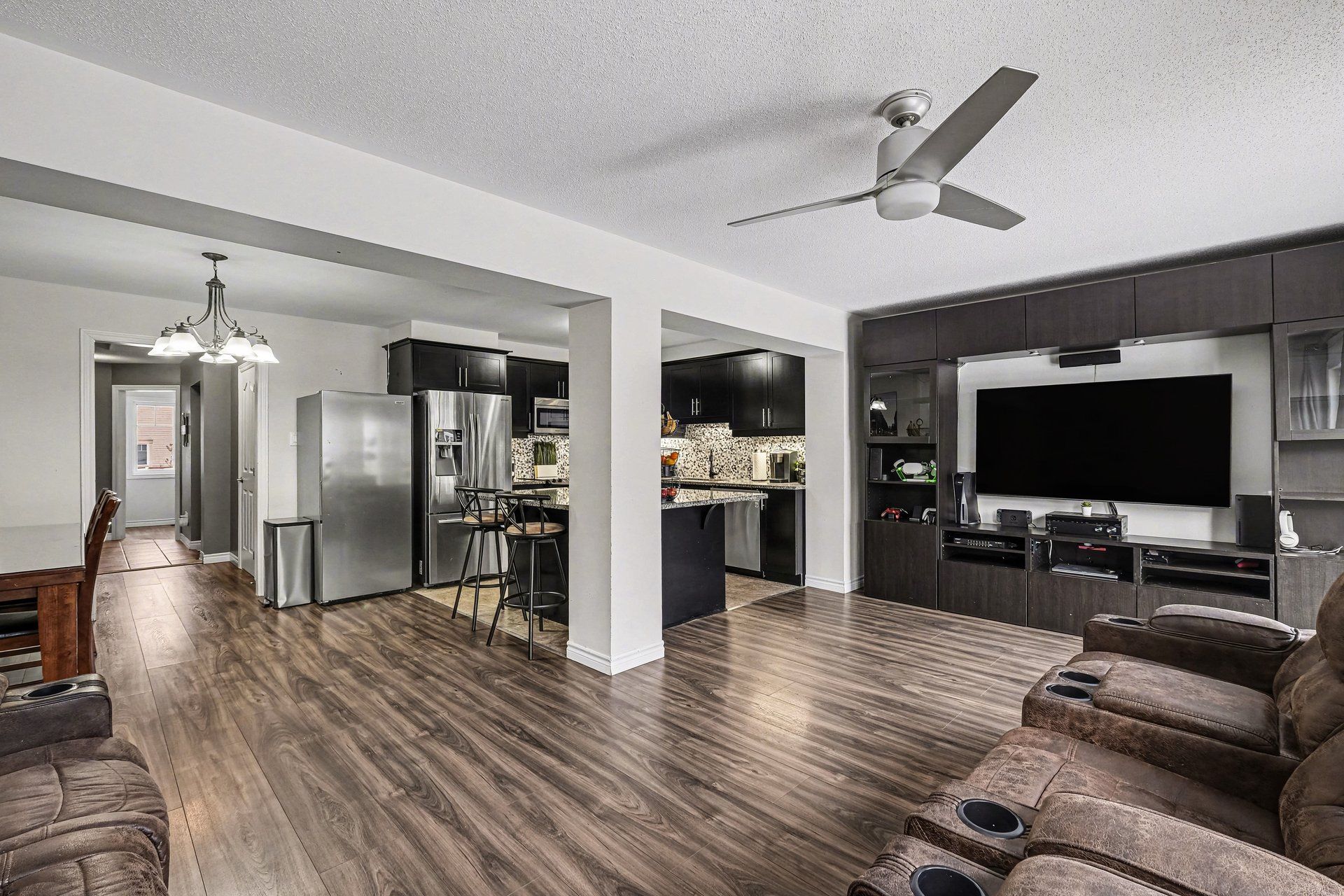 • Open-concept main floor with granite countertops and spacious chef's island.