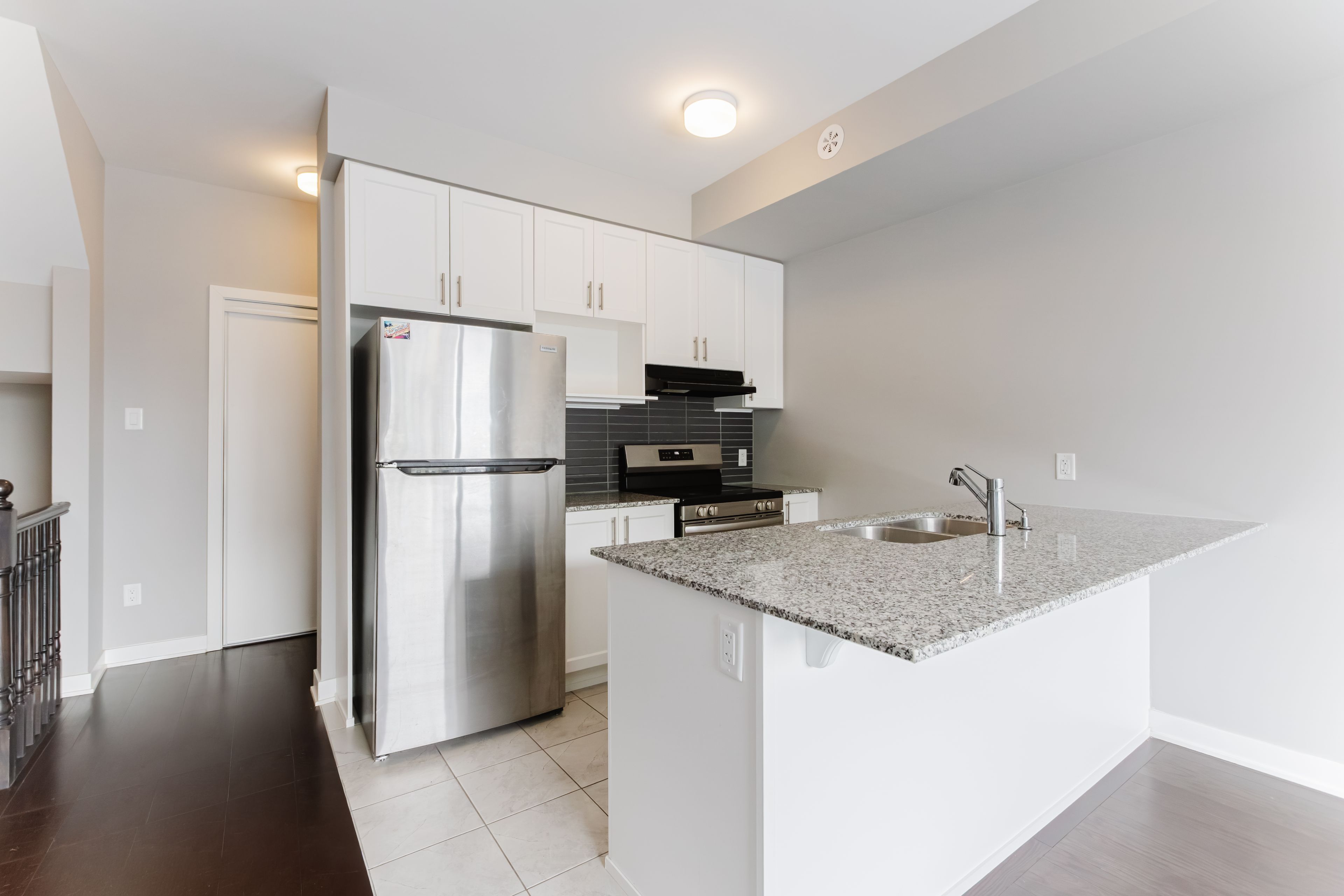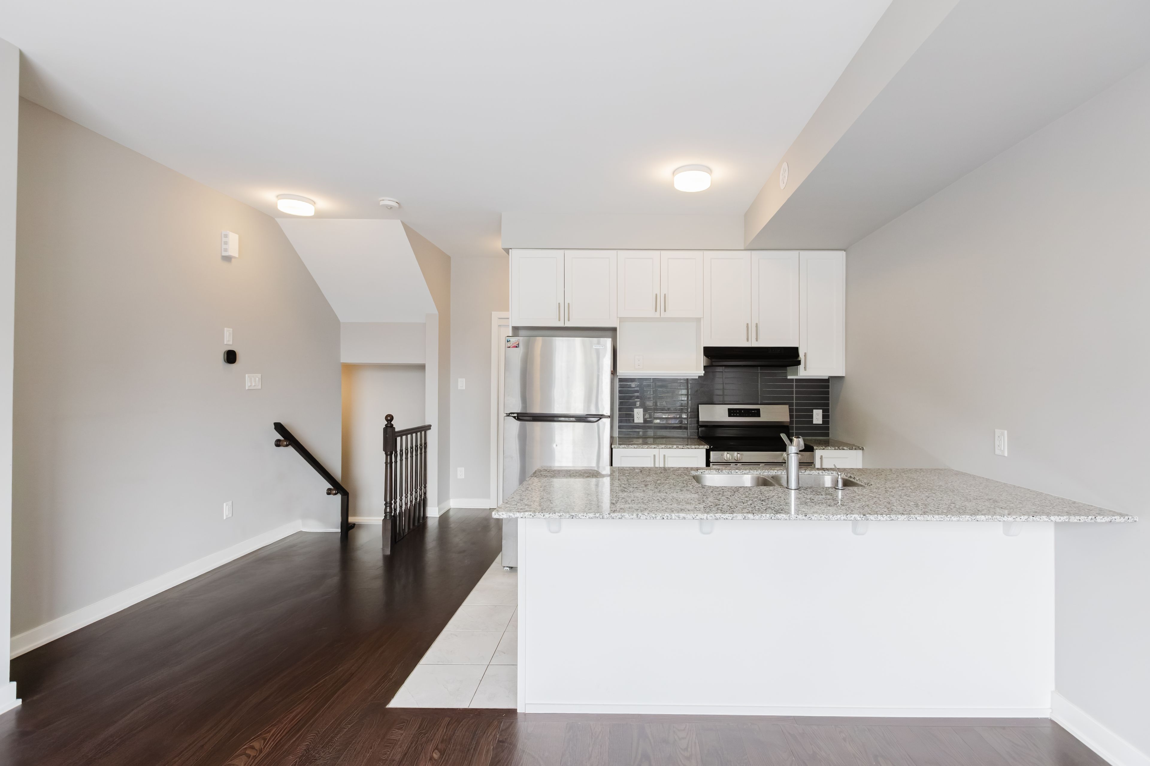 Experience modern living in this stunning 2 bed, 1. 5 bath stacked home located in wateridge's master-planned community, just steps from the ottawa river and a short drive to downtown. Surrounded by parks, trails, and top-tier amenities, this vibrant neighborhood offers the perfect blend of convenience and nature. The britannia unit boasts a bright, open-concept layout with 9-foot ceilings on both levels, enhancing the spacious feel. The main level features sleek laminate flooring throughout and an upgraded floor plan that includes a powder room for added convenience. The modern kitchen is equipped with white cabinetry, quartz countertops, a stylish backsplash, and a breakfast bar overlooking the living and dining area ideal for entertaining. On the lower level, you'll find two generously sized bedrooms with ample closet space. The full bathroom is beautifully designed with quartz countertops and under-mount sinks, adding a touch of luxury. This home also includes one outdoor parking space. Located just minutes from shopping, restaurants, grocery stores, parks, schools, public transportation, and sports clubs, this home offers modern comfort in an unbeatable location. Don't miss out schedule your viewing today!