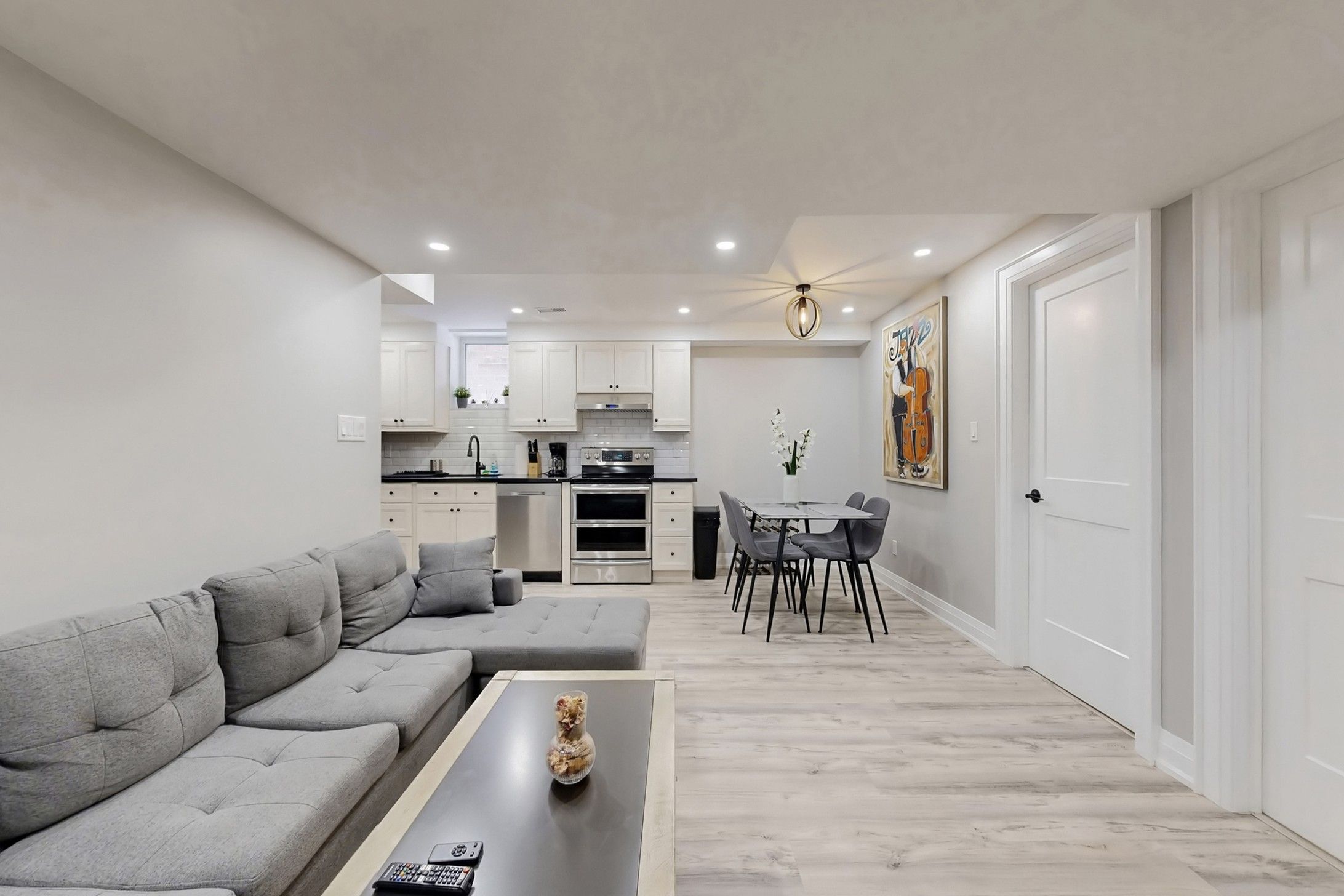 Welcome to this rarely offered 4-bedroom semi-detached home in the heart of newmarket, offering over 2,000 sq. Ft. Above grade and an exceptional open-concept layout perfect for modern family living. The main floor features 9-ft ceilings, hardwood floors throughout (except basement), a striking oak staircase, central vacuum, and convenient main floor laundry. The upgraded kitchen boasts quartz countertops, stylish backsplash, breakfast bar, gas line to the stove and bbq, and flows seamlessly into the bright living and dining areas with walk-out to the backyard, making it ideal for entertaining. Upstairs, the very spacious primary bedroom offers a luxurious 5-piece ensuite, complemented by three additional generously sized bedrooms and multiple bathrooms throughout the home. Step outside to your own private backyard oasis, featuring interlocking stone (2023) and plenty of space for relaxation and gatherings. The fully self-contained basement apartment offers incredible versatility with a separate entrance and separate laundry, a full kitchen with fridge, stove and dishwasher, a 3pc bathroom, one large bedroom with generous closet space plus an additional walk-in closet, luxury vinyl flooring, and an electric fireplace. The basement has been thoughtfully finished with rockwool safe 'n' sound insulation, fire-rated drywall, and wired smoke and carbon monoxide alarms for added safety and comfort. Unbeatable location - steps to top-rated schools, community centre, parks, trails, and all amenities, including upper canada mall, costco, the go station, and quick access to highways 400 and 404. A perfect home for families and entertaining, offering space, comfort, and exceptional convenience in one of newmarket's most desirable communities... Live where you're inspired!
