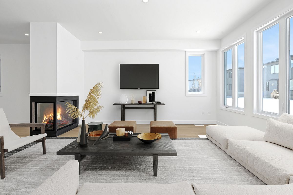 • Spacious main floor featuring 9-foot ceilings and a 3-sided gas fireplace.