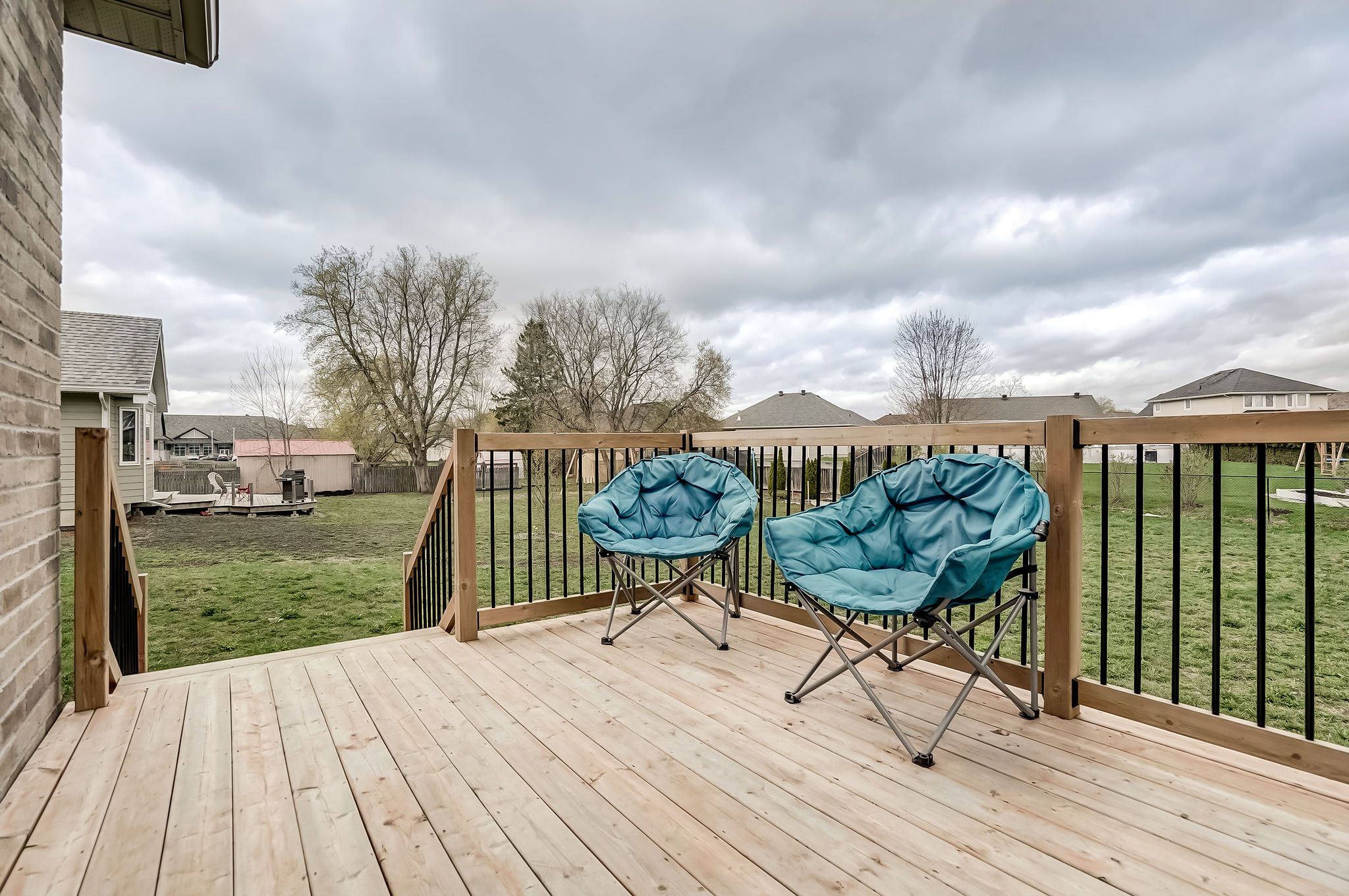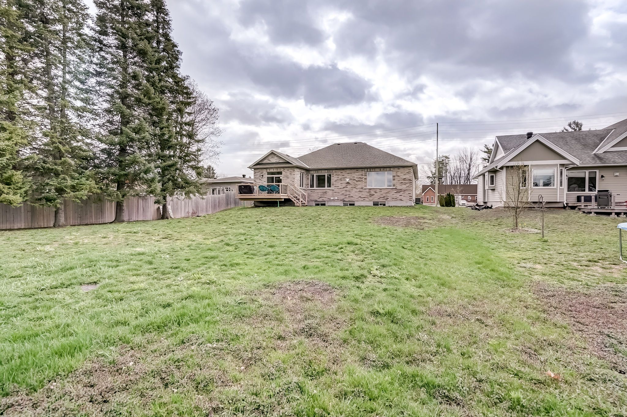 • Spacious backyard with wooden deck, perfect for outdoor enjoyment.