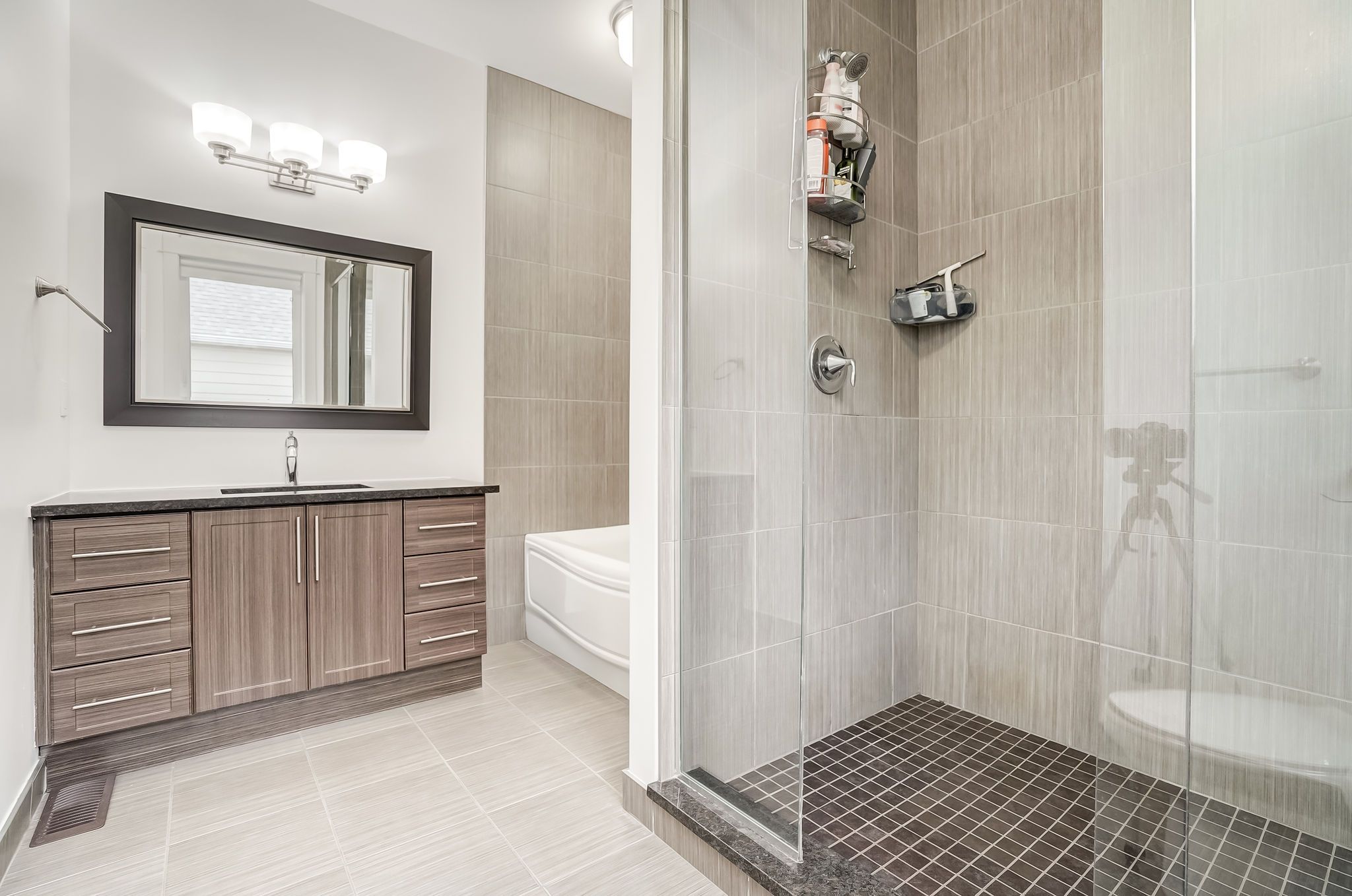 • Upper unit has 3 bedrooms, a primary suite, and modern kitchen amenities.