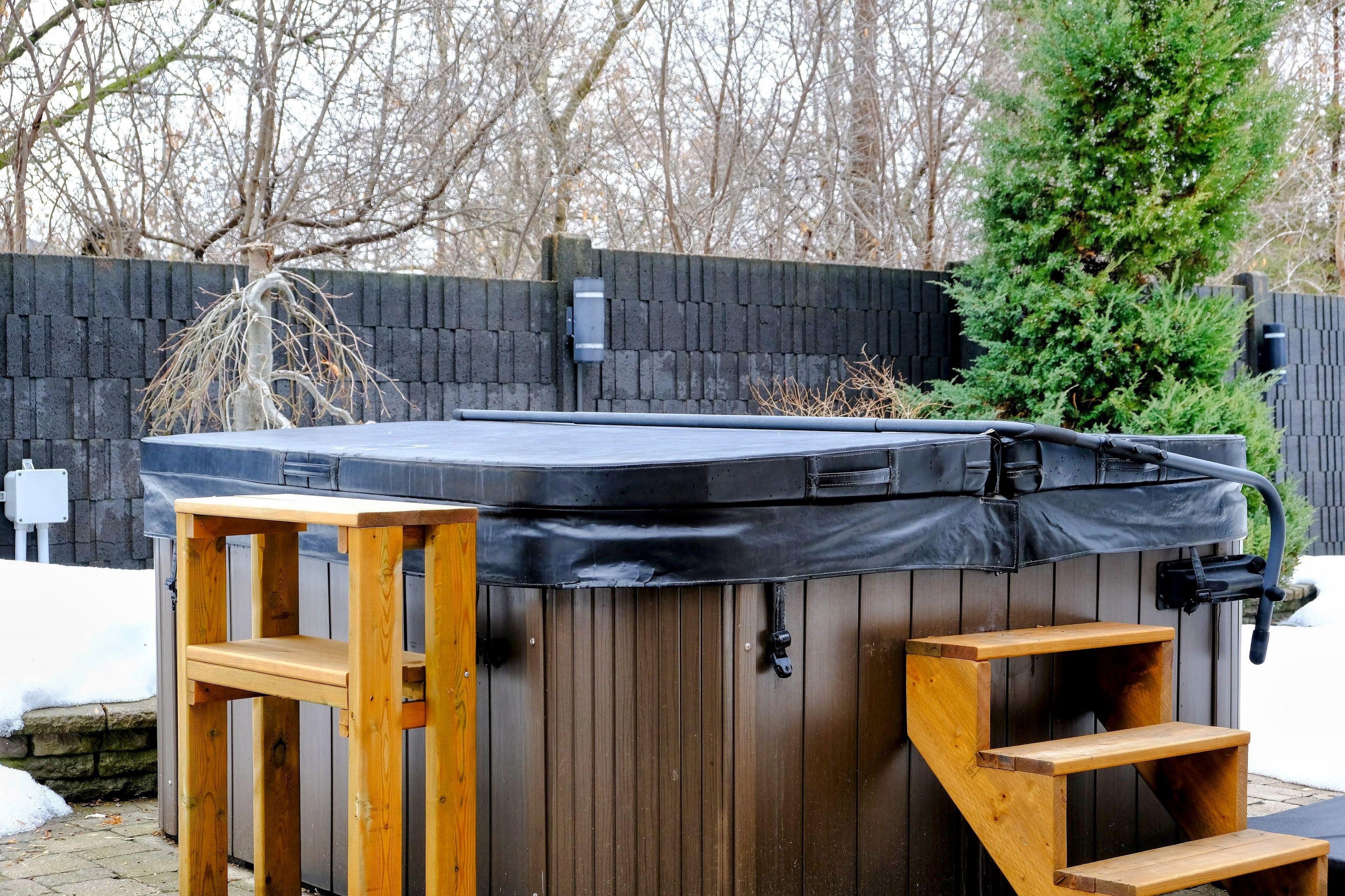 • Backyard with a swimming pool and hot tub for relaxation.