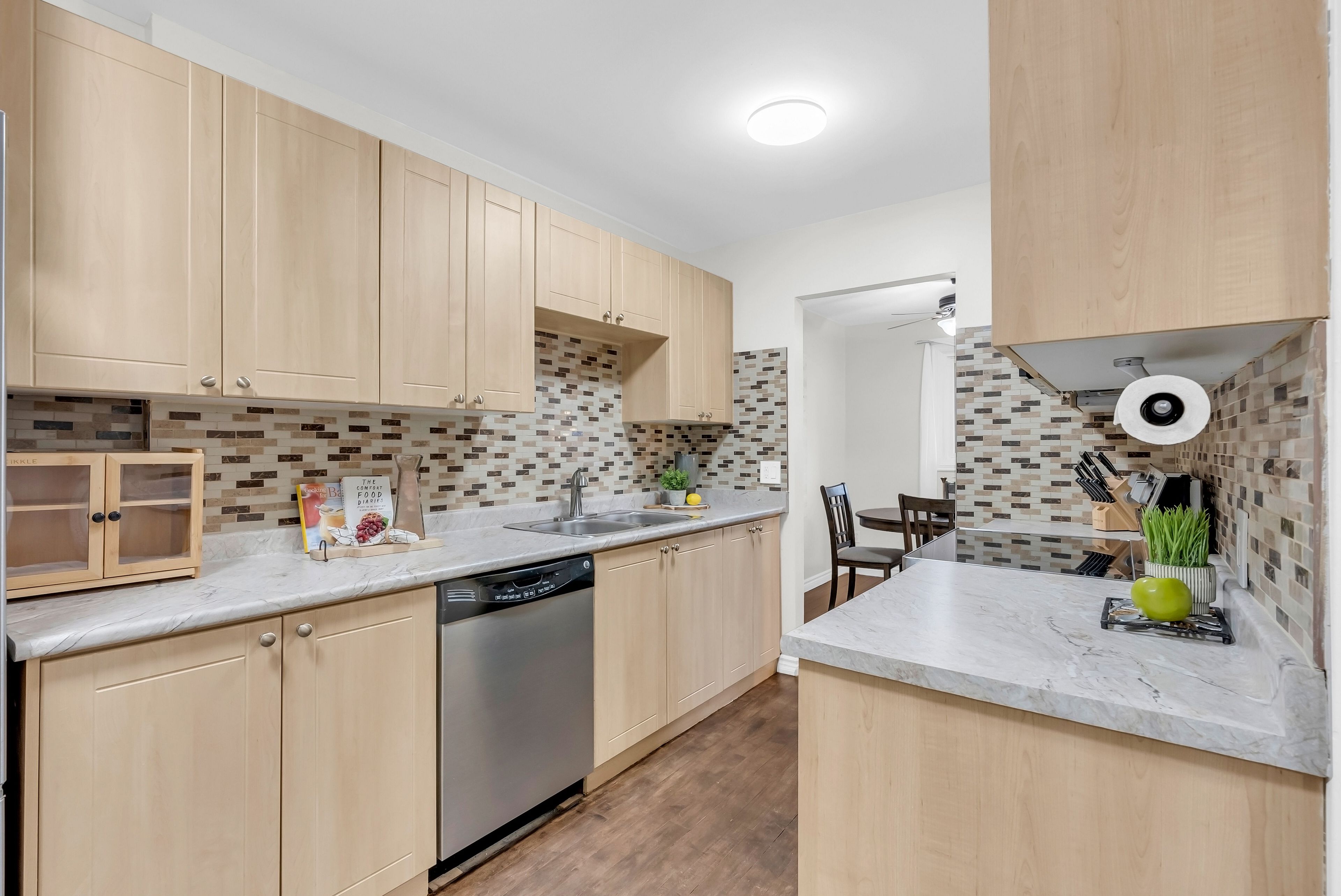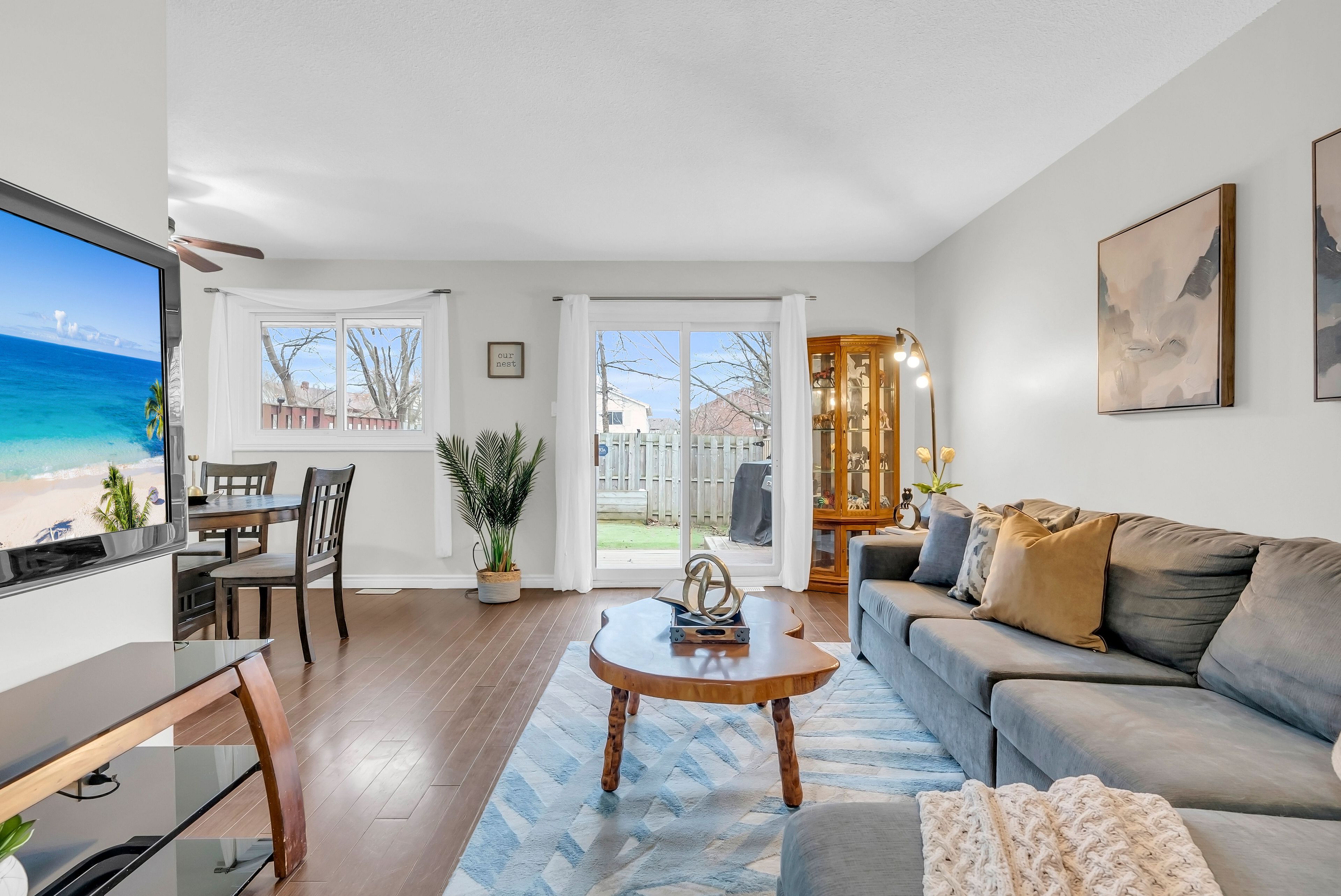 • Open-concept living and dining area with direct backyard access.