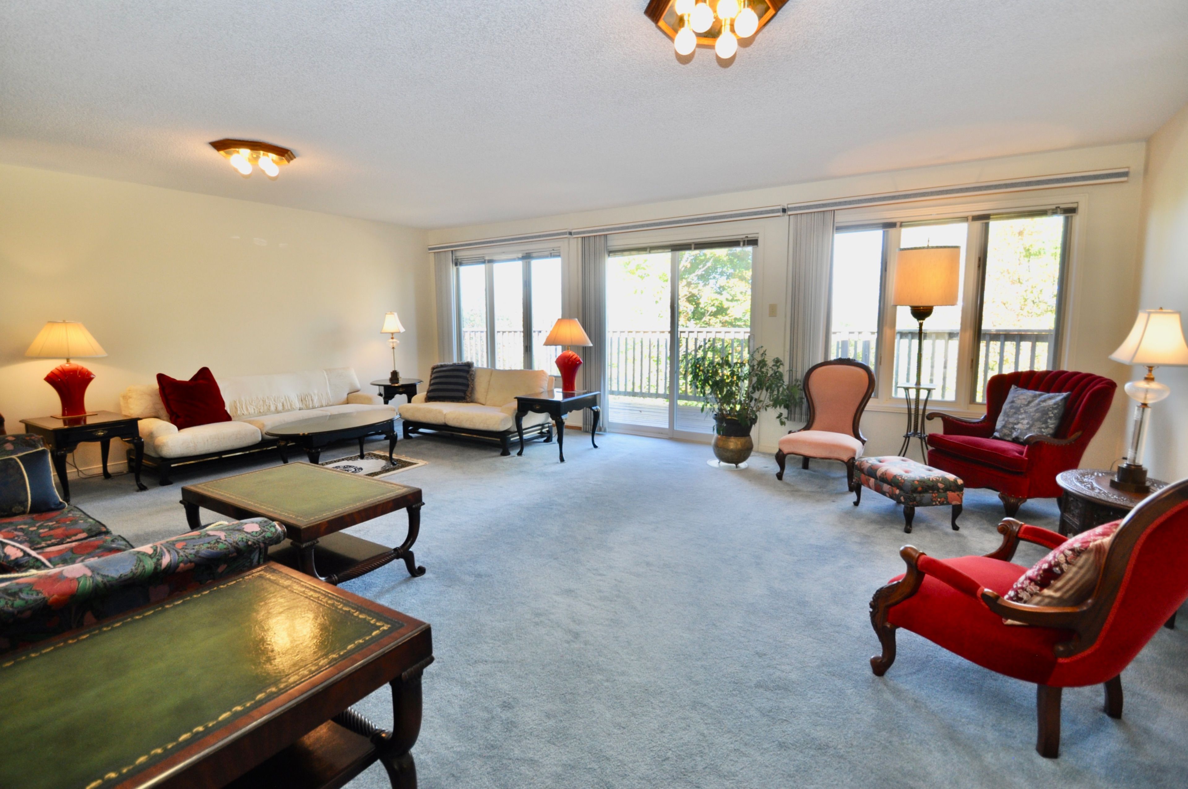 • Grand living room with access to a sun deck for relaxation.