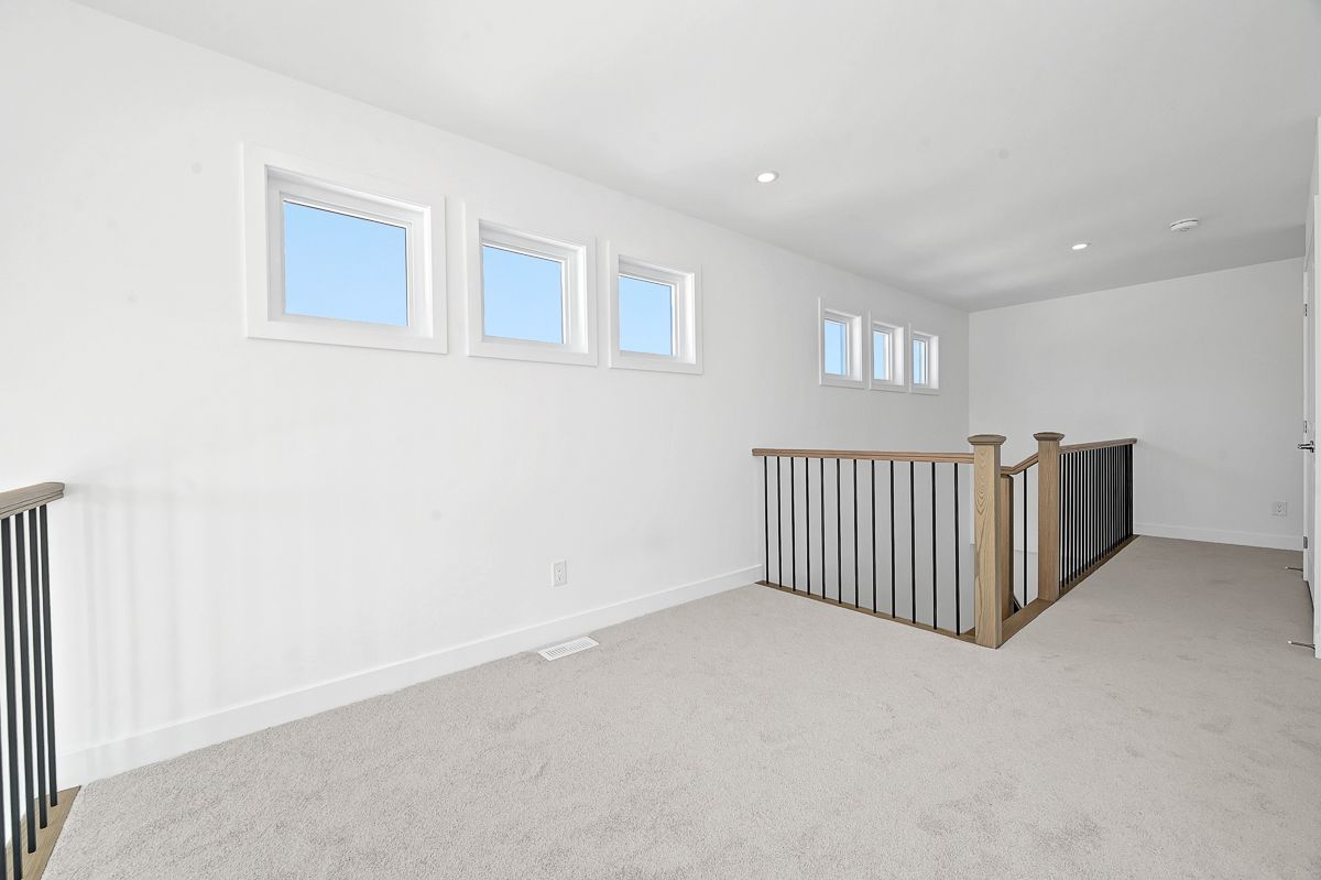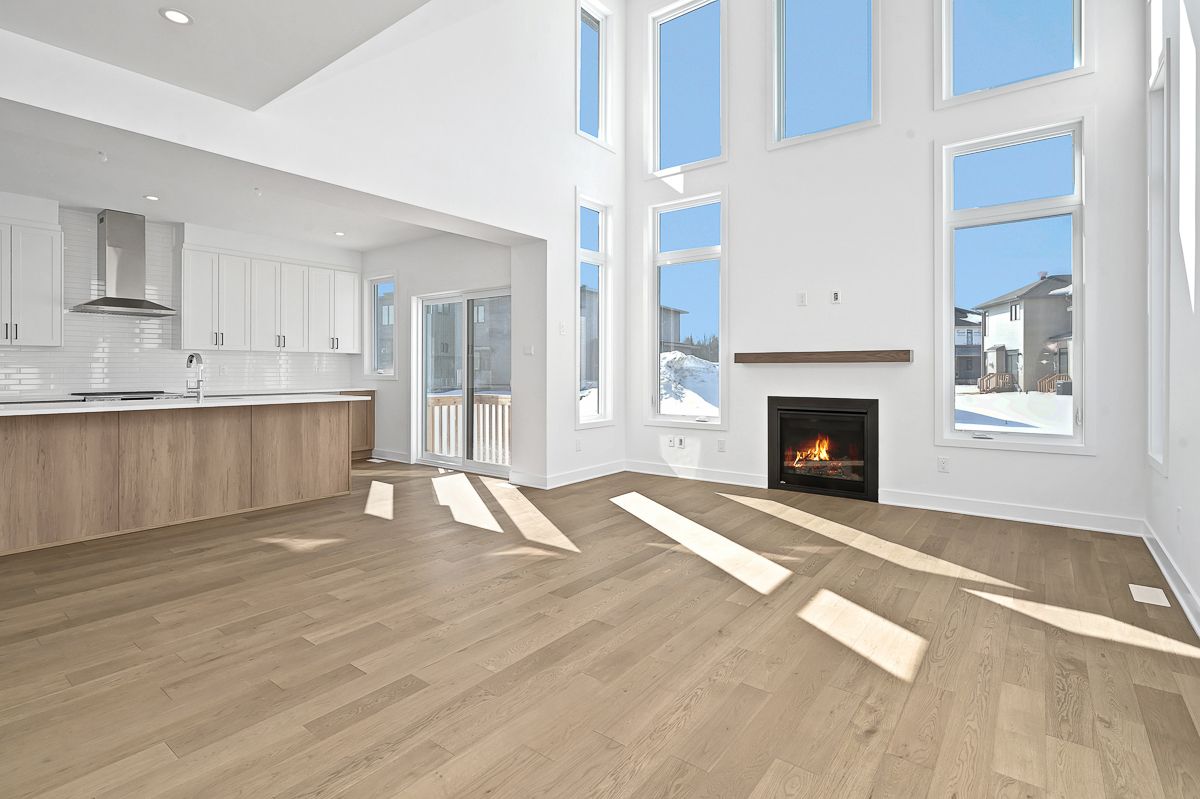 Skip the wait! This brand new 2,043 sq ft strathmore model by phoenix homes is move-in ready, featuring over $38,000 in upgrades, a finished basement, and full tarion warranty for peace of mind. The main floor impresses with 9-foot ceilings, 5" pre-engineered hardwood, and a dramatic family room with 17-foot ceilings and gas fireplace. The chef's kitchen is equipped with stainless steel appliances, an oversized island, walk-through pantry, soft-close cabinetry, and pot & pan drawers - a perfect place for entertaining. An oak staircase and levven smart lighting package complete the refined feel. Upstairs offers 3 bedrooms with a loft overlooking the main living area, as well as primary retreat with 5-piece ensuite, and second-floor laundry. The lower level adds 438 sq ft of finished recreation space with an approx. 9' foundation pour and 3-piece rough-in. Whether you envision a home theatre, gym, playroom, or office, the space is ready to make it yours. Some photos have been virtually staged.