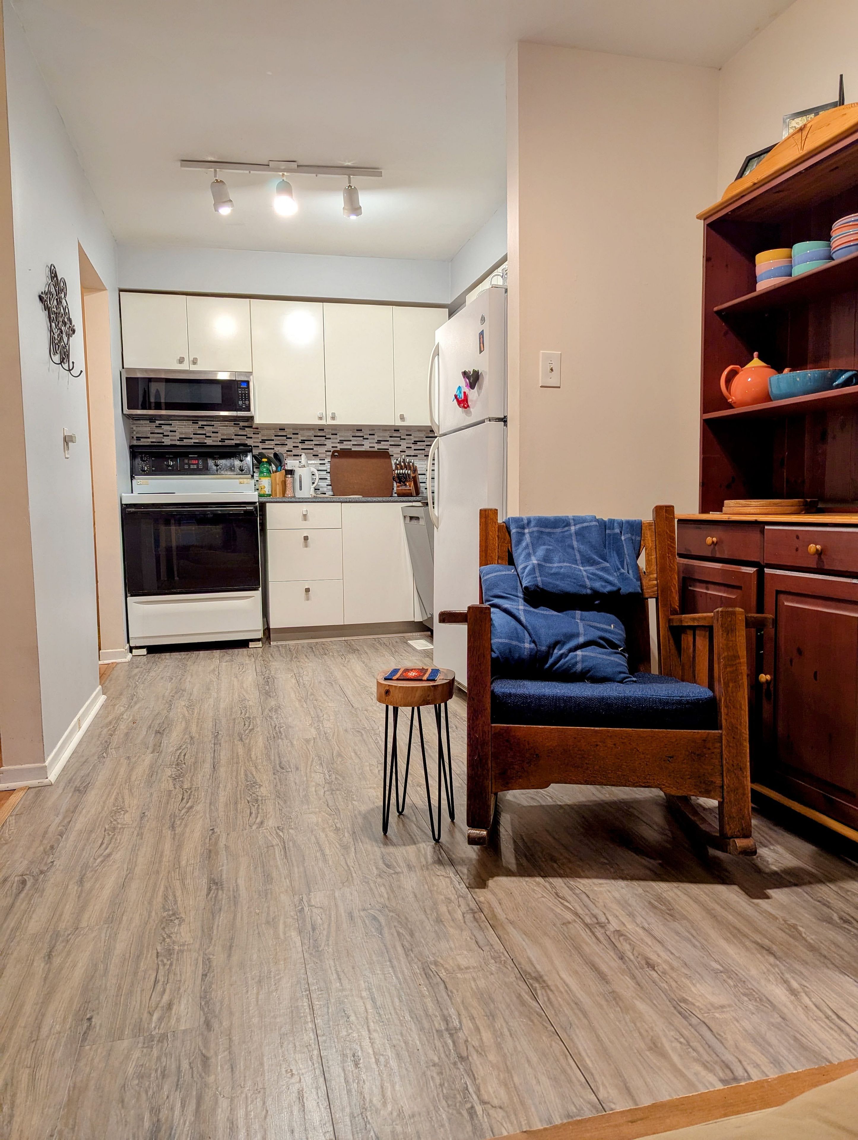• Open concept living area with access to the backyard.