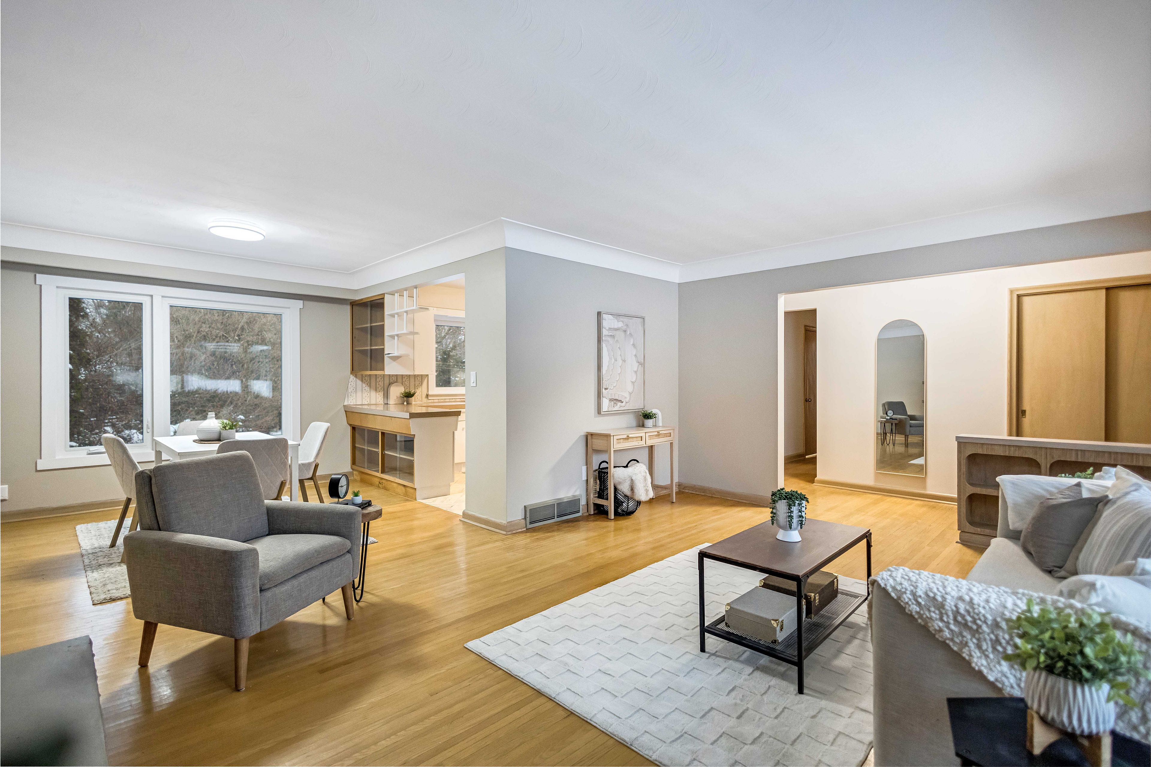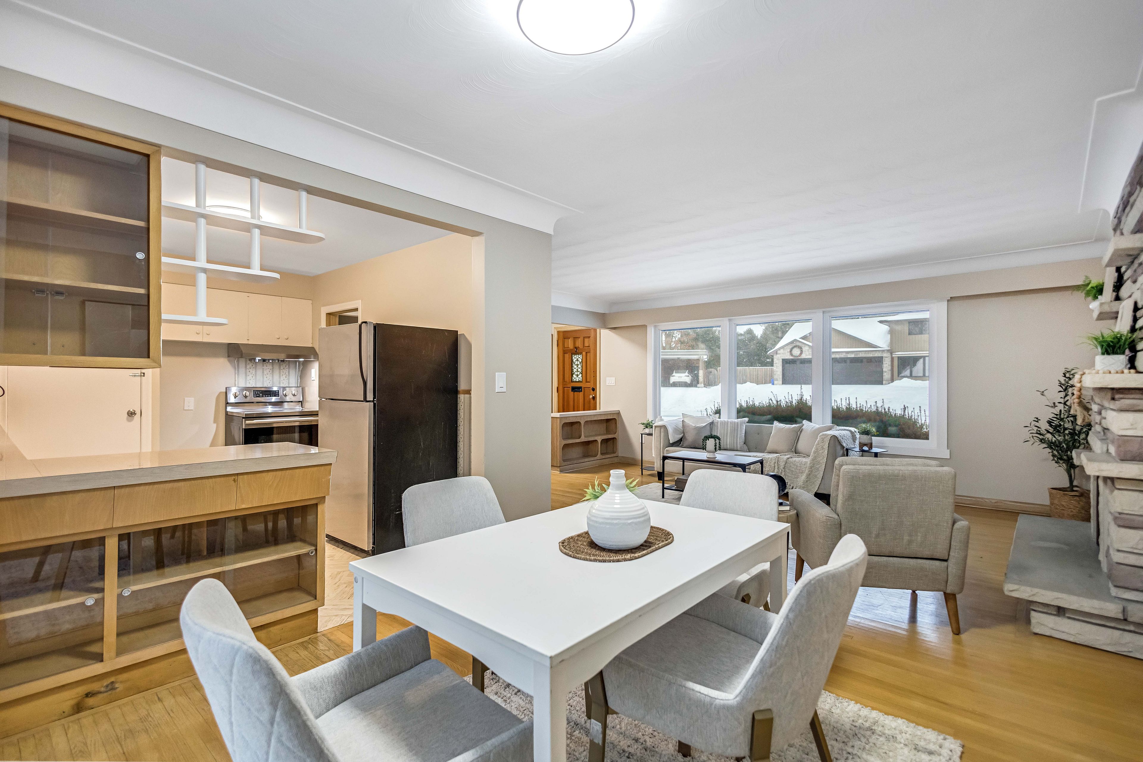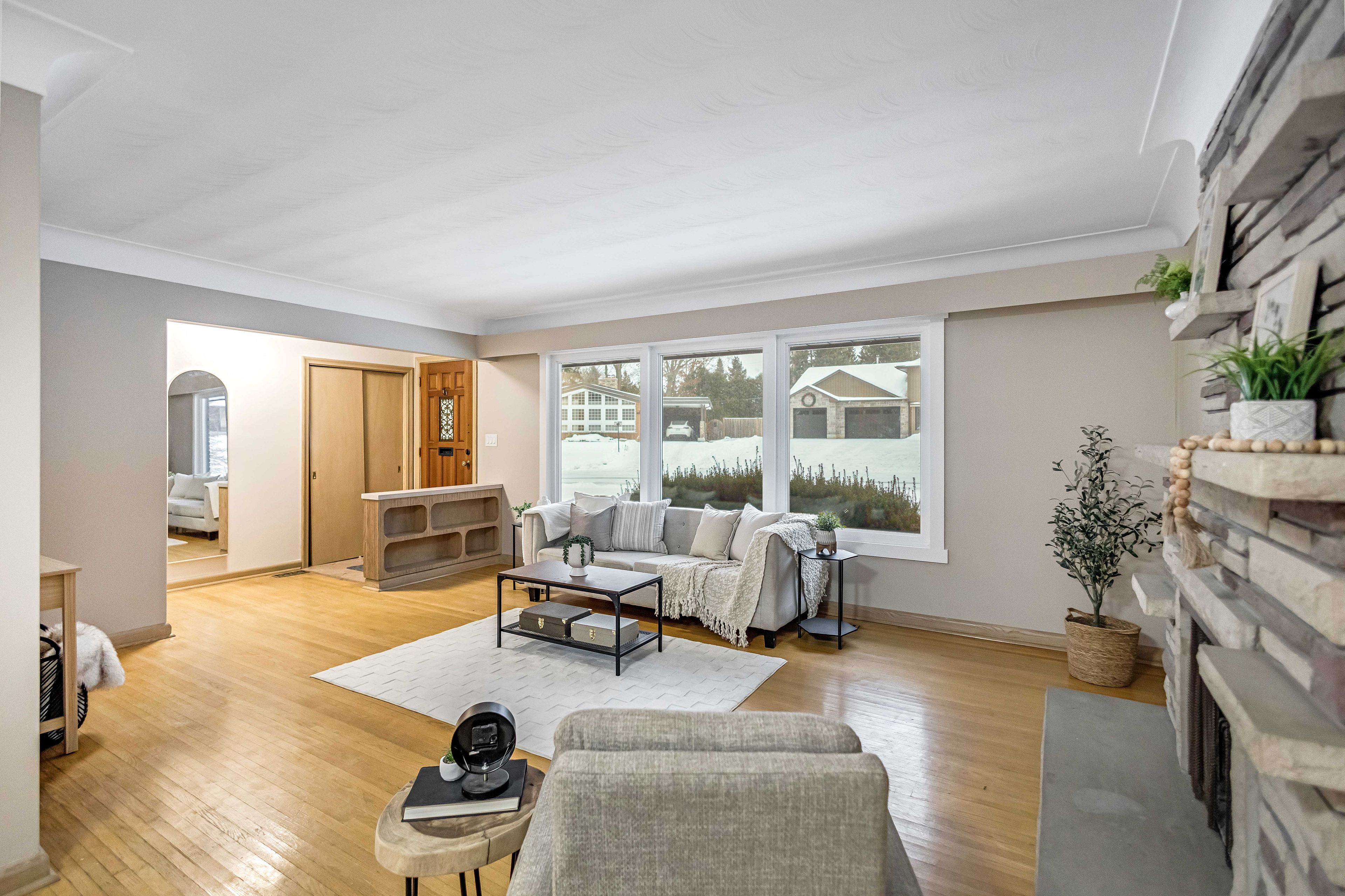 This impressive property stands out from the moment you arrive, set on a premium pie shaped lot measuring approximately 160 by 126 at its widest and offering exceptional space, privacy and long term potential. Minutes from the linc, the 403, schools, parks, trails, meadowlands shopping and restaurants, this all brick bungalow pairs everyday convenience with a setting that feels genuinely elevated. A large driveway and attached one car garage add practical ease before you even step inside. The main level features an oversized living room with hardwood flooring and a generous bay window, flowing naturally to the dining room and a spacious kitchen with a peninsula designed for smooth, comfortable living. A newly renovated three piece bathroom serves the floor, along with three well sized bedrooms including a welcoming primary. Oversized windows throughout showcase the remarkable grounds from every vantage point. A separate rear entrance leads to a finished basement that enhances versatility, offering a great room with a fireplace, a recreation room, a workshop, a cold room, laundry and an additional three piece bathroom, making an in law arrangement a viable option. Outdoors, mature landscaping, tall trees and a custom patio create a private retreat on one of the standout lots in the province. With strong fundamentals, impressive land value and room to tailor the property to your needs, this home offers an exceptional opportunity to invest in both comfort and future growth.