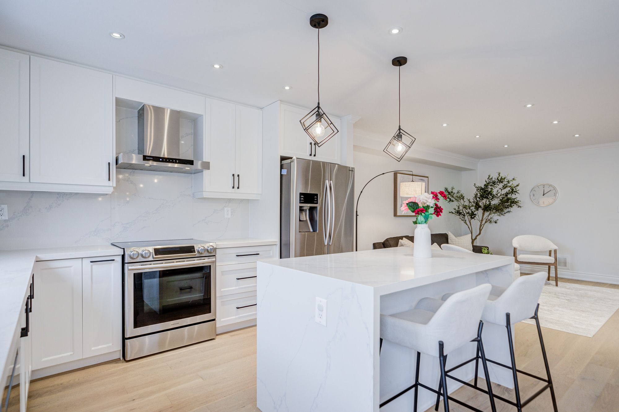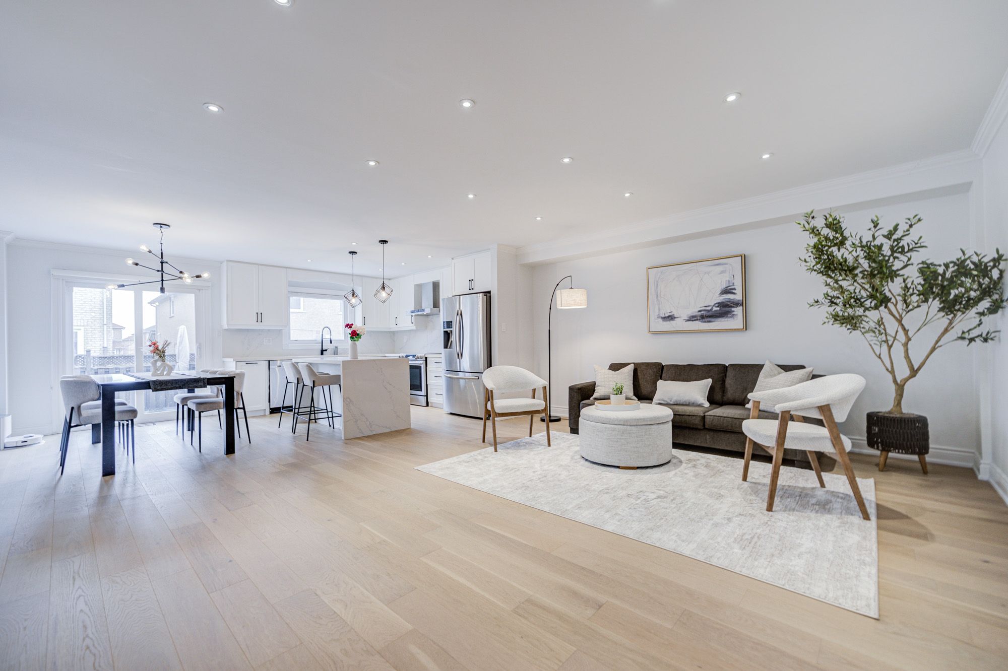 • Bright open-concept layout with engineered hardwood floors and pot lights.