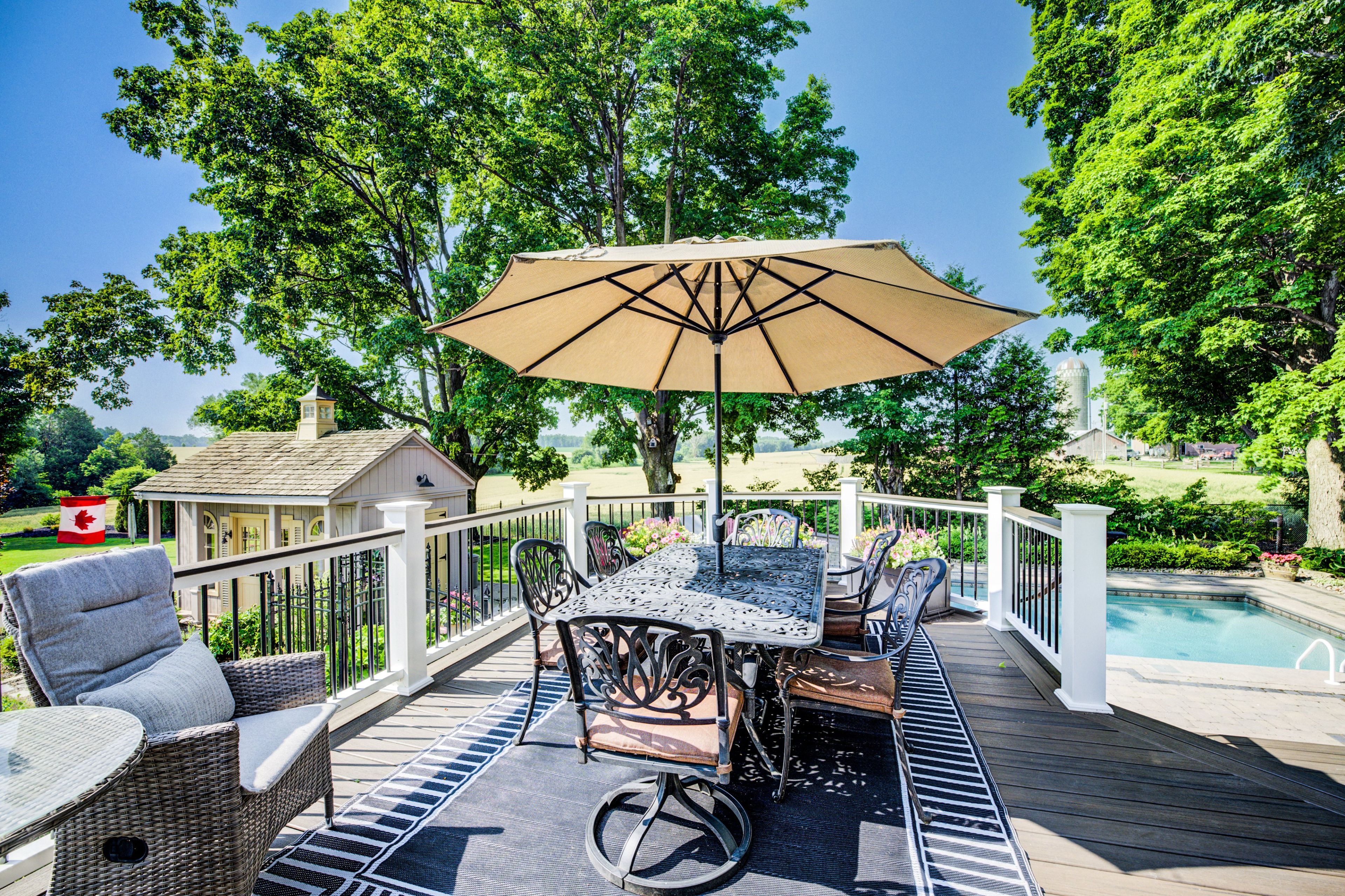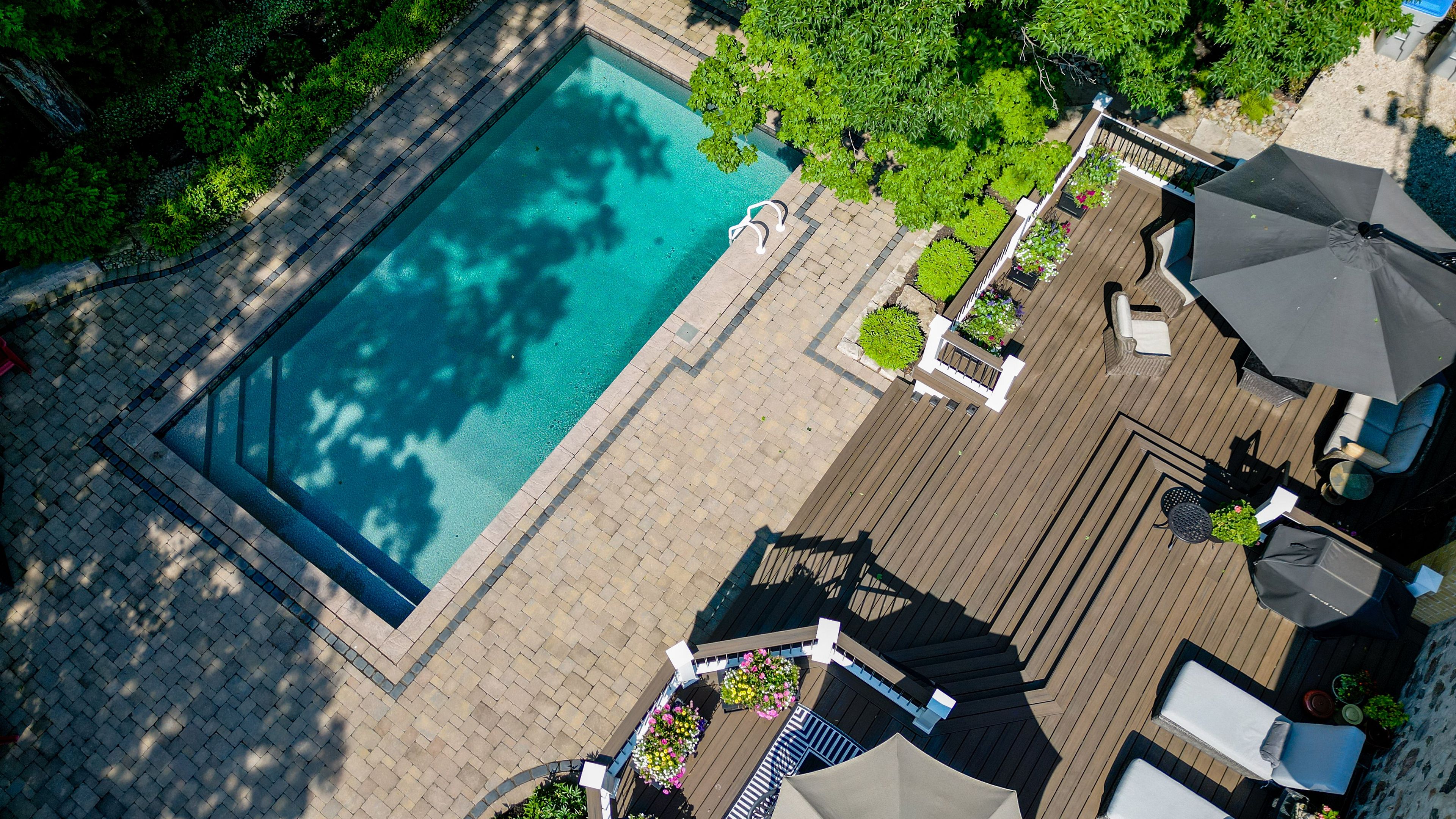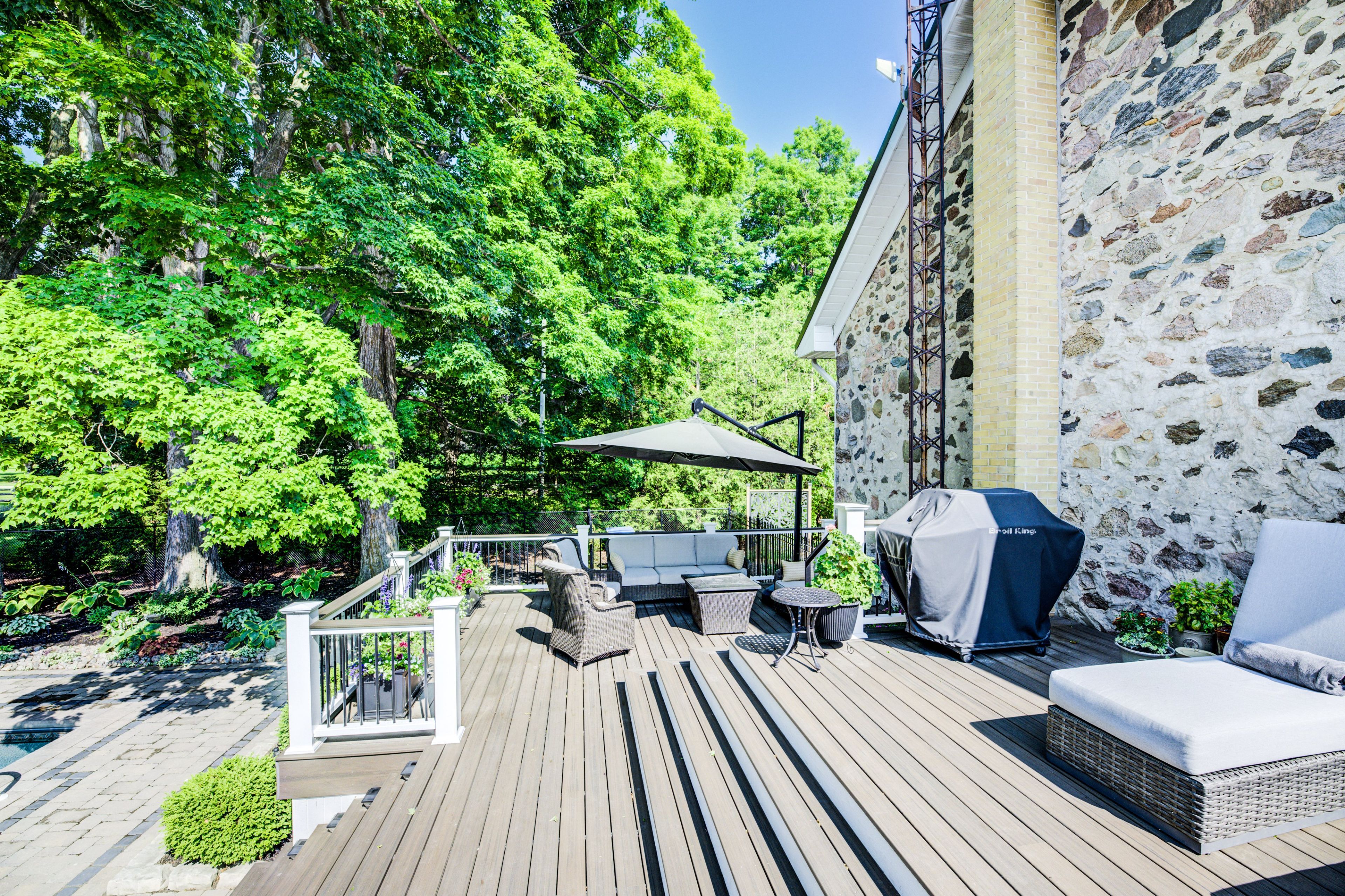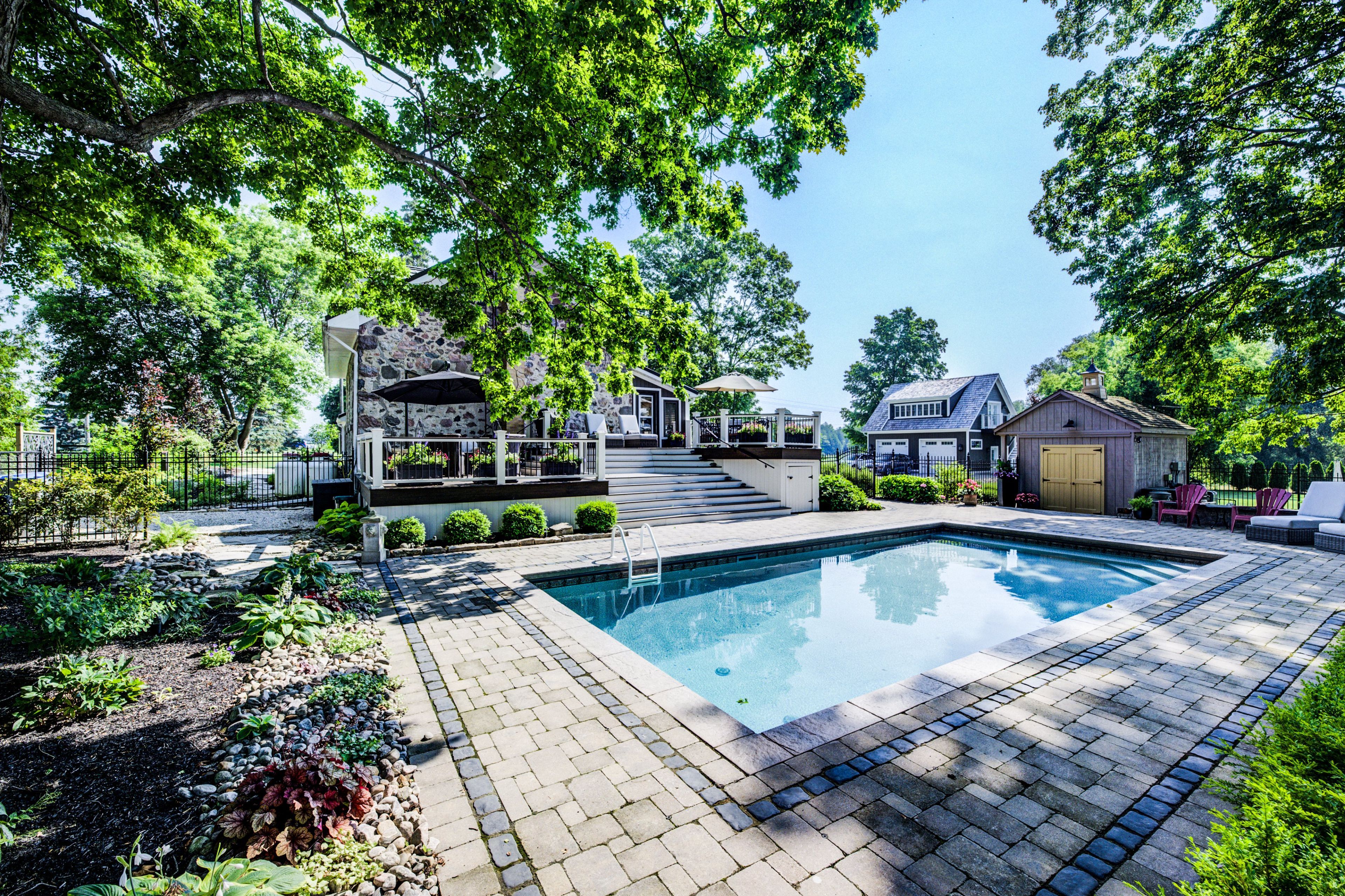 • Multi-level deck and heated saltwater pool for outdoor enjoyment.