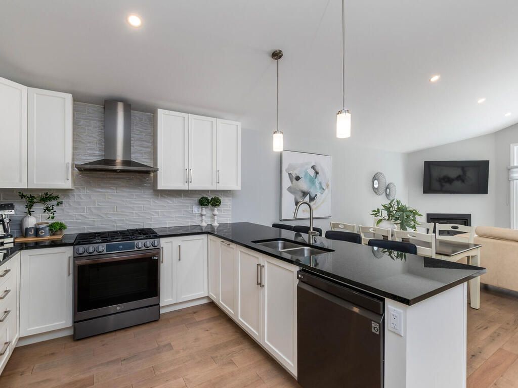 • Stylish kitchen with granite countertops and stainless steel appliances.