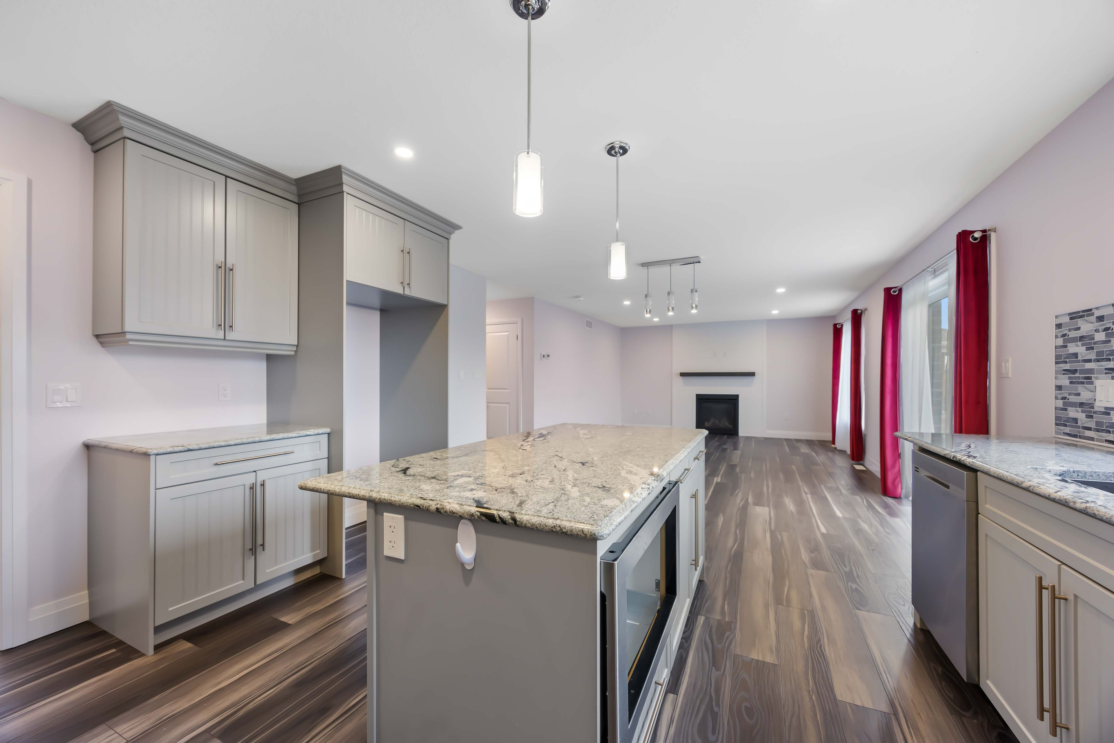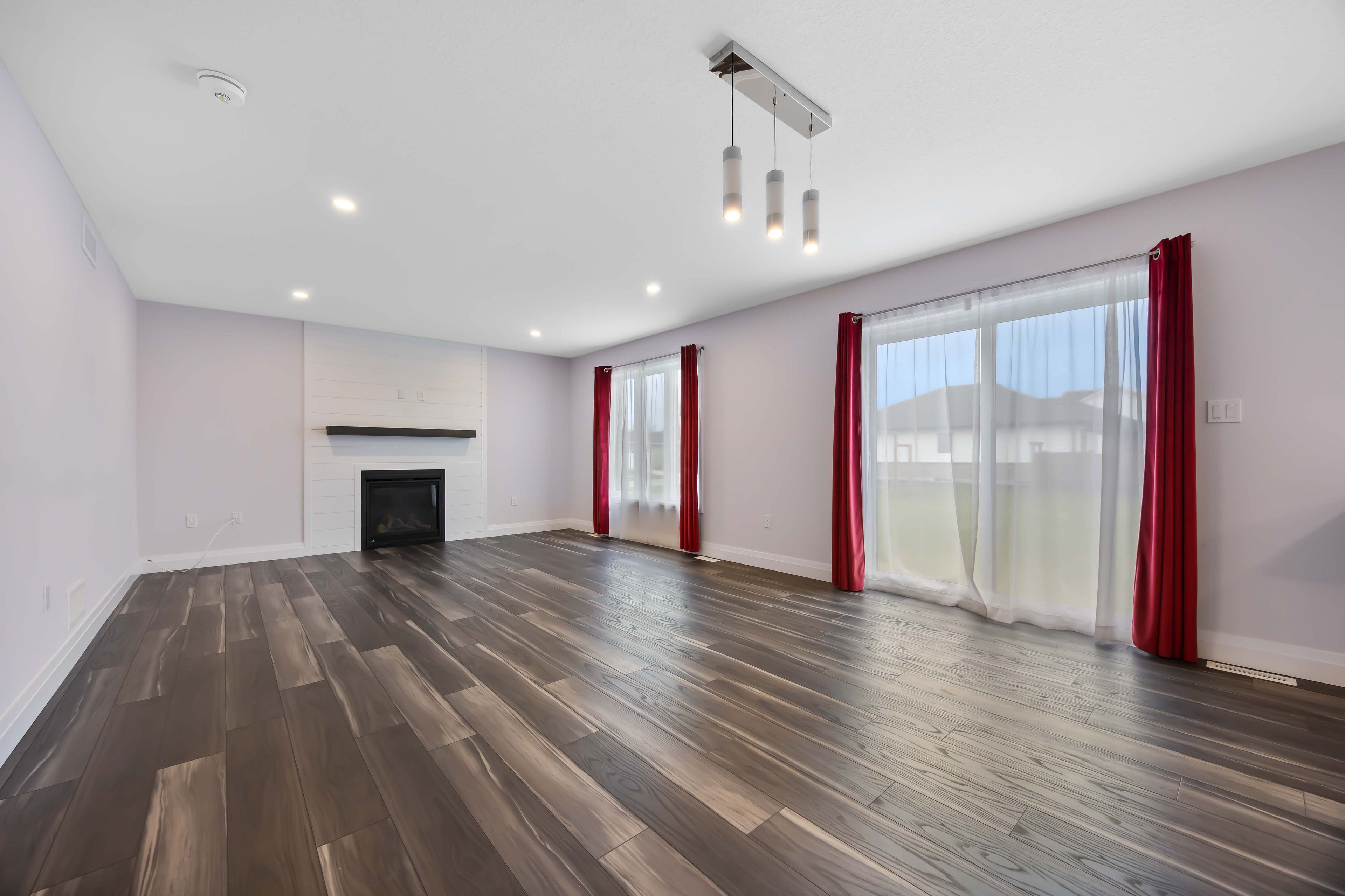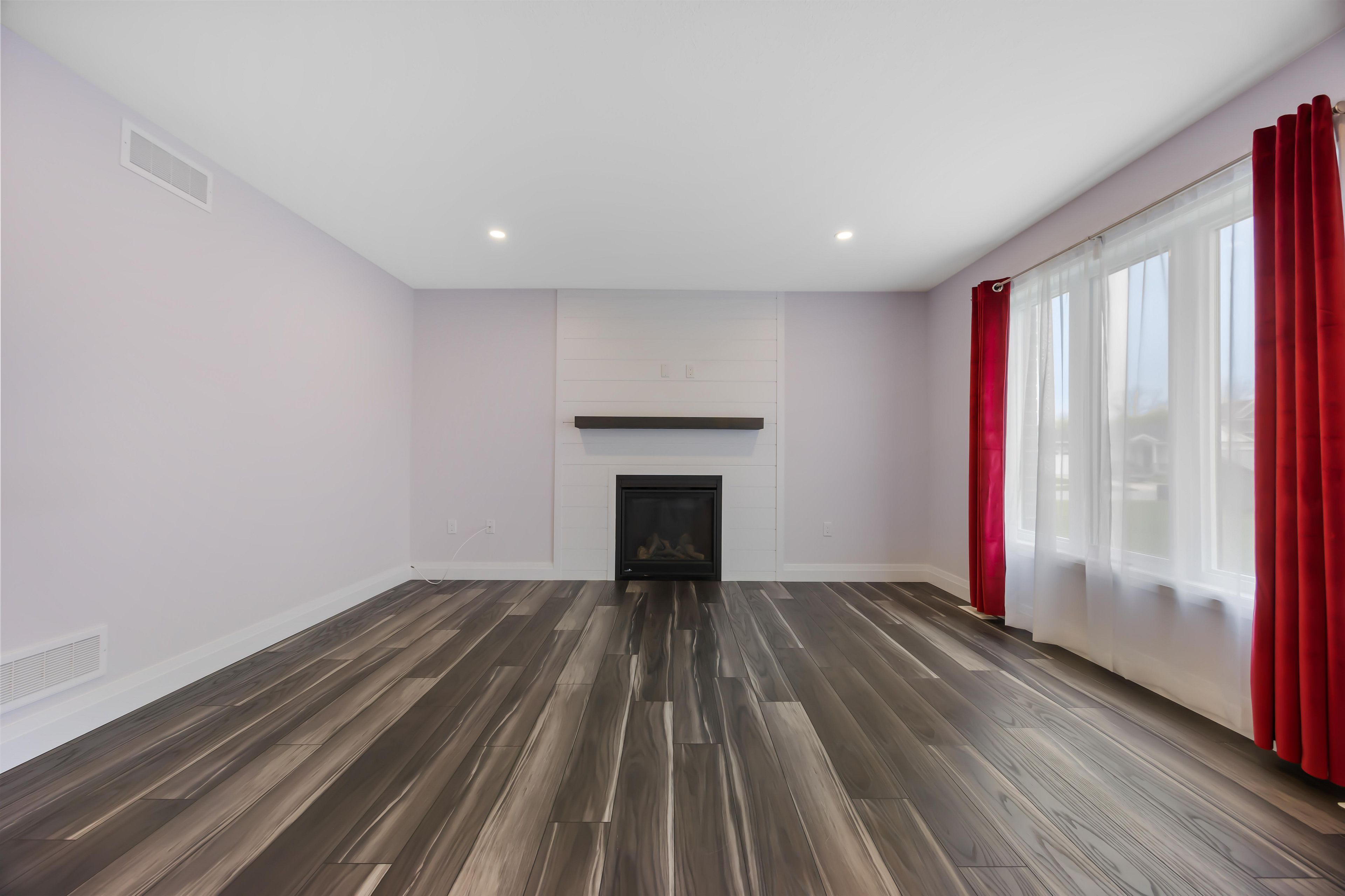 Detached 4-bedroom house featuring a spacious primary bedroom with a walk-in closet and ensuite. The home offers an open-concept, carpet-free layout with pot lights and a cozy fireplace on the main level. Enjoy the convenience of a main-level laundry room, large basement windows, and a kitchen equipped with a dishwasher and a gas line installed for the range. The garage accommodates 2 cars, complemented by a private 2-car driveway. Ideally located near shopping outlets, grocery stores, hardware stores, schools, and major highways such as highway 402.