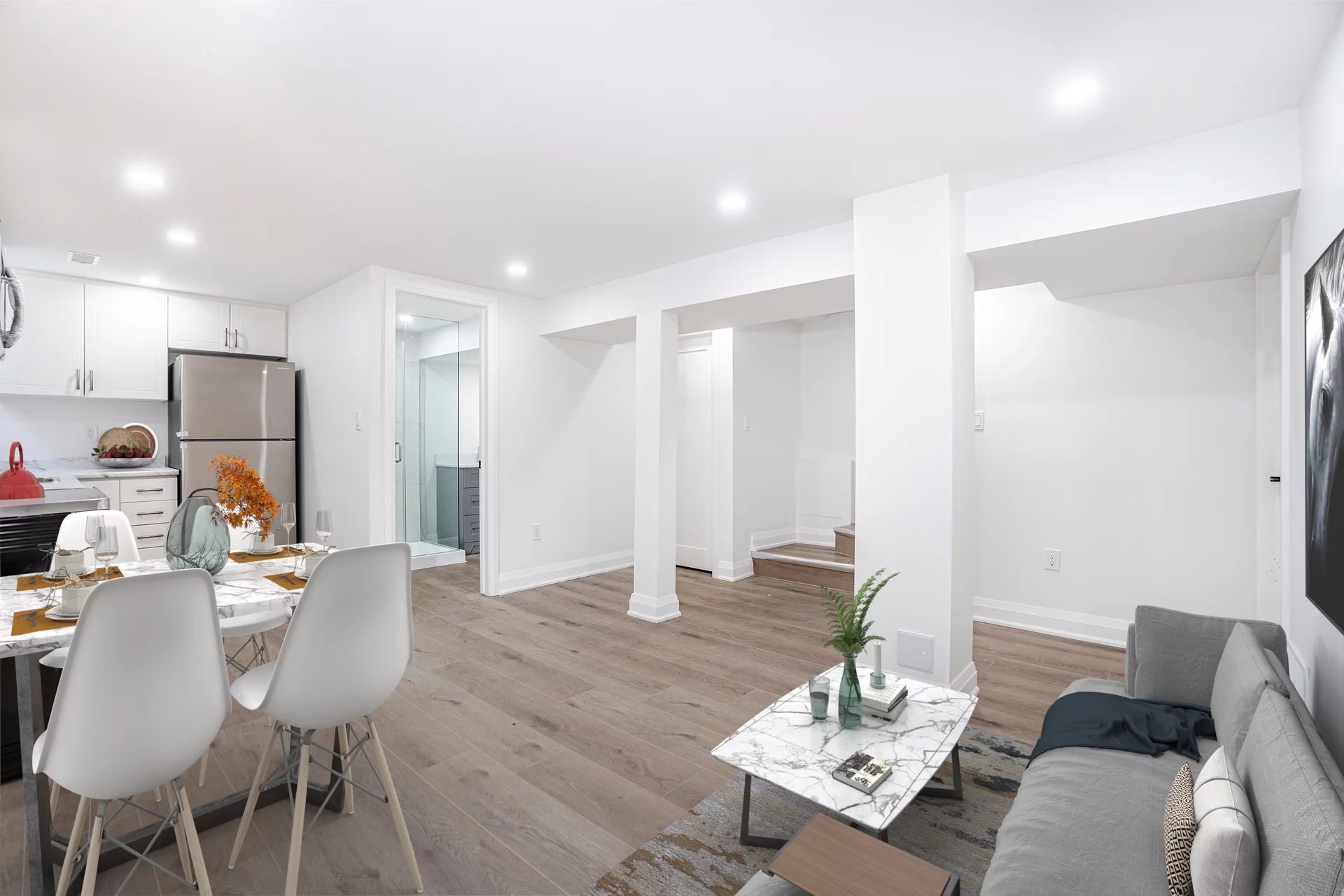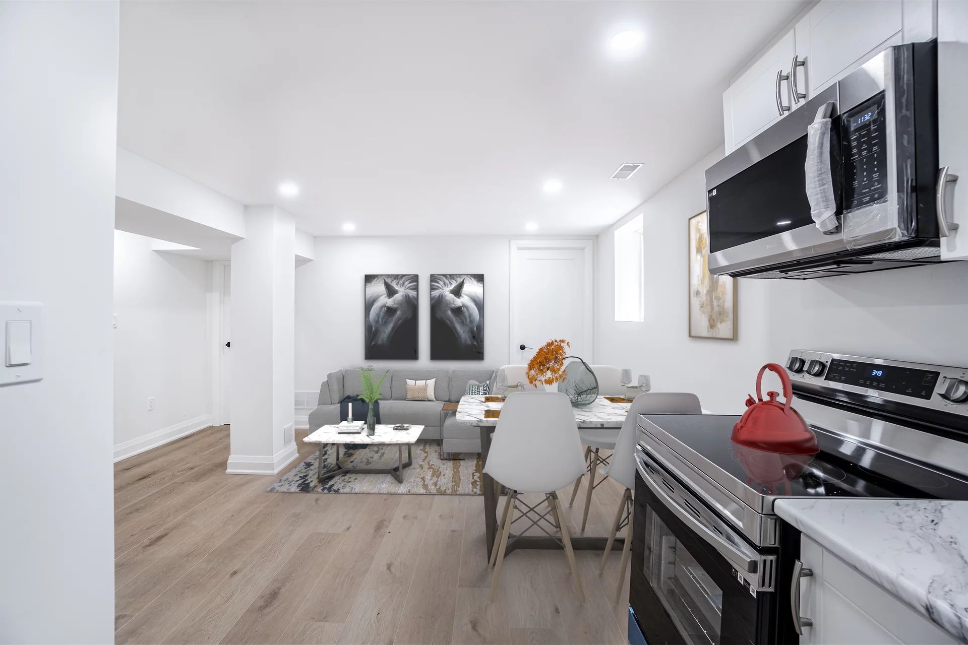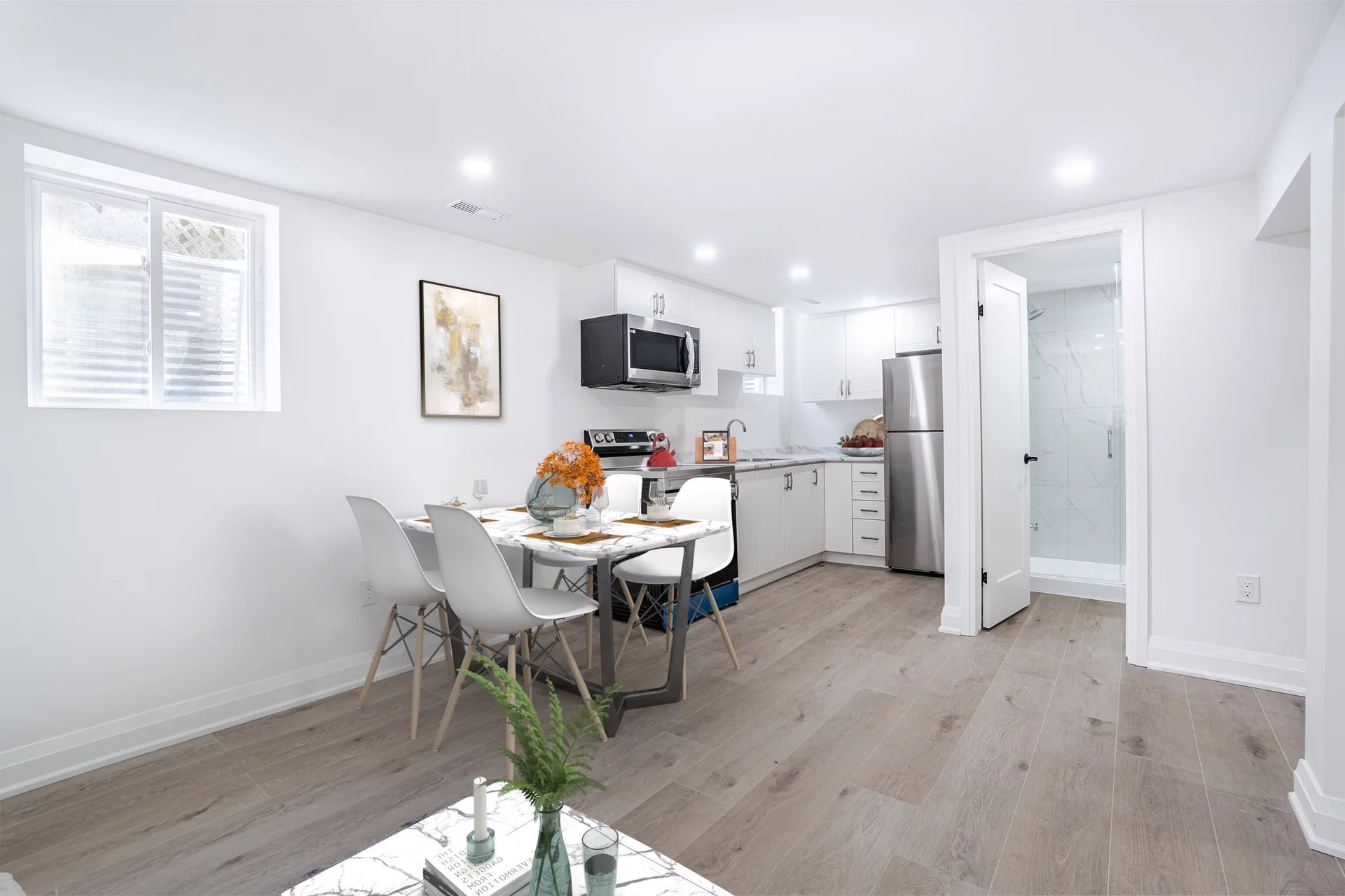 • Bright lower level apartment with open concept layout and luxury vinyl floors.