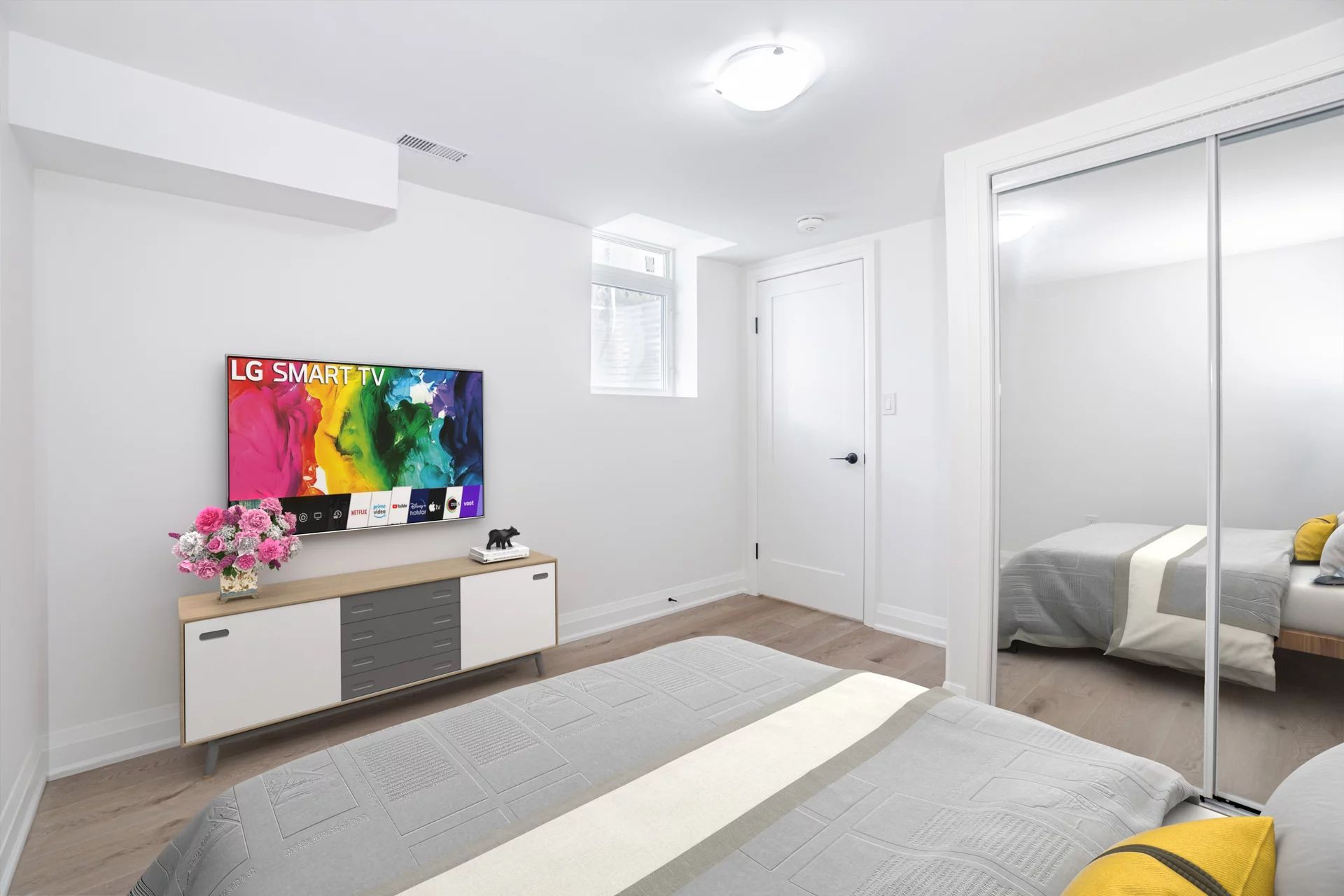 • Generous bedroom featuring a closet and natural light from windows.