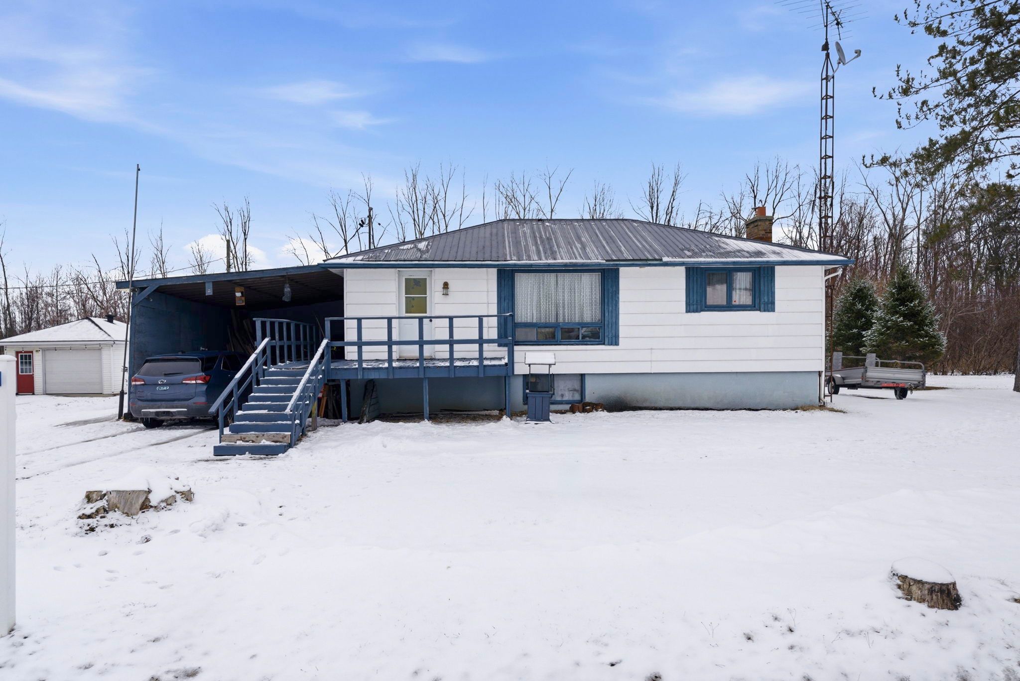 Welcome to affordable, easy living in a location that keeps you connected to both work and play. This charming 2-bedroom bungalow is perfectly positioned for commuters with quick access to hwy 401, while outdoor enthusiasts will love being just minutes from golf courses, scenic campsites, and marinas along the beautiful st. Lawrence river. Inside, you'll find a functional and comfortable layout featuring an eat-in kitchen, a bright living room, and two main floor bedrooms-with potential to convert space for a third bedroom if needed. A full 4-piece bathroom completes the main level. The partially finished basement adds extra flexibility with a spacious rec room, storage and utility areas. Step outside and enjoy both front and rear decks-perfect for morning coffee or summer evenings. The property also includes three storage sheds, offering plenty of space for tools, toys, and seasonal gear. Serviced by municipal water and sewer, this home delivers convenience, value, and lifestyle in one tidy package. Metal roof, natural gas furnace and central ac. A smart move for first-time buyers, downsizers, or anyone looking to plant roots near the river and still stay connected. *some photos are virtually staged. As per seller direction allow 24 hour irrevocable on offers.