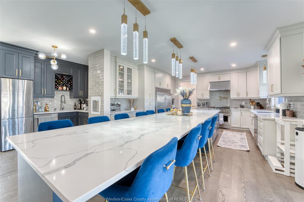 Welcome to your dream home in the heart of beautiful lasalle! This stunning two-storey residence perfectly blends luxury, comfort, and thoughtful design — a true haven for multi-generational living. Every detail has been crafted to provide the ideal balance of togetherness and personal space for the whole family. Upstairs, you’ll find four generously sized bedrooms, including two with private ensuites for ultimate convenience and privacy. The primary suite is a luxurious retreat, featuring a spacious walk-in closet that leads to a private office — perfect for remote work or a serene reading nook. An upper-level laundry room adds everyday practicality to your lifestyle. The main level is designed for both function and elegance. Host gatherings in the chef’s kitchen, complete with an oversized island, premium stainless steel appliances, and a stylish wet bar with a second dishwasher and fridge — ideal for entertaining. The kitchen flows effortlessly into the warm and inviting living room and a sun-filled four-season room, anchored by a cozy gas fireplace and surrounded by windows that bathe the space in natural light. The fully finished lower level transforms this home into a perfect multi-generational sanctuary. With its own complete kitchen, spacious living area, bedroom, full bathroom, and laundry — plus a private exterior entrance — it’s ideal for in-laws, adult children, guests, or even as a potential income suite. Outside, a beautifully maintained lot with a paved circular driveway provides ample parking for family and visitors. With high-end finishes throughout, this move-in-ready home truly offers luxurious living for every generation — where comfort, elegance, and versatility come together in perfect harmony.