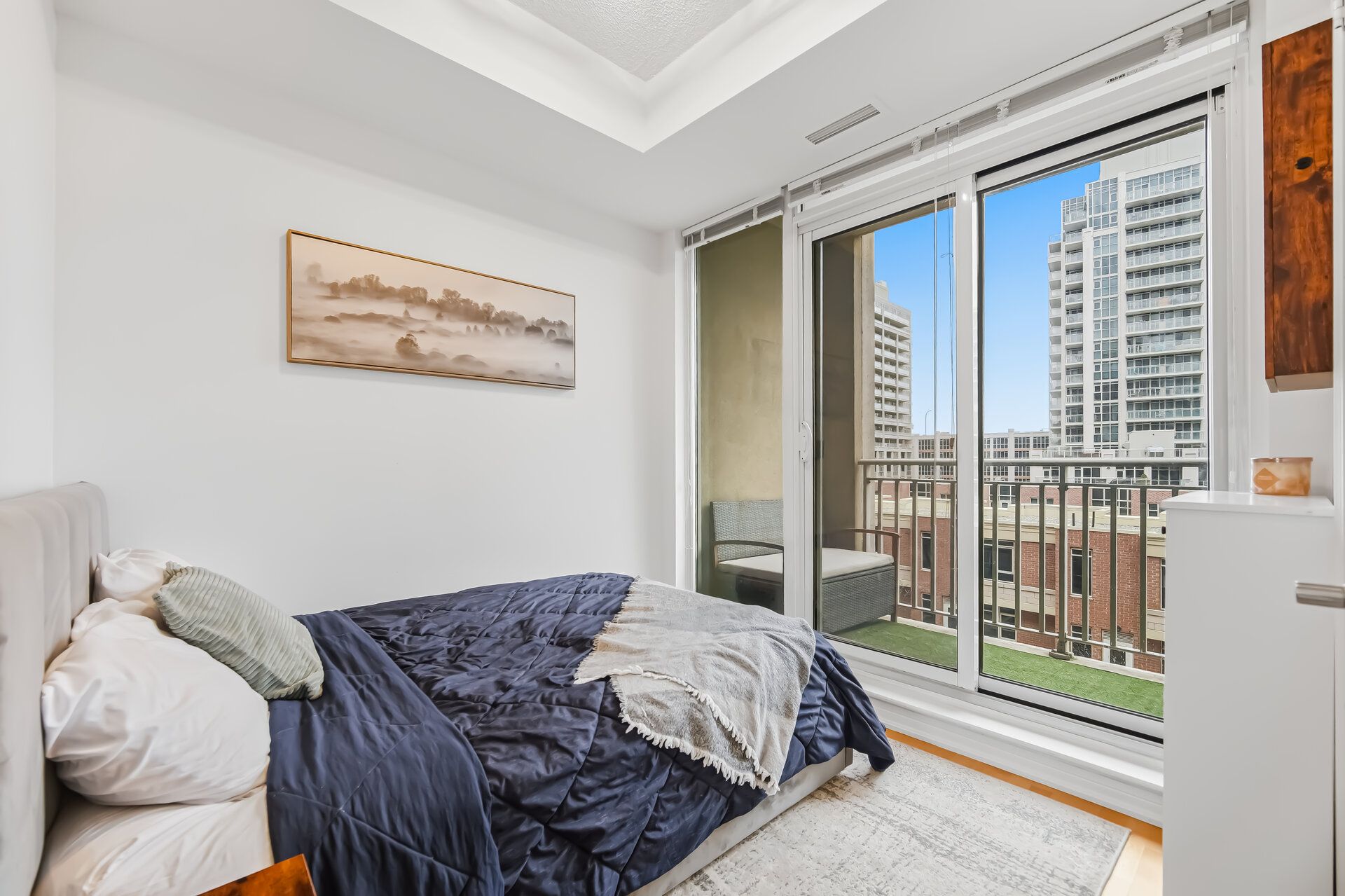 • Spacious balcony with courtyard views and walk-outs from living area and bedroom.