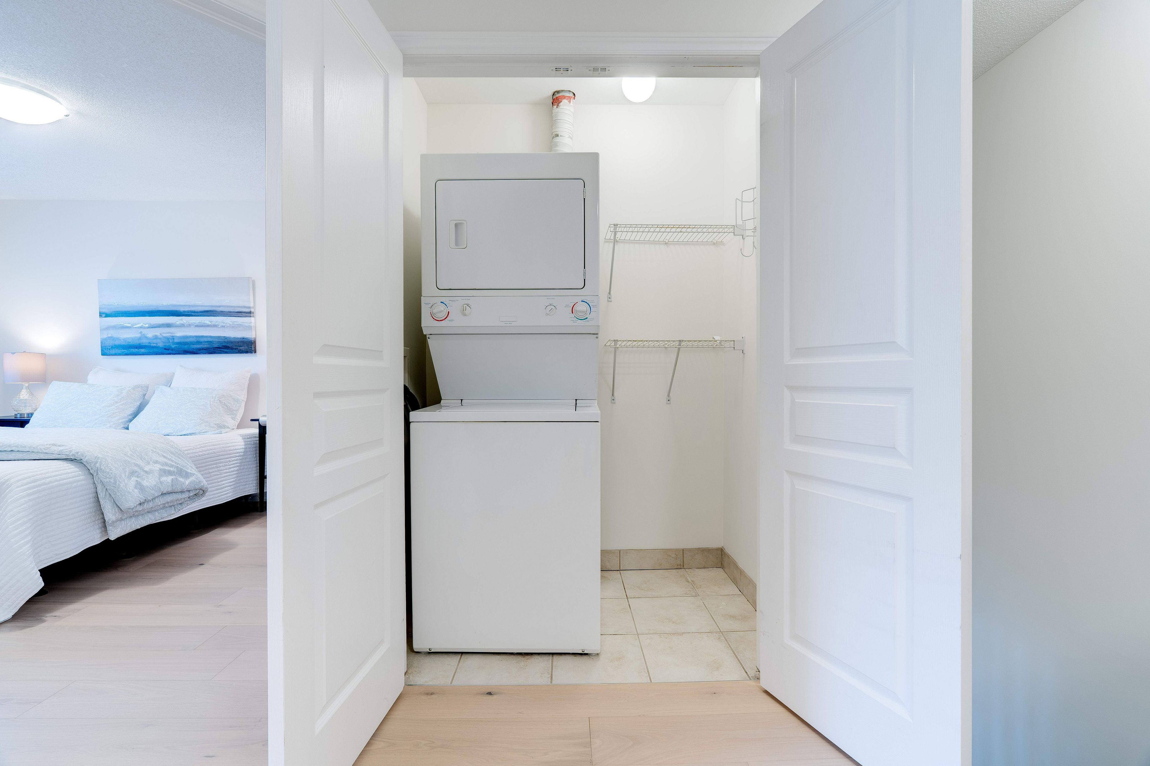 • Two spacious bedrooms with in-suite laundry for convenience.