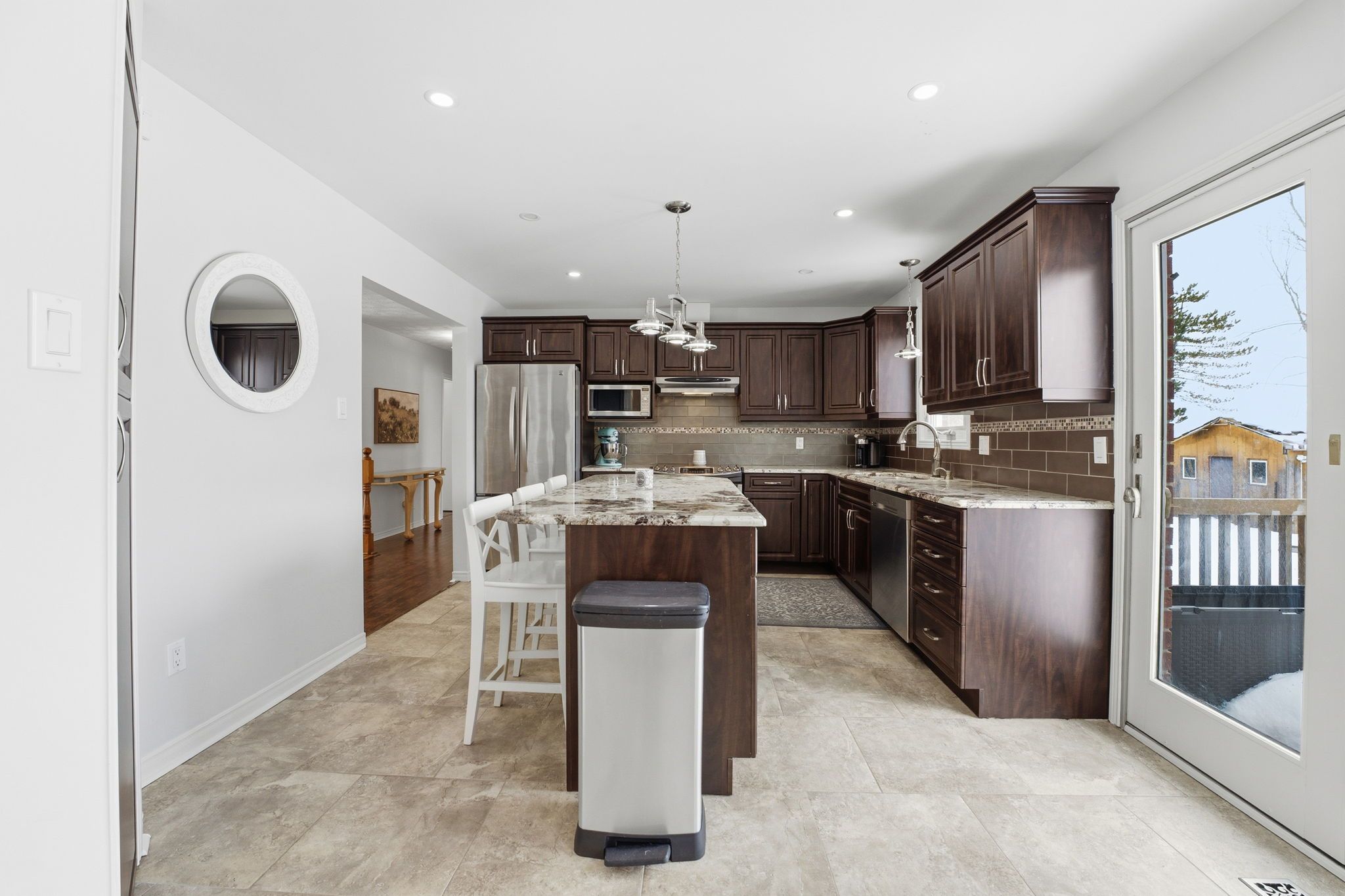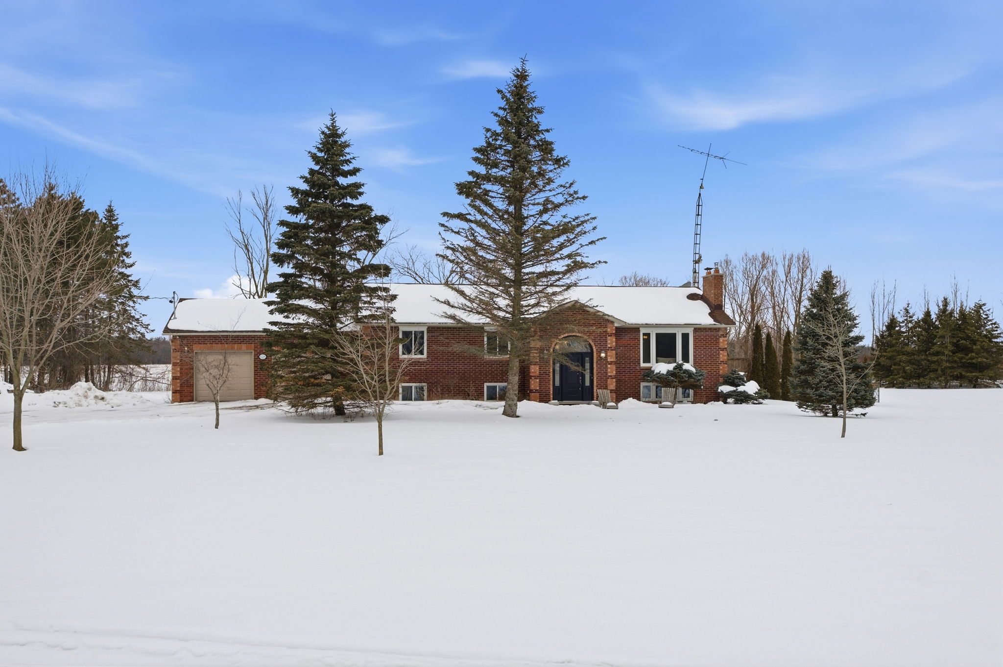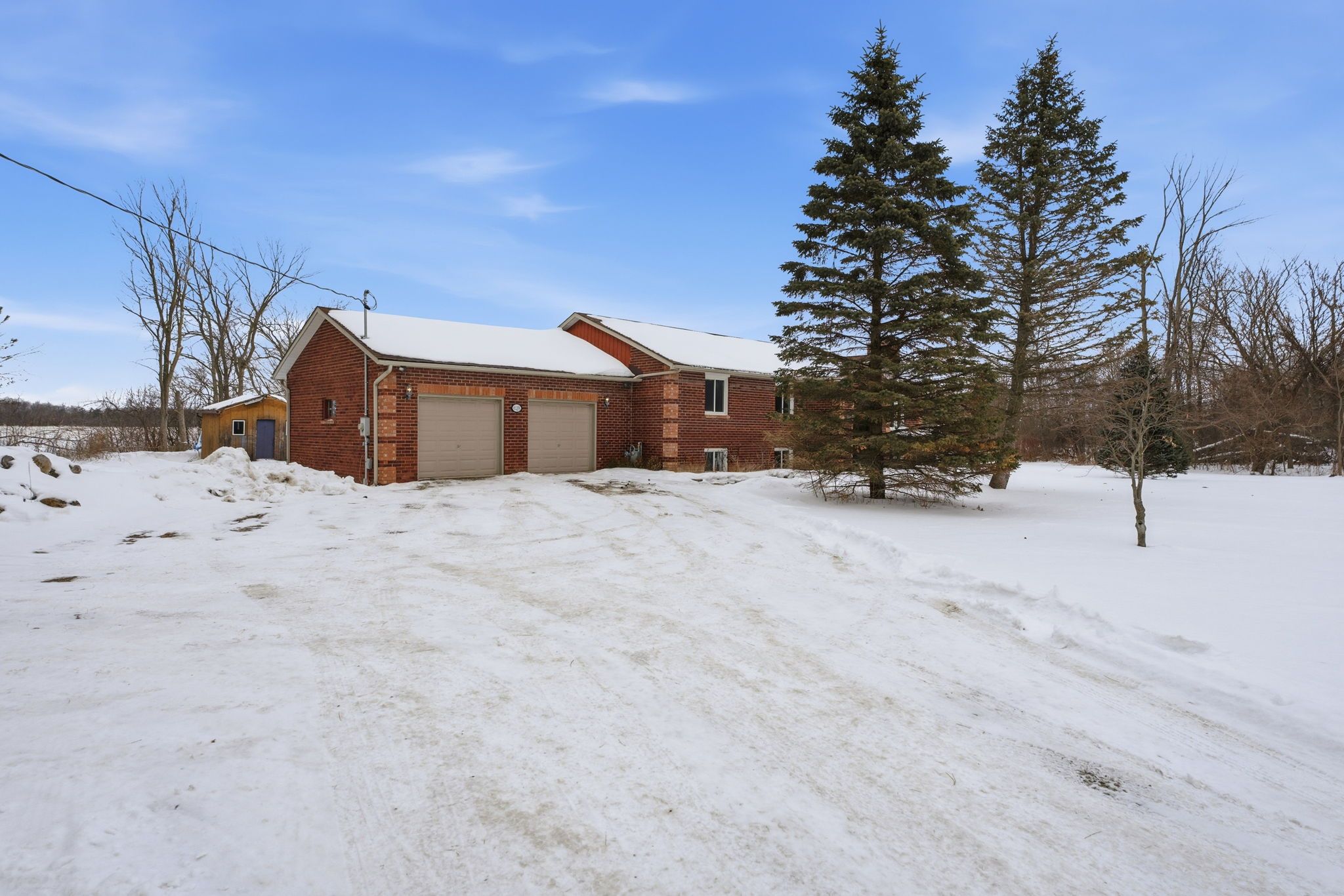 Discover peaceful country living in this all-brick, raised bungalow set on a private 1. 24 acre lot surrounded by mature trees. Positioned well back from the road, the expansive driveway offers parking for 10+ vehicles - perfect for guests, trailers, or all your toys. Built with durable core slab construction, providing solid floors for the main-level, and open-concept living in the basement. Step inside through the spacious, welcoming foyer featuring dual closets and a beautiful open staircase that allows natural light to flow throughout both levels. The upper level showcases an updated kitchen with an oversized island, granite countertops, and seamless transition to the dining room with an eye-catching accent wall. The bright, spacious living room features custom built-ins framing an all-brick fireplace (not in use) and a large bay window. Three bedrooms and a 4-piece bathroom complete the upper level, with dual closets in the primary bedroom . The fully finished lower level is designed for entertaining with a built-in bar, gas fireplace, 3-piece bathroom, and flexible recreation space ideal for a playroom, home office, or future bedroom with convenient walk-up garage access and includes a utility/storage room with brand new furnace (jan 2026). The 500+ sq ft garage comfortably fits two vehicles and includes a gas line already roughed in for a heater. Step outside into the spacious yard to an oversized back deck overlooking the above-ground pool (as-is) - perfect for relaxing or entertaining. Enjoy the peace and privacy of rural living while being just minutes from the downtown core of dunnville.