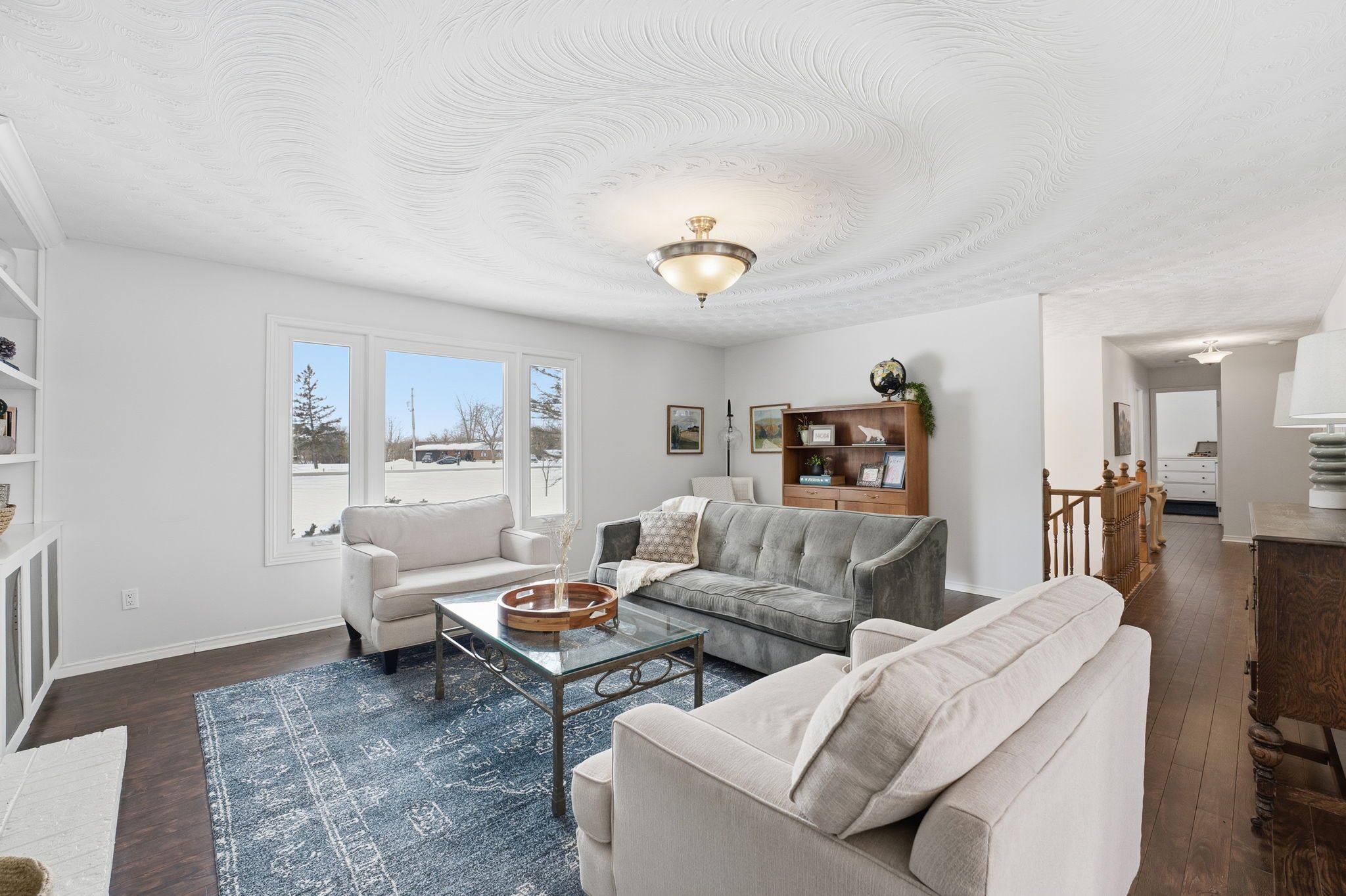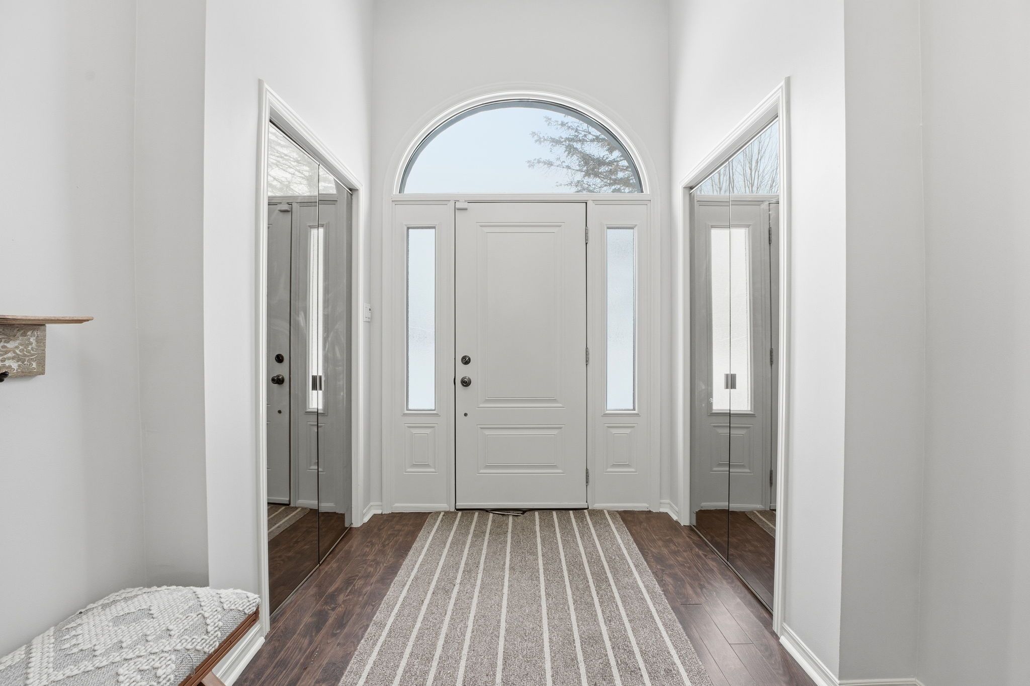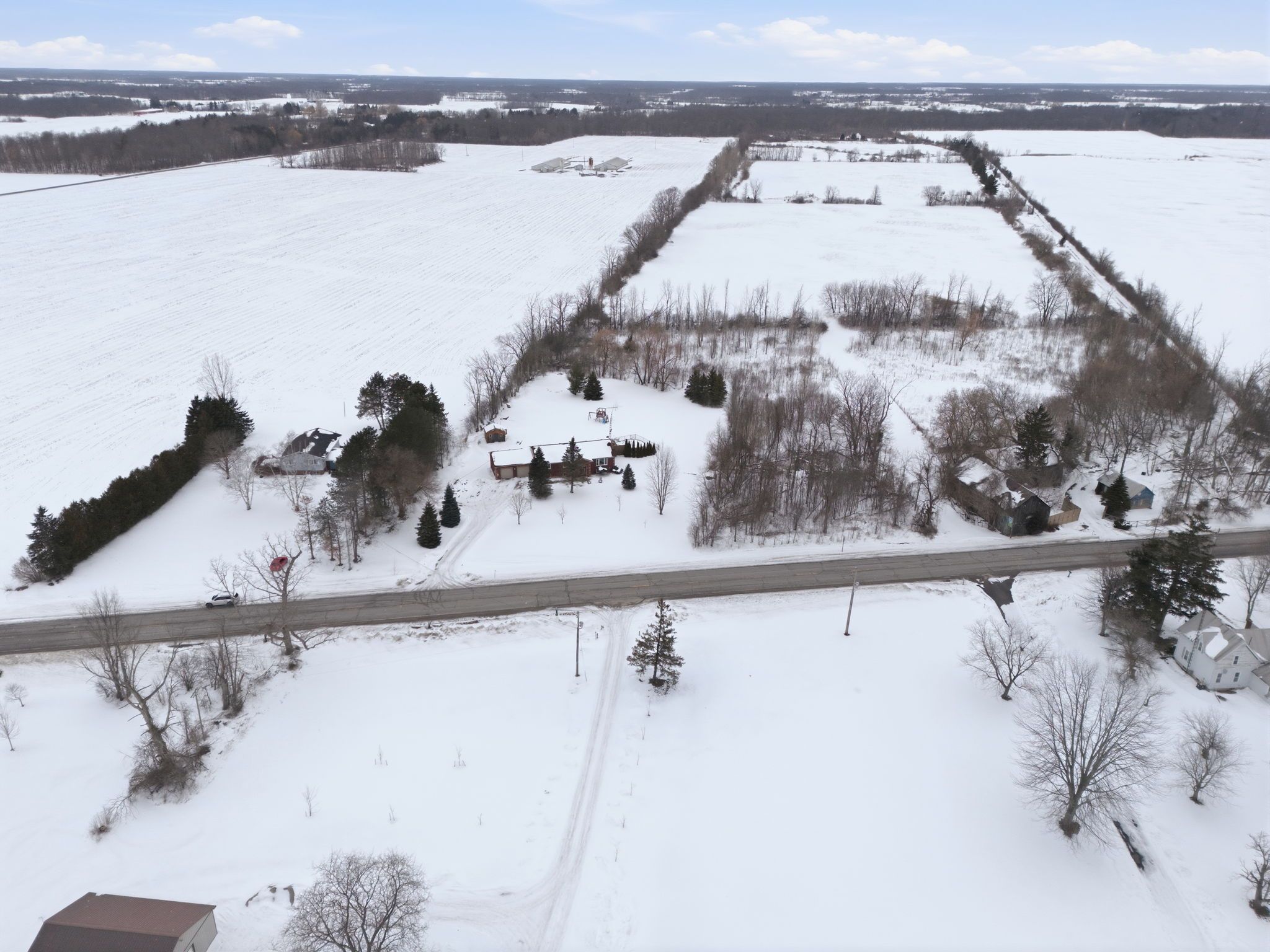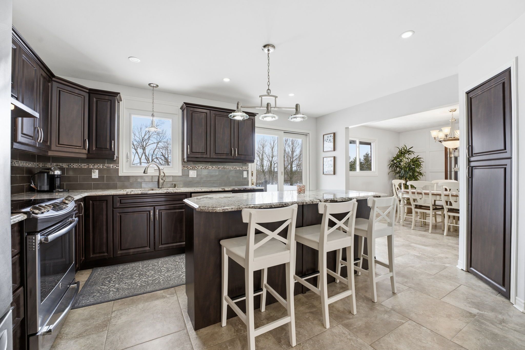 Discover peaceful country living in this all-brick, raised bungalow set on a private 1. 24 acre lot surrounded by mature trees. Positioned well back from the road, the expansive driveway offers parking for 10+ vehicles - perfect for guests, trailers, or all your toys. Built with durable core slab construction, providing solid floors for the main-level, and open-concept living in the basement. Step inside through the spacious, welcoming foyer featuring dual closets and a beautiful open staircase that allows natural light to flow throughout both levels. The upper level showcases an updated kitchen with an oversized island, granite countertops, and seamless transition to the dining room with an eye-catching accent wall. The bright, spacious living room features custom built-ins framing an all-brick fireplace (not in use) and a large bay window. Three bedrooms and a 4-piece bathroom complete the upper level, with dual closets in the primary bedroom . The fully finished lower level is designed for entertaining with a built-in bar, gas fireplace, 3-piece bathroom, and flexible recreation space ideal for a playroom, home office, or future bedroom with convenient walk-up garage access and includes a utility/storage room with brand new furnace (jan 2026). The 500+ sq ft garage comfortably fits two vehicles and includes a gas line already roughed in for a heater. Step outside into the spacious yard to an oversized back deck overlooking the above-ground pool (as-is) - perfect for relaxing or entertaining. Enjoy the peace and privacy of rural living while being just minutes from the downtown core of dunnville.