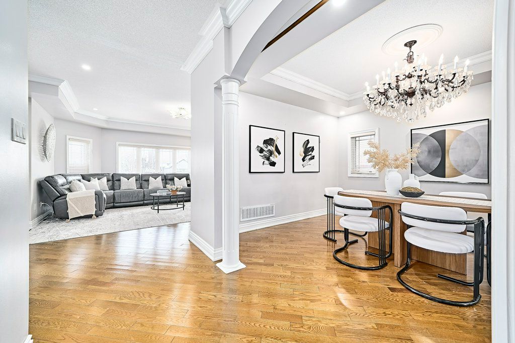 This impressive 4+3 bedroom detached home offers exceptional space, luxury finishes, and strong income potential in highly sought-after meadowvale village. Featuring 10-ft ceilings on the main floor and 9-ft ceilings upstairs, this home includes hardwood flooring, crown moulding, pot lights, and a custom kitchen with granite counters, a center island, a breakfast area, and high-end built-in stainless steel appliances. The main floor provides separate living and dining areas, an inviting family room with a fireplace, and a convenient main-floor office ideal for work or study. The primary bedroom offers a private balcony, walk-in closet, and a beautiful 5-piece ensuite, while another additional bedroom features its own private 3-piece ensuite, and two other bedrooms are connected by a jack-and-jill bathroom. A versatile second-floor flex area/office adds extra functionality for study, media, or quiet use. The fully finished 3-bedroom basement apartment features a separate entrance, full kitchen, 3 pc bathroom, laundry, and a comfortable living area, providing excellent potential for additional income or a seamless multi-generational living arrangement. The exterior includes a deep lot, fully fenced backyard, and a double garage with ample driveway parking, along with no residential home directly beside the property. Ideally located minutes from top-rated schools, parks, trails, shopping, plazas, transit, the go station, and major highways (401/407/410), this home provides exceptional comfort, convenience and investment appeal. If you're searching for a spacious home with income potential in a prestigious community, this is the one!