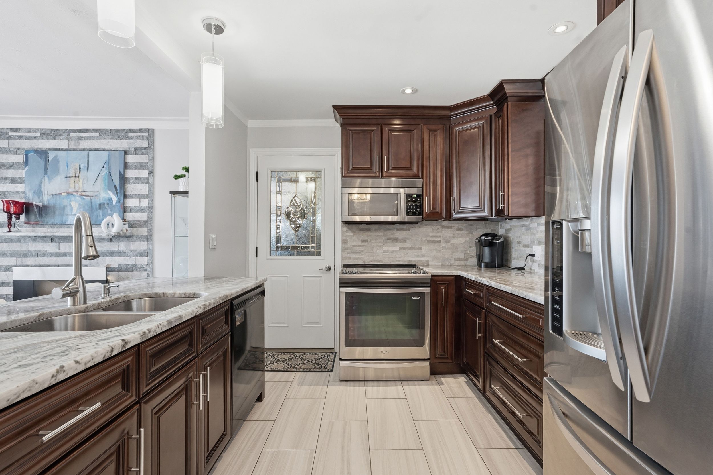• Updated kitchen features quartz countertops and stainless steel appliances.