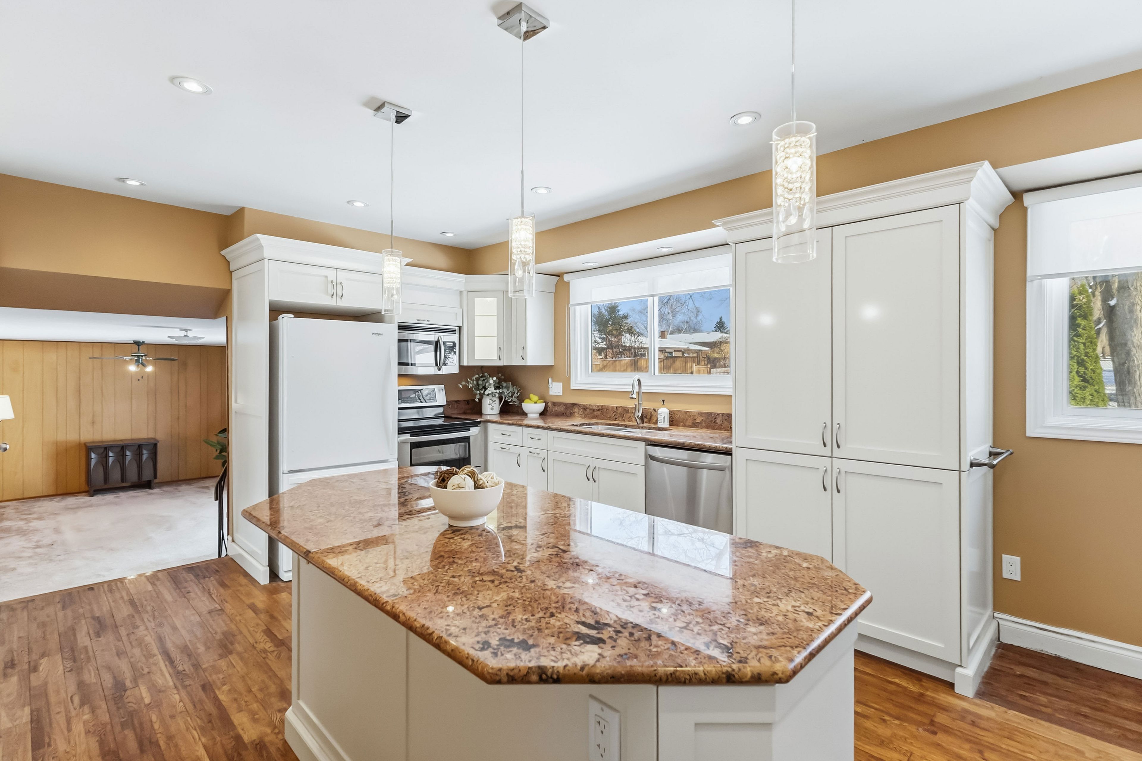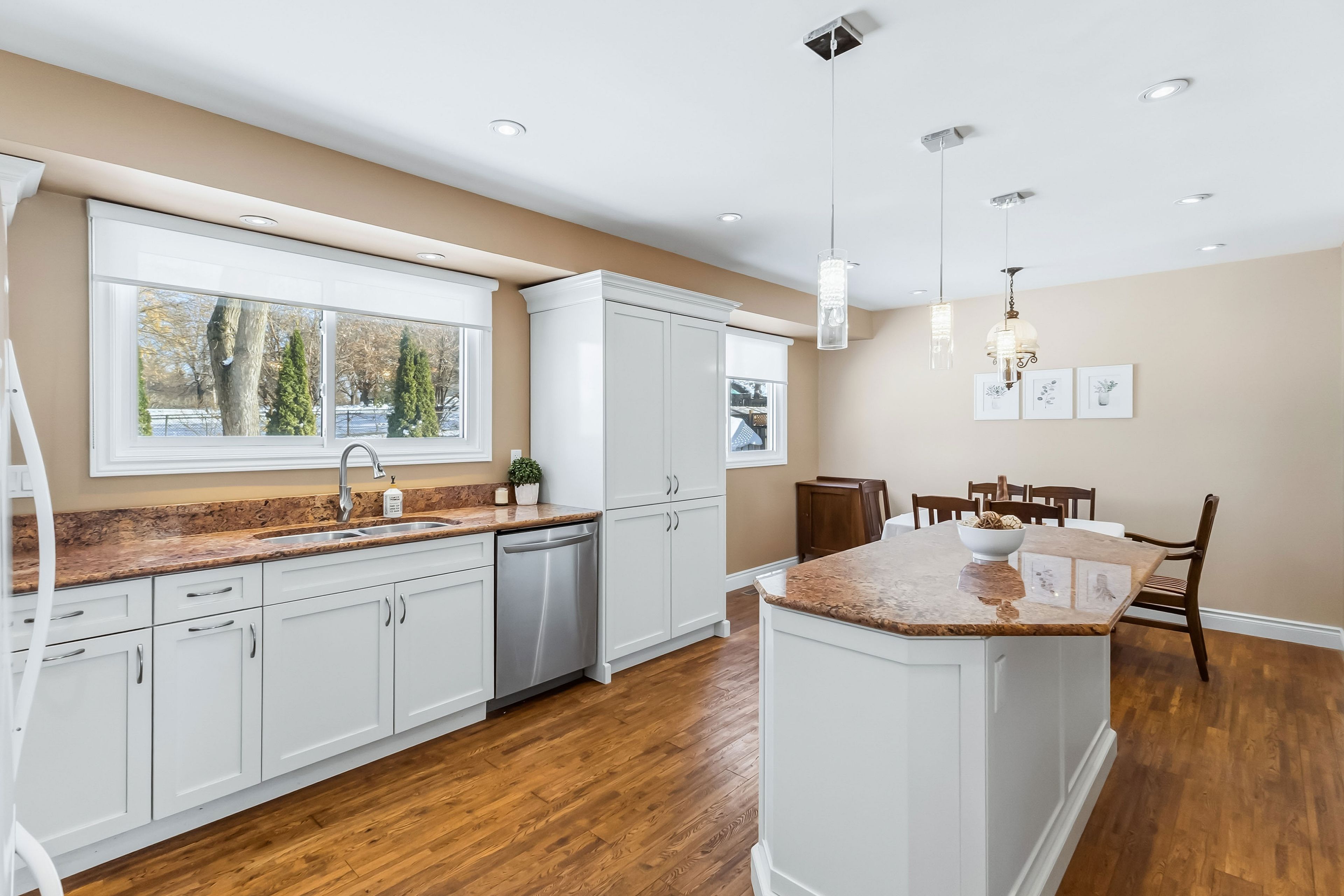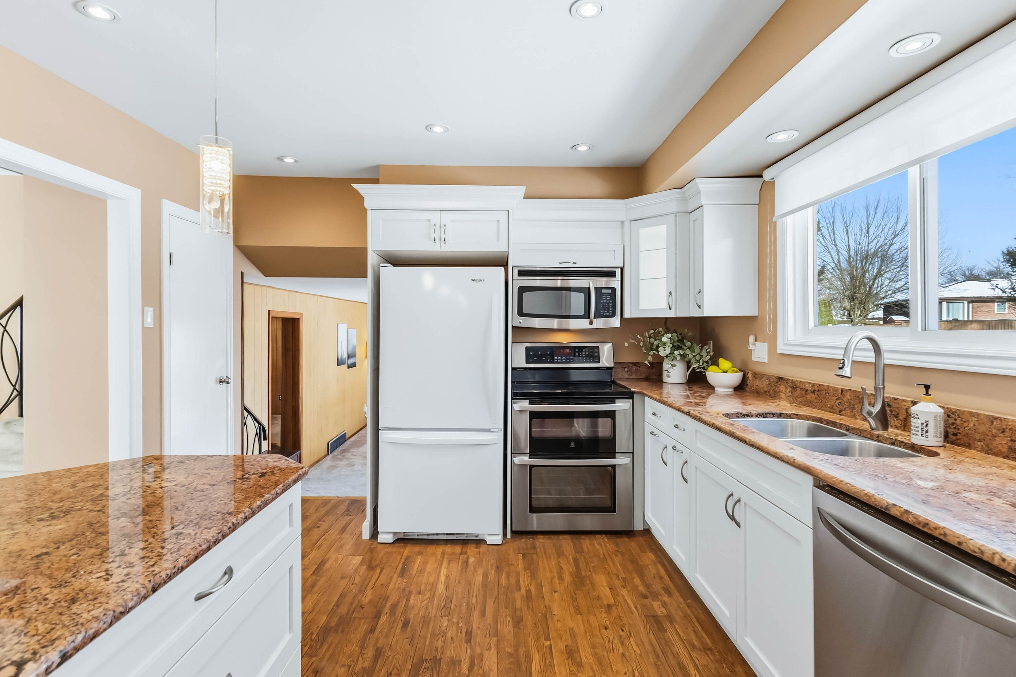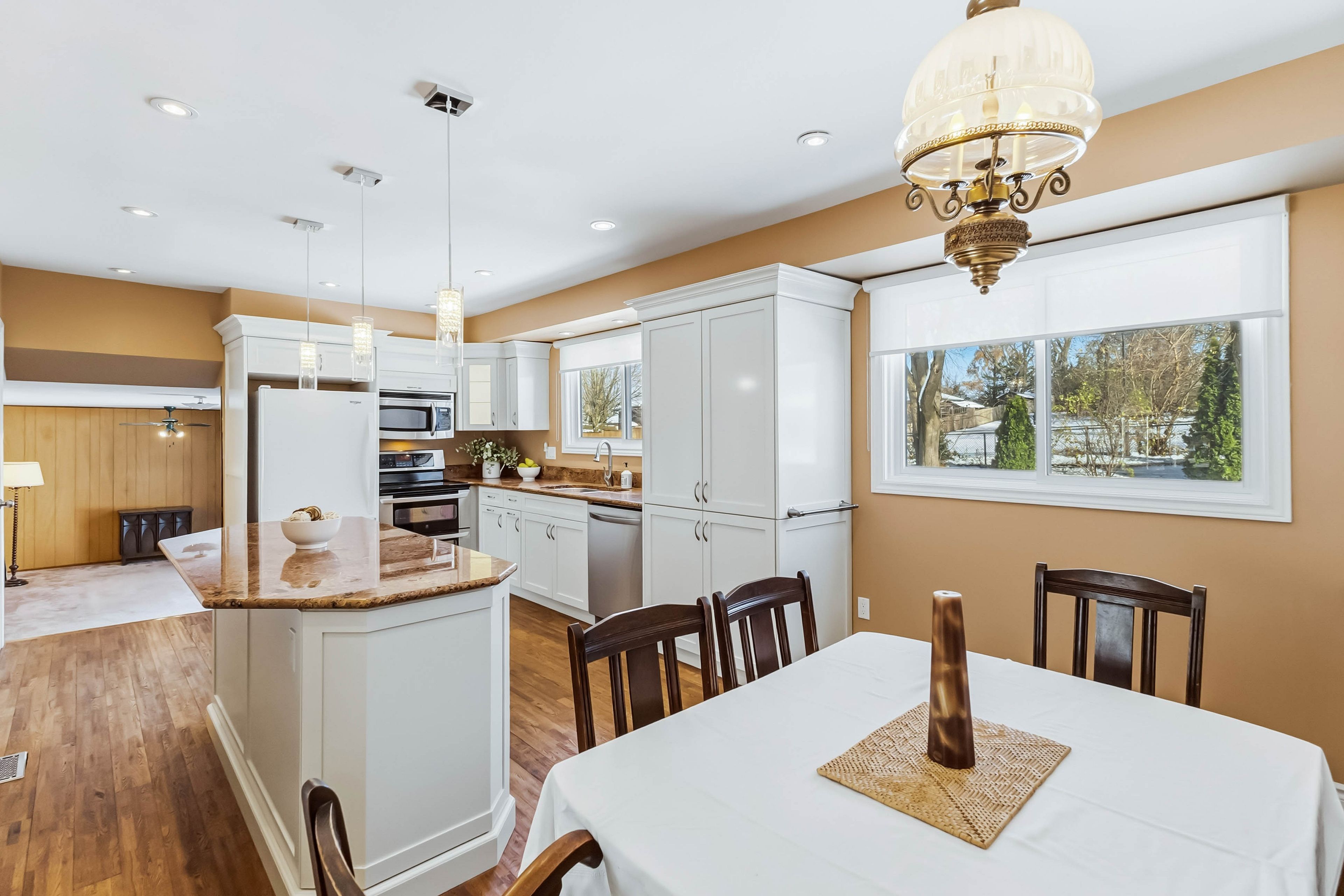 Welcome to 628 viscount road a spacious classic 4 level sidesplit with 2326sqft of total living area as per mpac. Tucked away in the heart of westmount, this well-maintained 4-bedroom, 3-bathroom side-split offers a rare chance to create a forever home in one of london's most sought-after neighborhoods. Inside, the homes layout is designed for flexibility. Enter into the spacious foyer and up a few steps to the roomy front living room, featuring a newer charming bay window (2019) and cozy wood-burning stove, flows into a generous eat-in kitchen and dining area perfect for gathering with family and friends. The spacious kitchen was thoughtfully replaced in 2005 with modern appliances (like a double oven), plenty of pull out cupboards, pot drawers, flooring, large island, lighting and granite countertops, offering both style and function. A cozy family room just features a patio door that opens directly to a large deck and fenced backyard backing onto open space, a seamless extension of living space that invites summer barbecues, outdoor play, and evenings under the stars. The ground floor also includes a bedroom and ensuite 3pc bath, ideal for family living, an in-law suite, or creating a private guest retreat. Upstairs, three additional bedrooms and a beautifully renovated bathroom (2010) provide plenty of space for everyone. The lower level offers a rec room, two-piece bath, laundry, and generous storage. This home has been carefully updated over the years: most windows replaced between 1990-2000, the shingles replaced in 2019, chimney repointed in 2019, and the furnace was replaced in 2022, offering peace of mind for years to come. Fall in love with the walkable trails, nearby park like arthur ford park, and close access to schools and shopping. With an easy commute to the 401, this location makes daily living simple and connected. Discover the potential of 628 viscount road, book your private showing today.