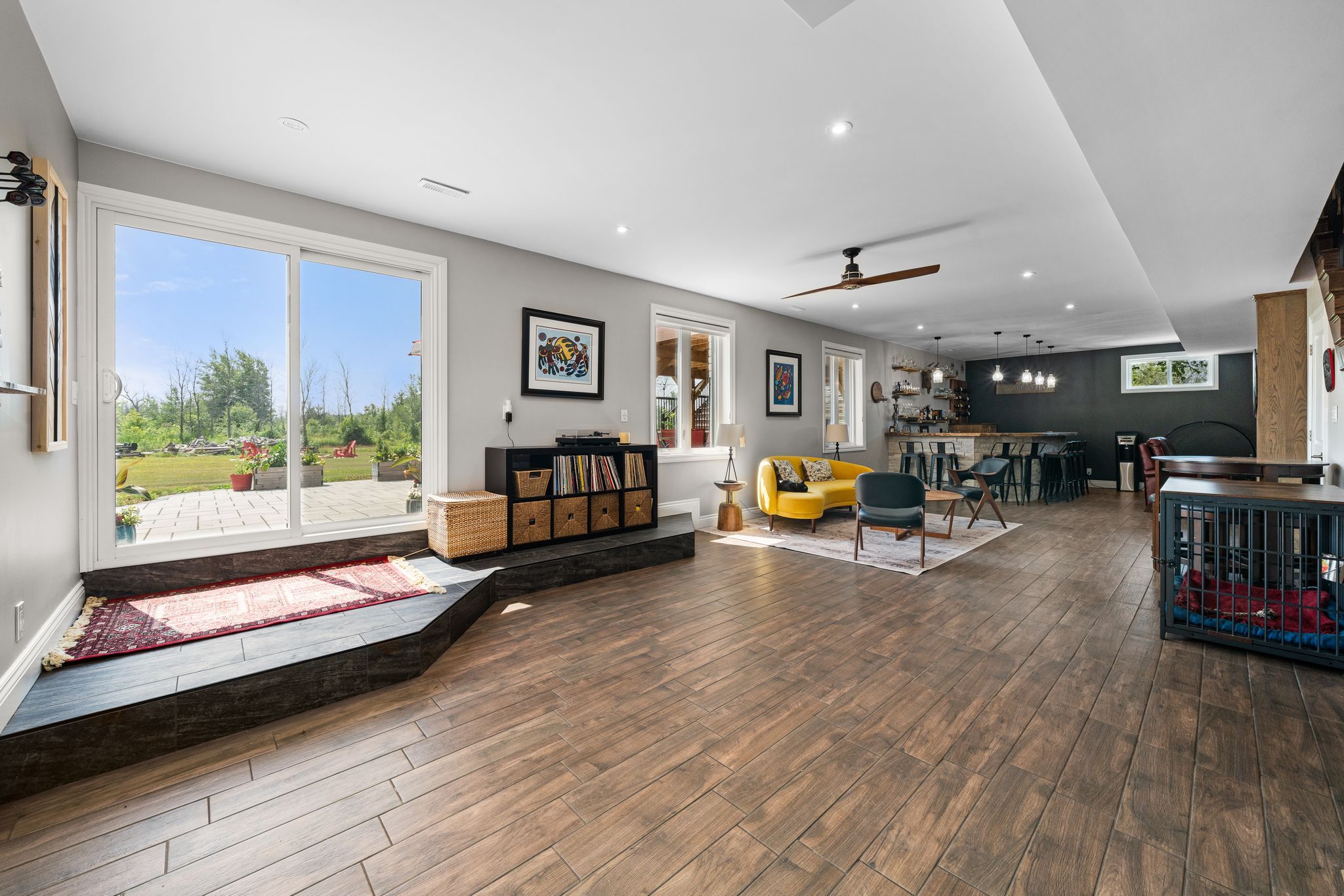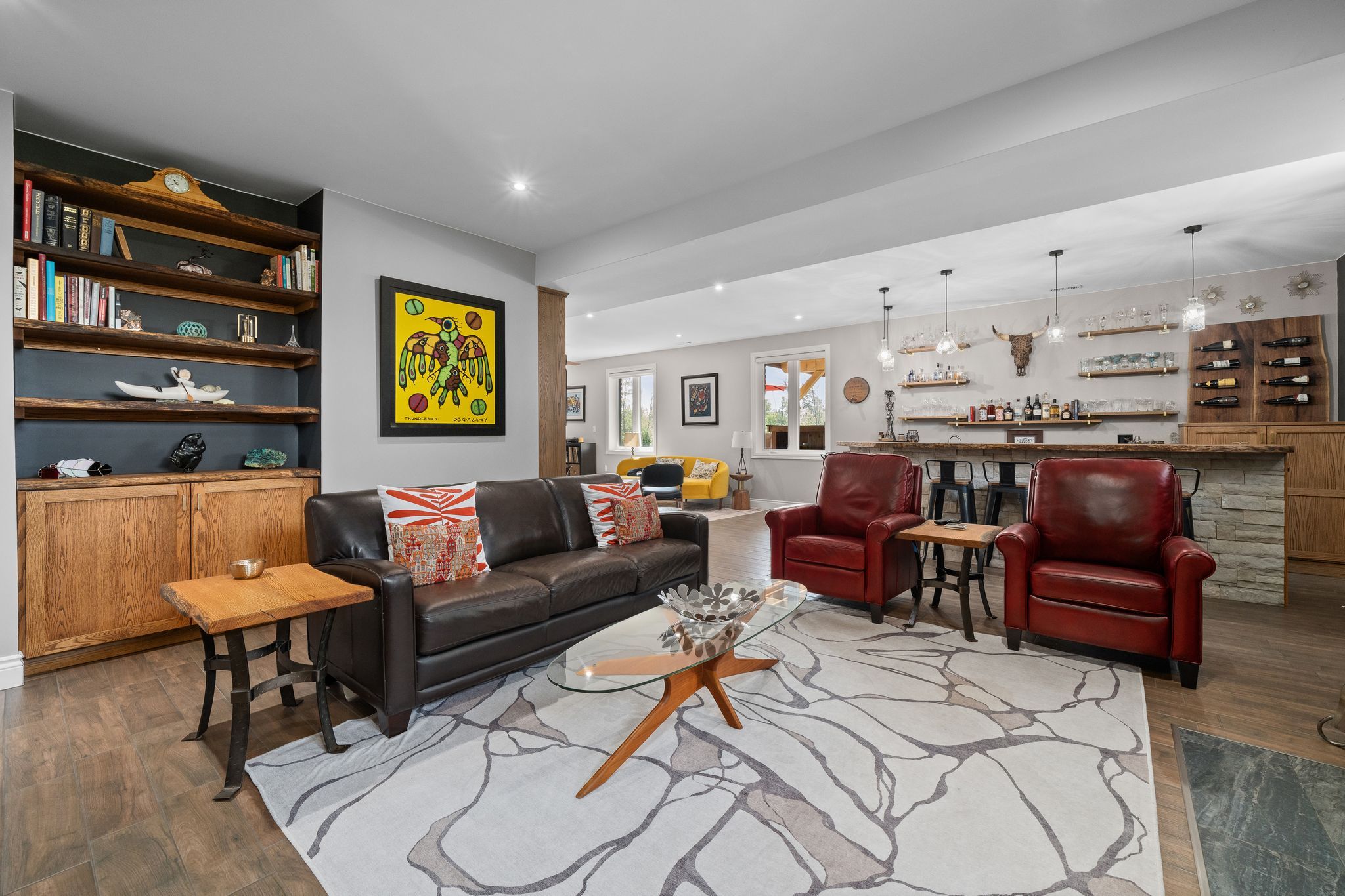 • Custom wet bar and spacious recreation room ideal for entertaining.