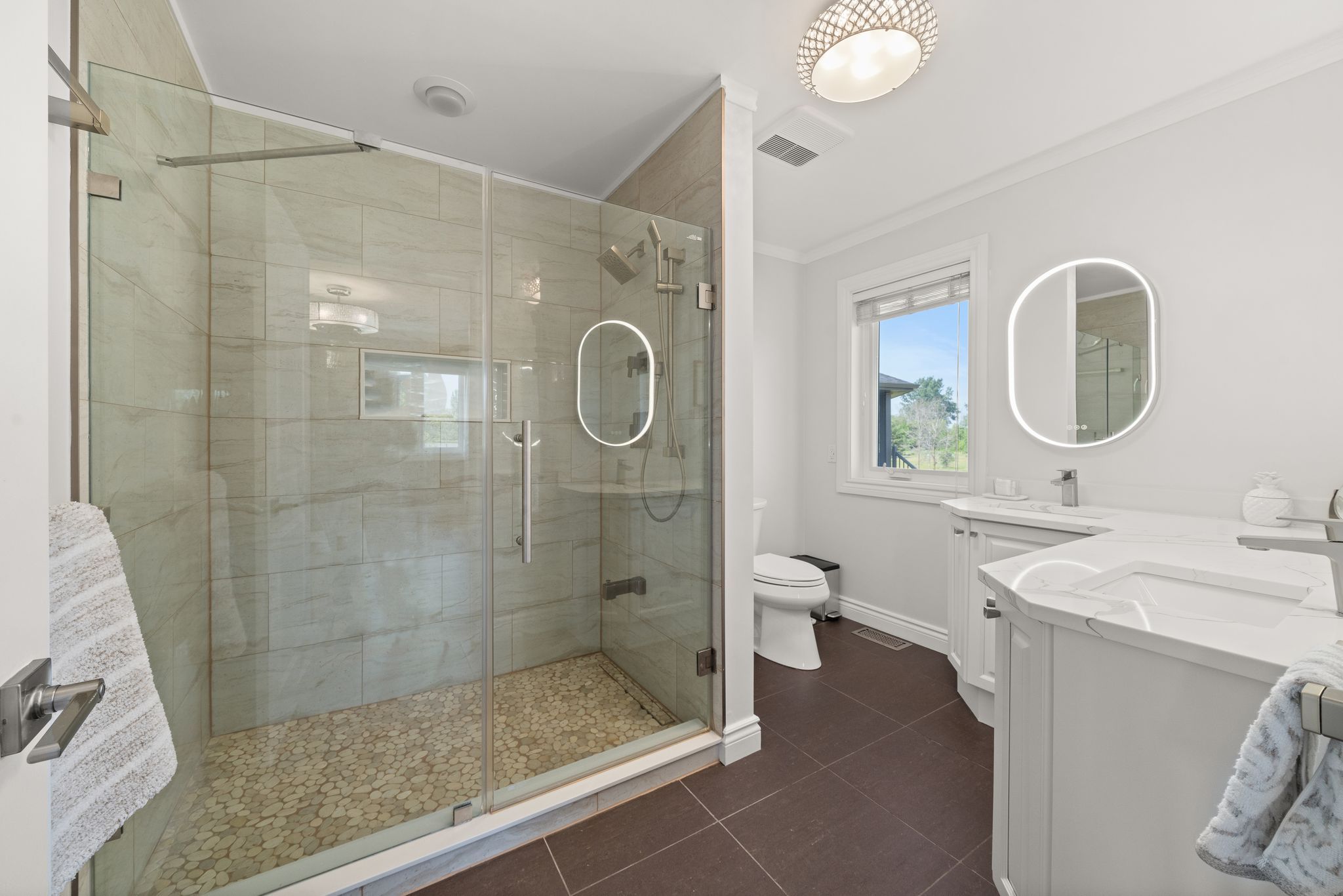 • Expansive primary suite with a newly renovated ensuite bathroom.