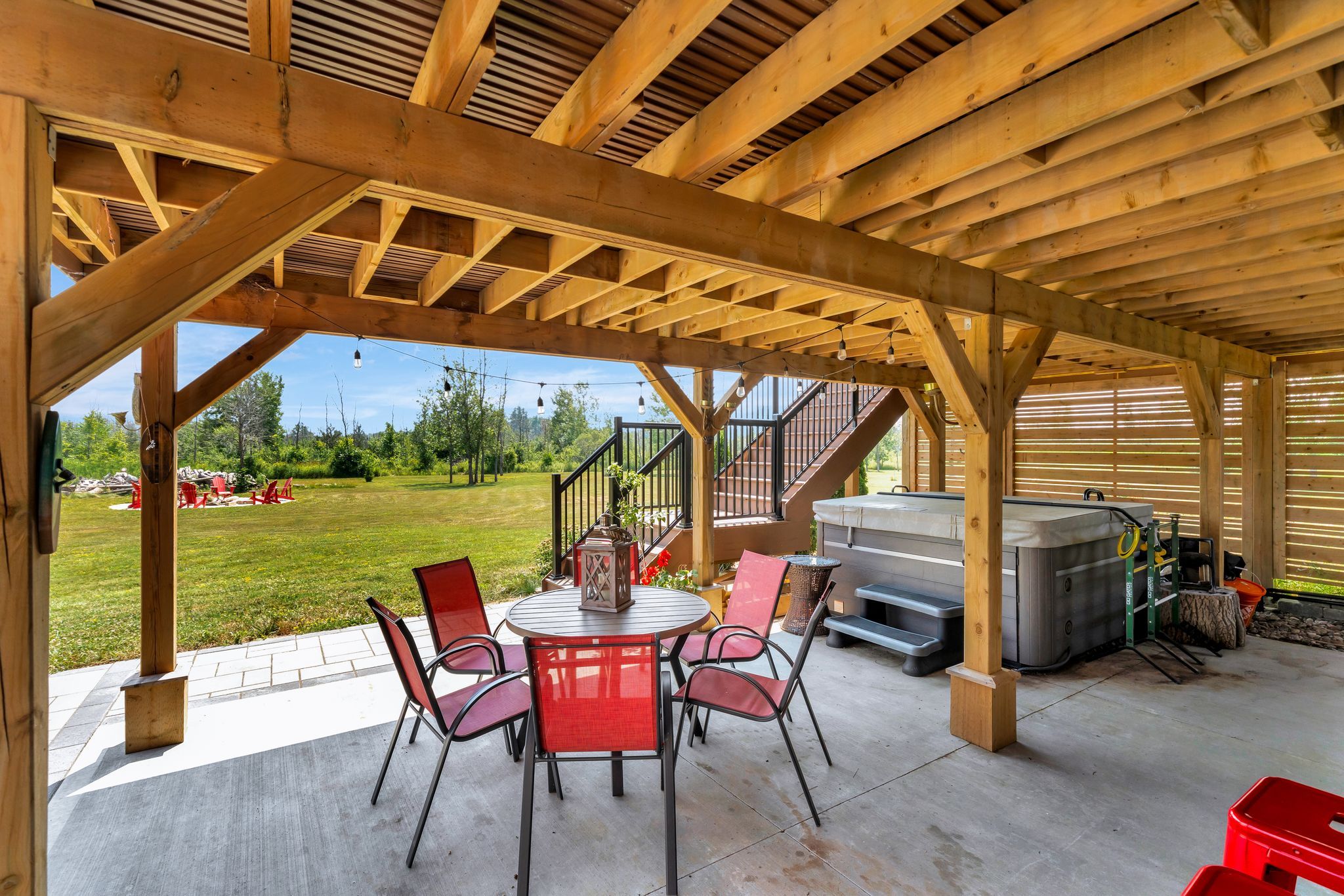Subtype DetachedIndoor Features Air Exchanger, Auto Garage Door Remote, Bar Fridge, Carpet Free, ERV/HRV, In-Law Capability, Primary Bedroom - Main Floor, Propane Tank, Storage, Sump Pump, Water Heater Owned, Water Purifier, Water SoftenerOutdoor Features Deck, Hot Tub, Landscaped, Patio, Privacy, Porch, Year Round LivingAmenities Clear View, Electric Car Charger, School Bus RouteOwnership FreeholdViews Clear, Meadow, PastureBasement Finished with Walk-OutFoundation Concrete BlockHeating / Cooling Forced AirHeating Fuel PropaneSewer Septic