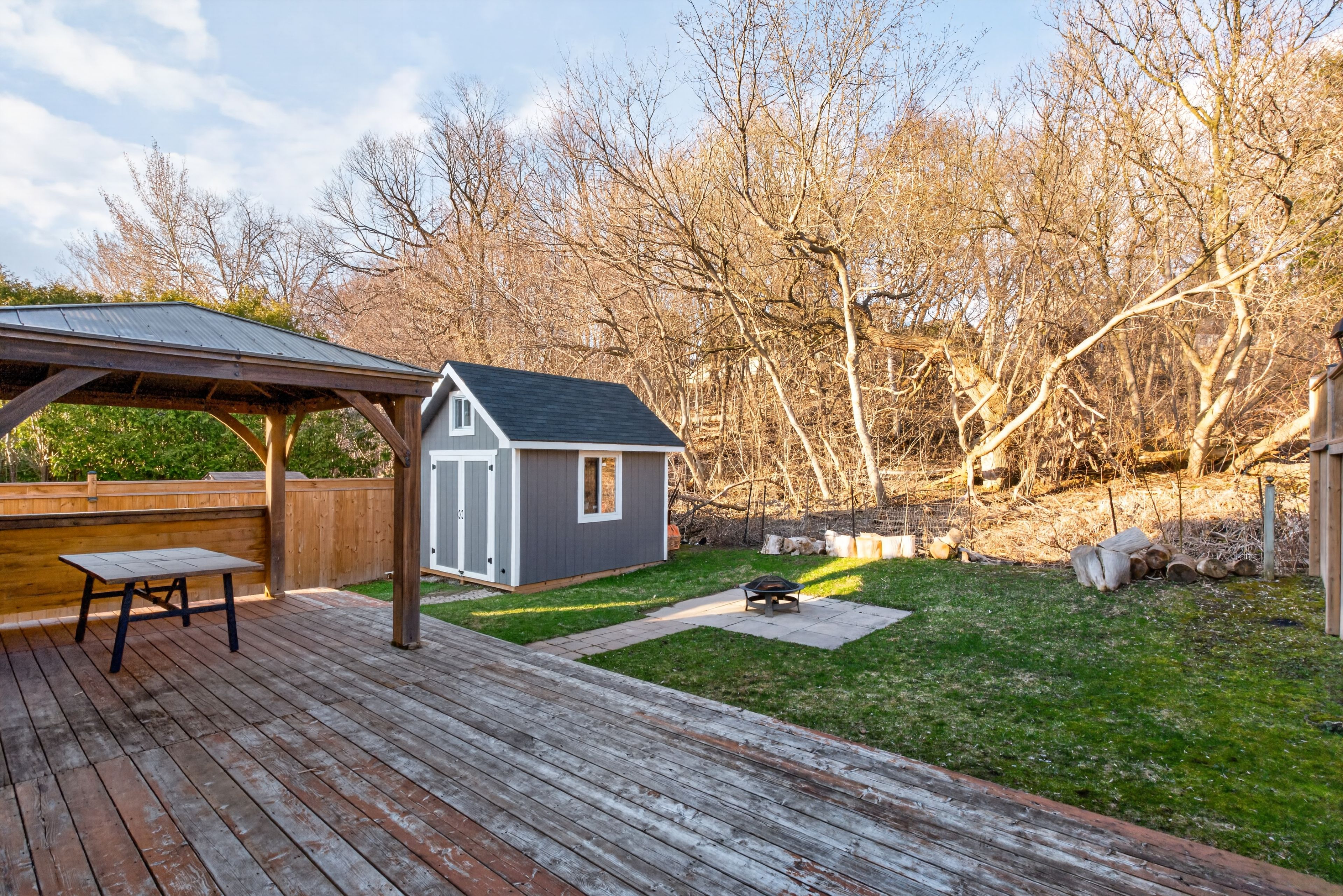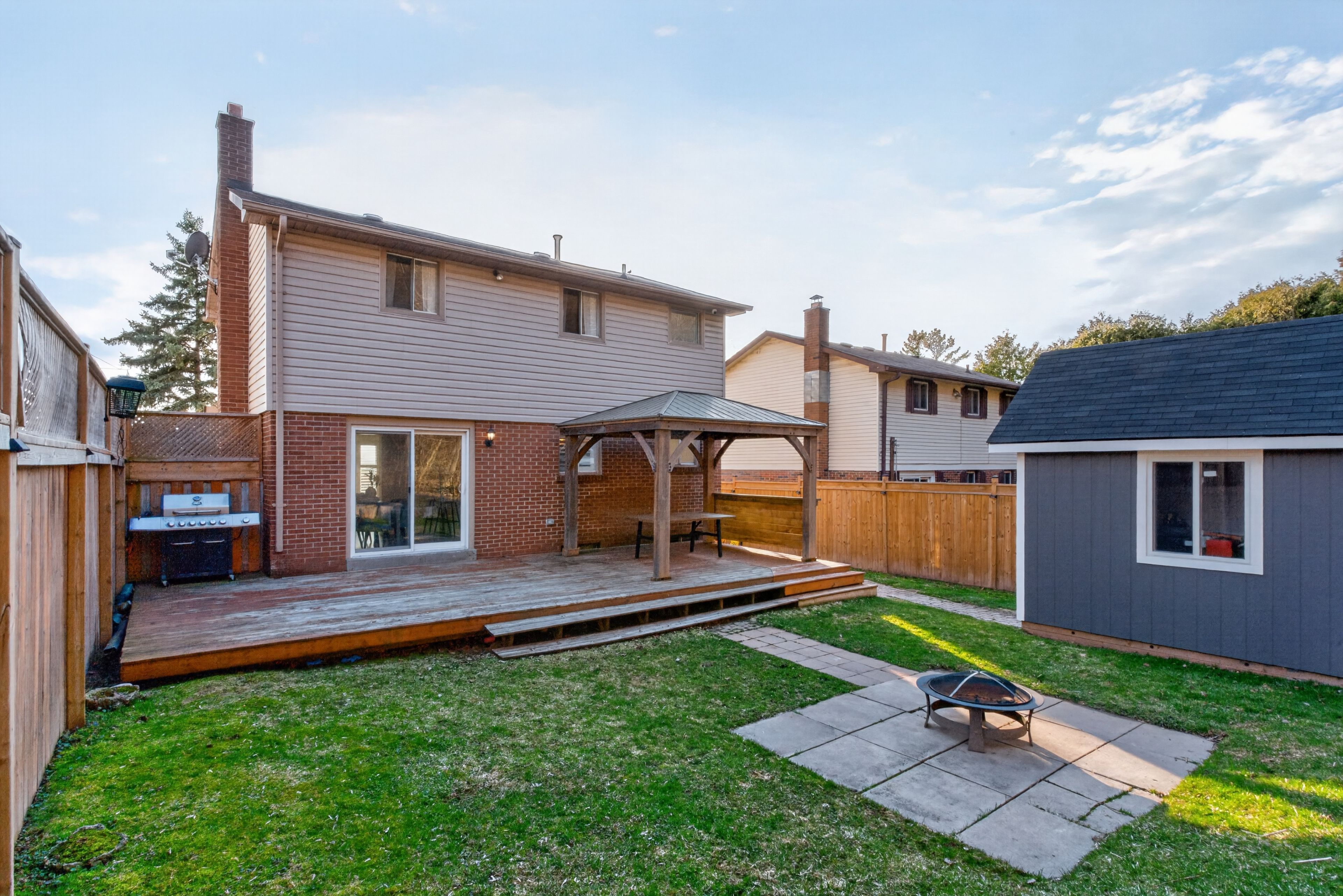 • Private landscaped yard features an extended deck and gazebo for relaxation.