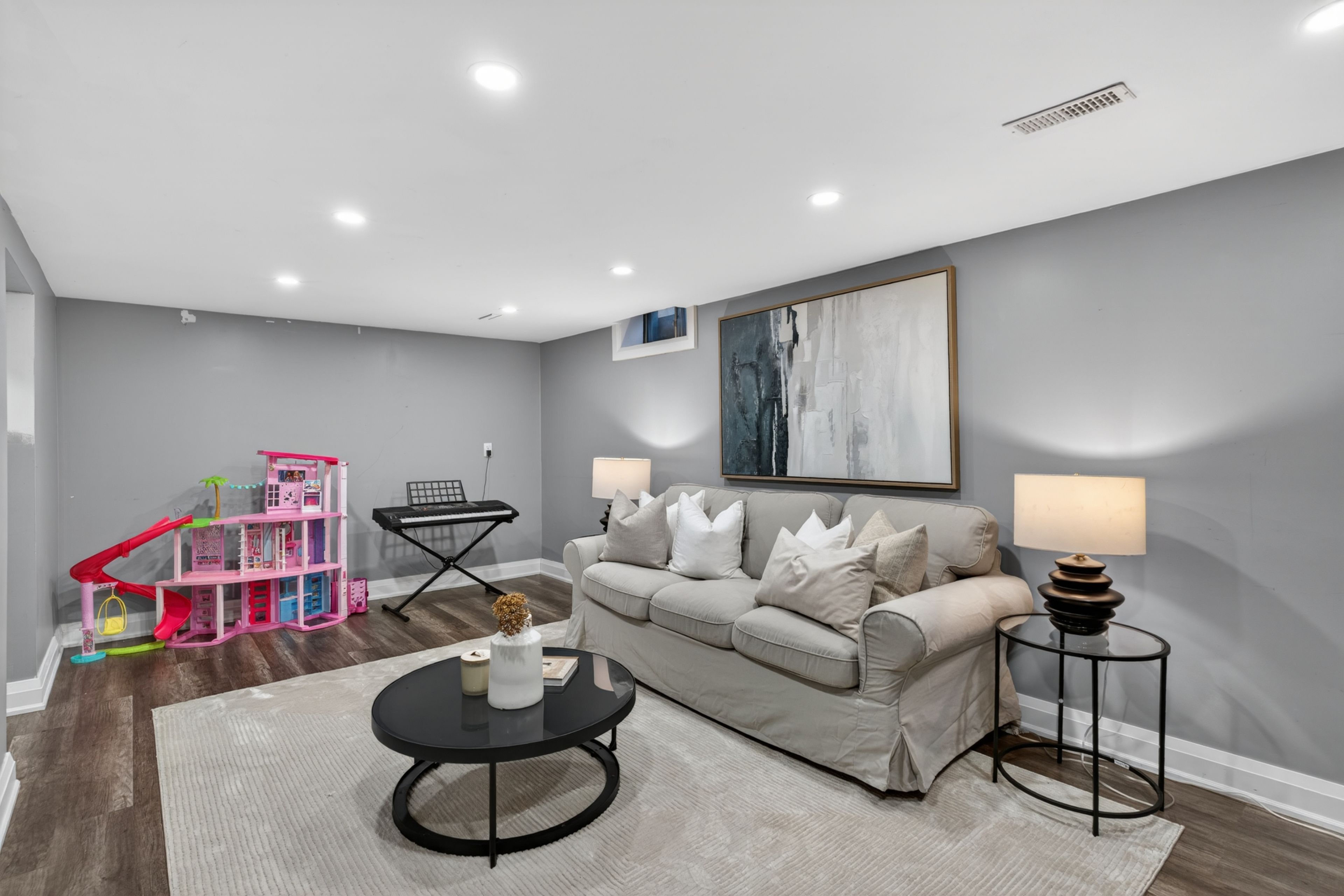 • Finished basement offers flexible space for recreation, work, and family needs.