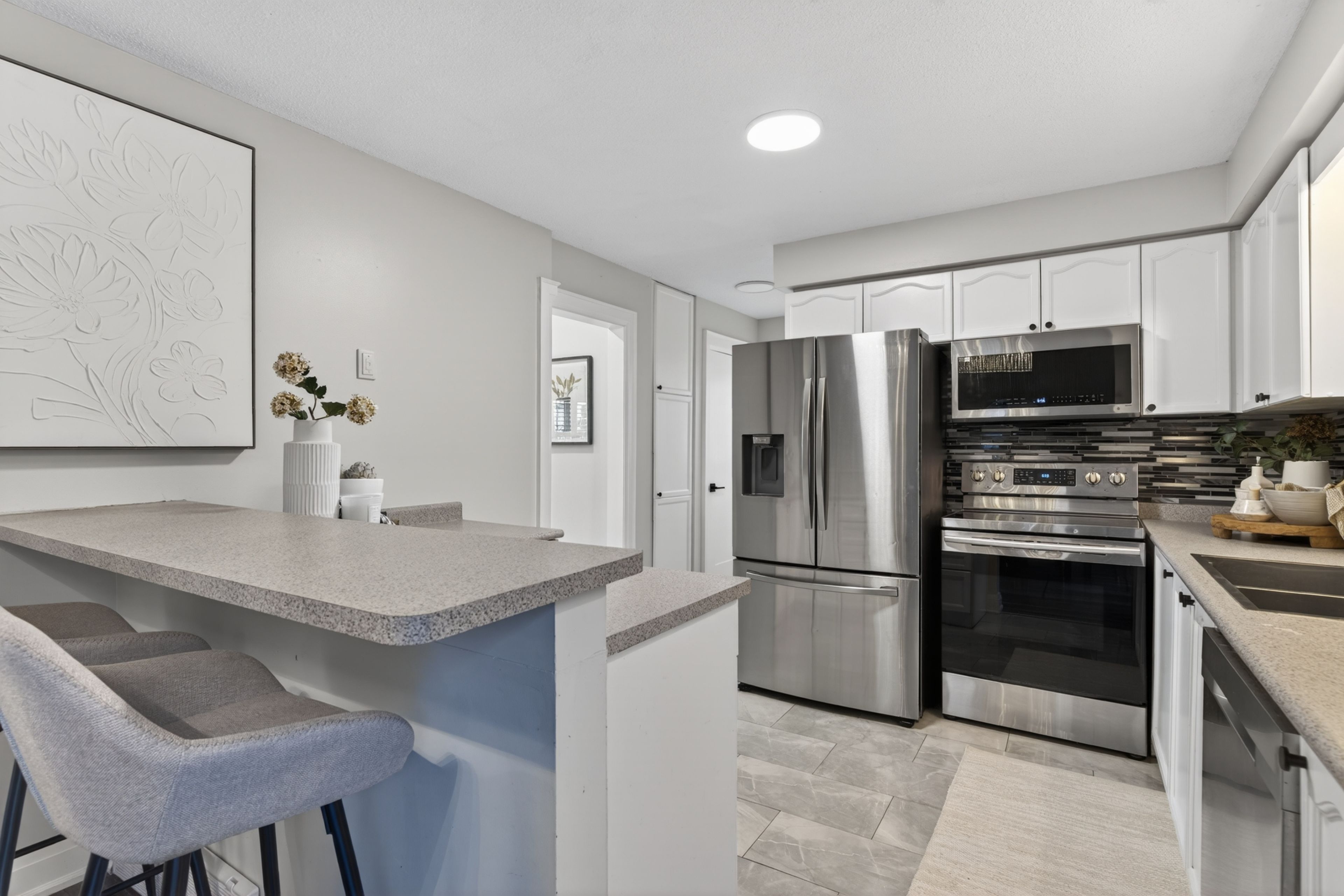 • Bright and modern interior with recently renovated bathrooms and flooring.