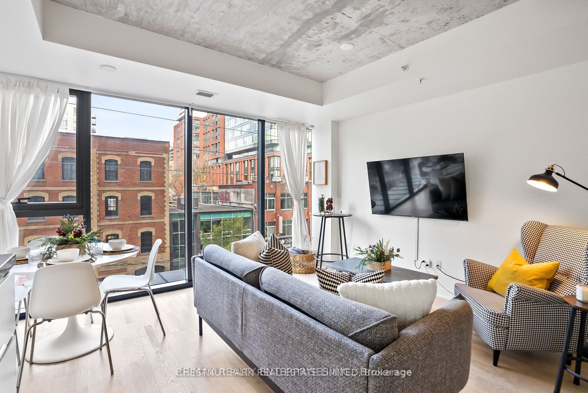 • Bright open concept layout with floor to ceiling windows and high ceilings.