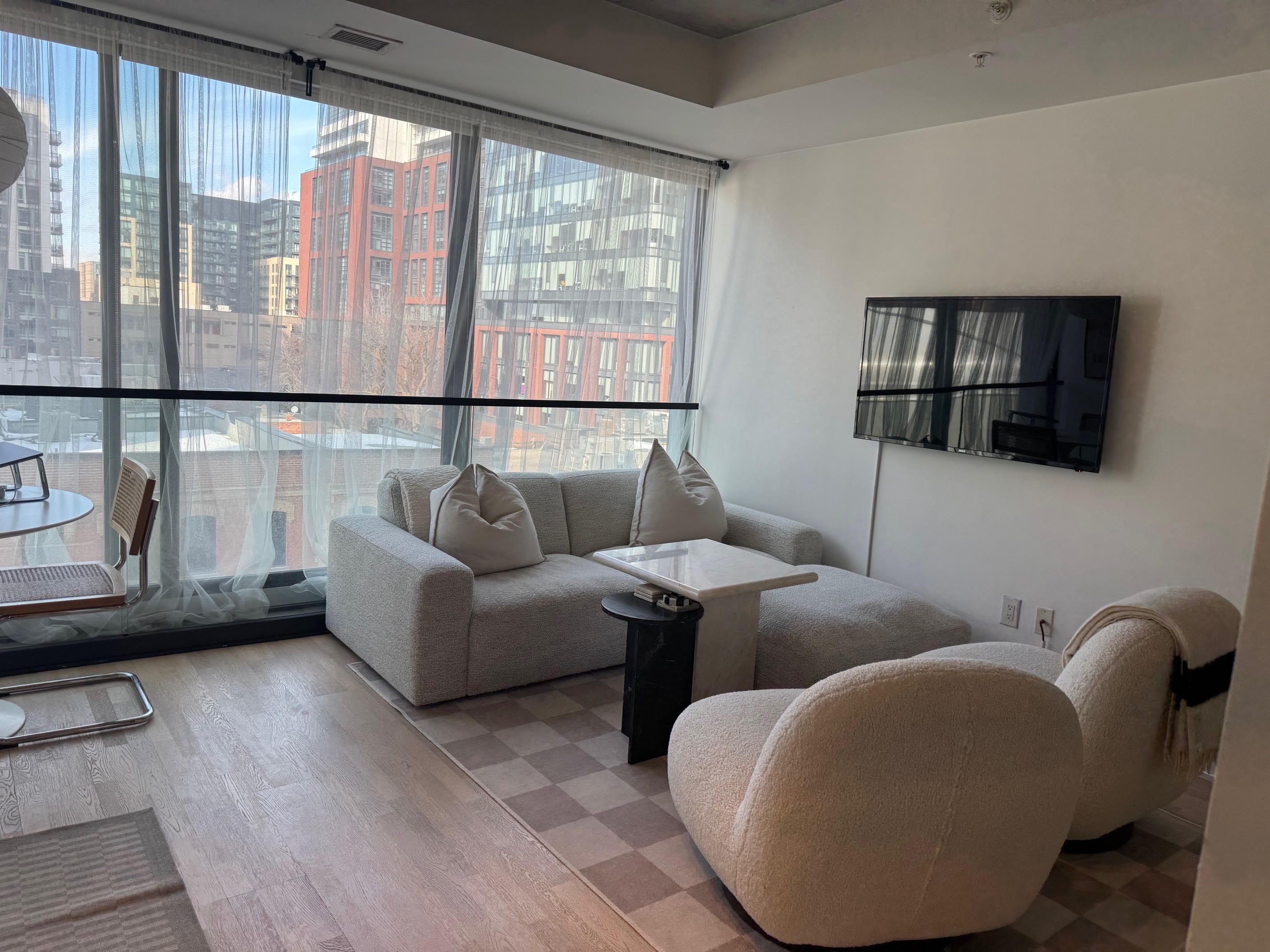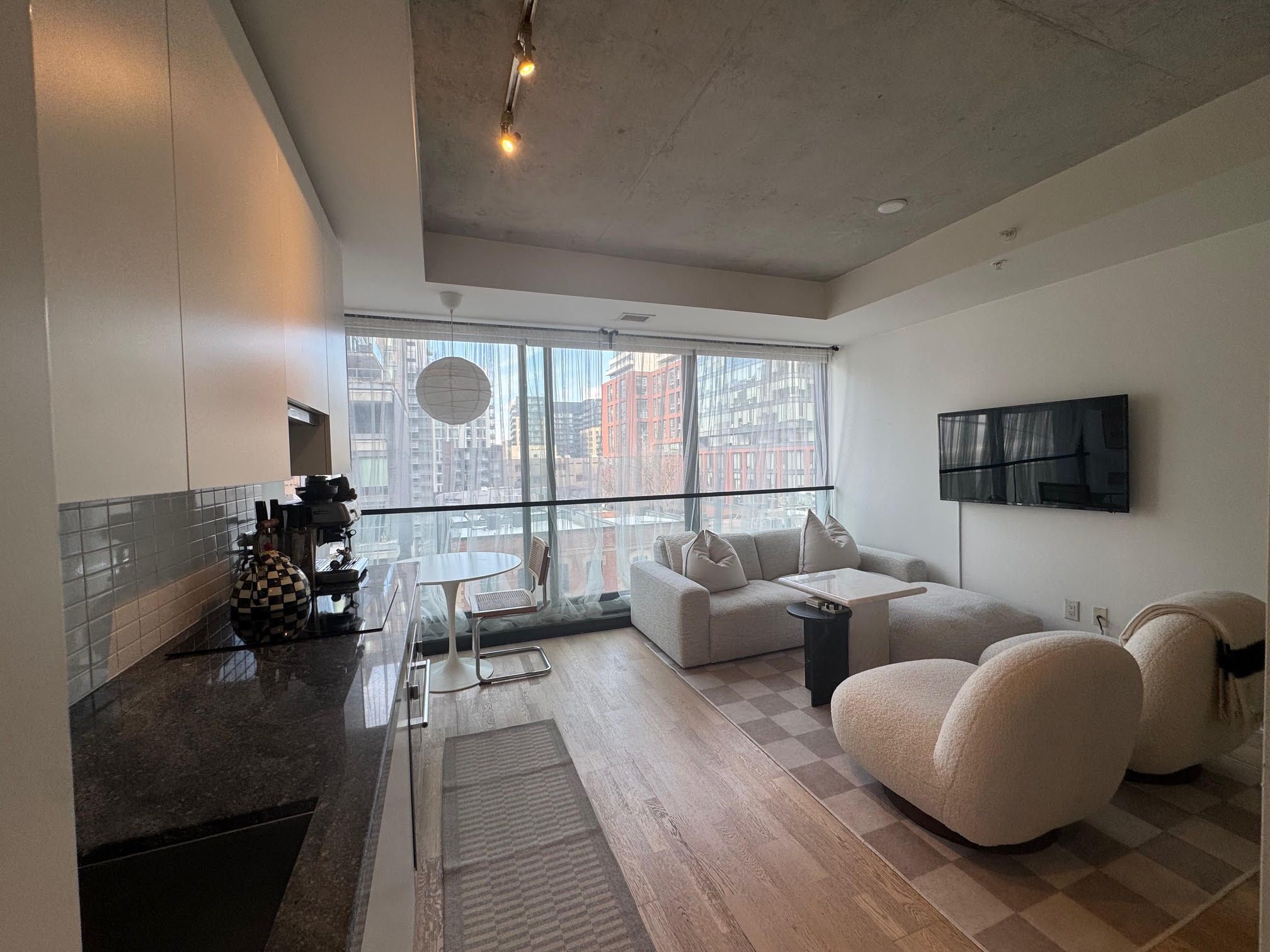 • Modern open concept condo with floor-to-ceiling windows for bright views.