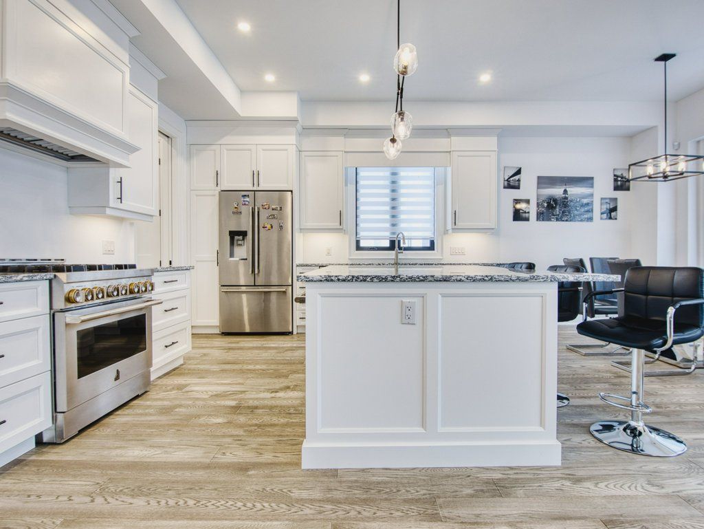 • Chef-inspired kitchen with central island and breakfast area.