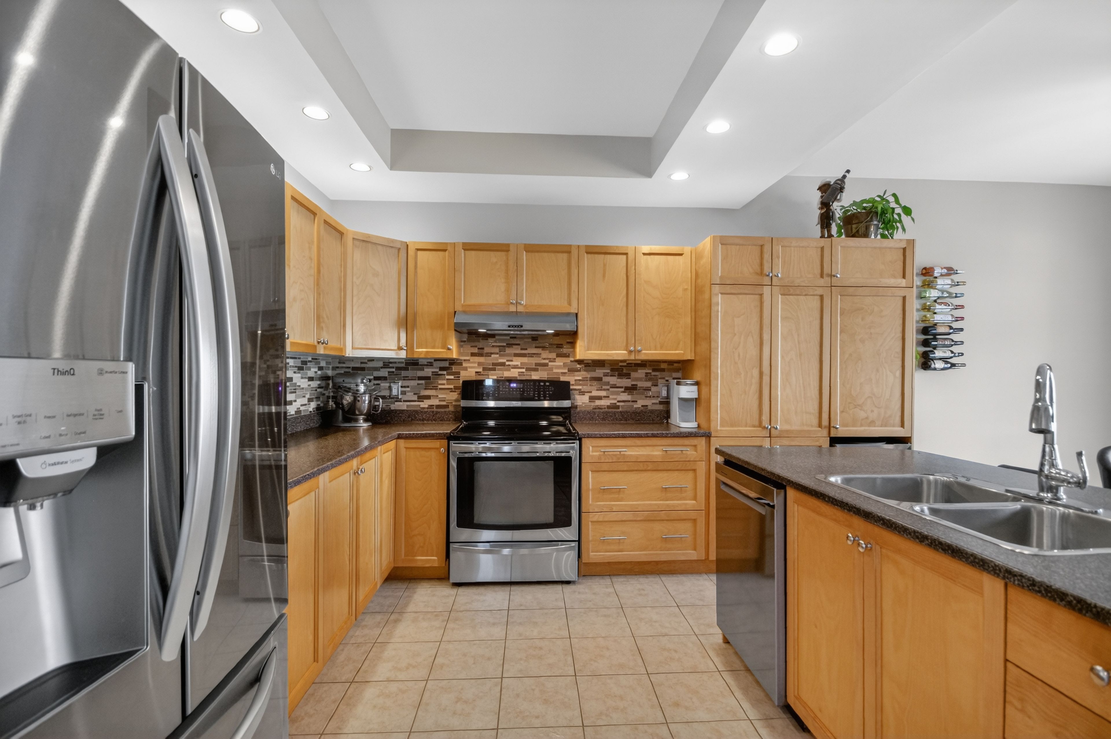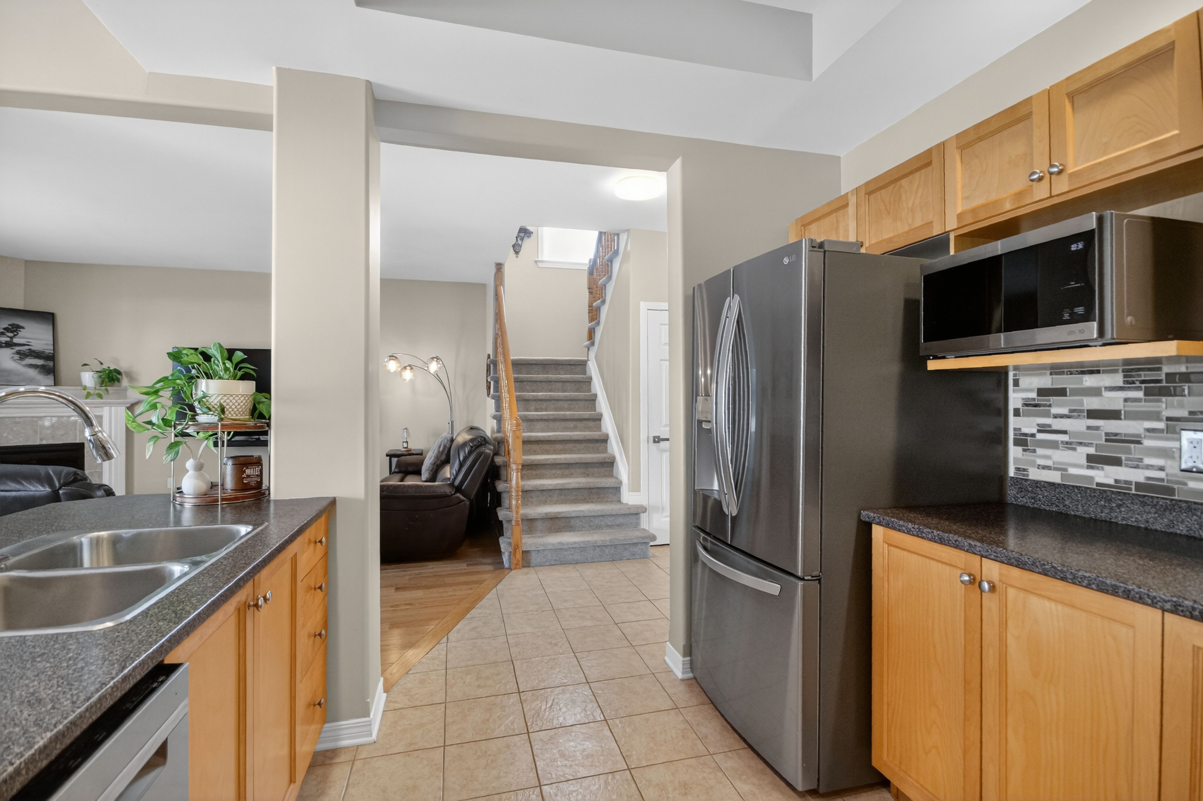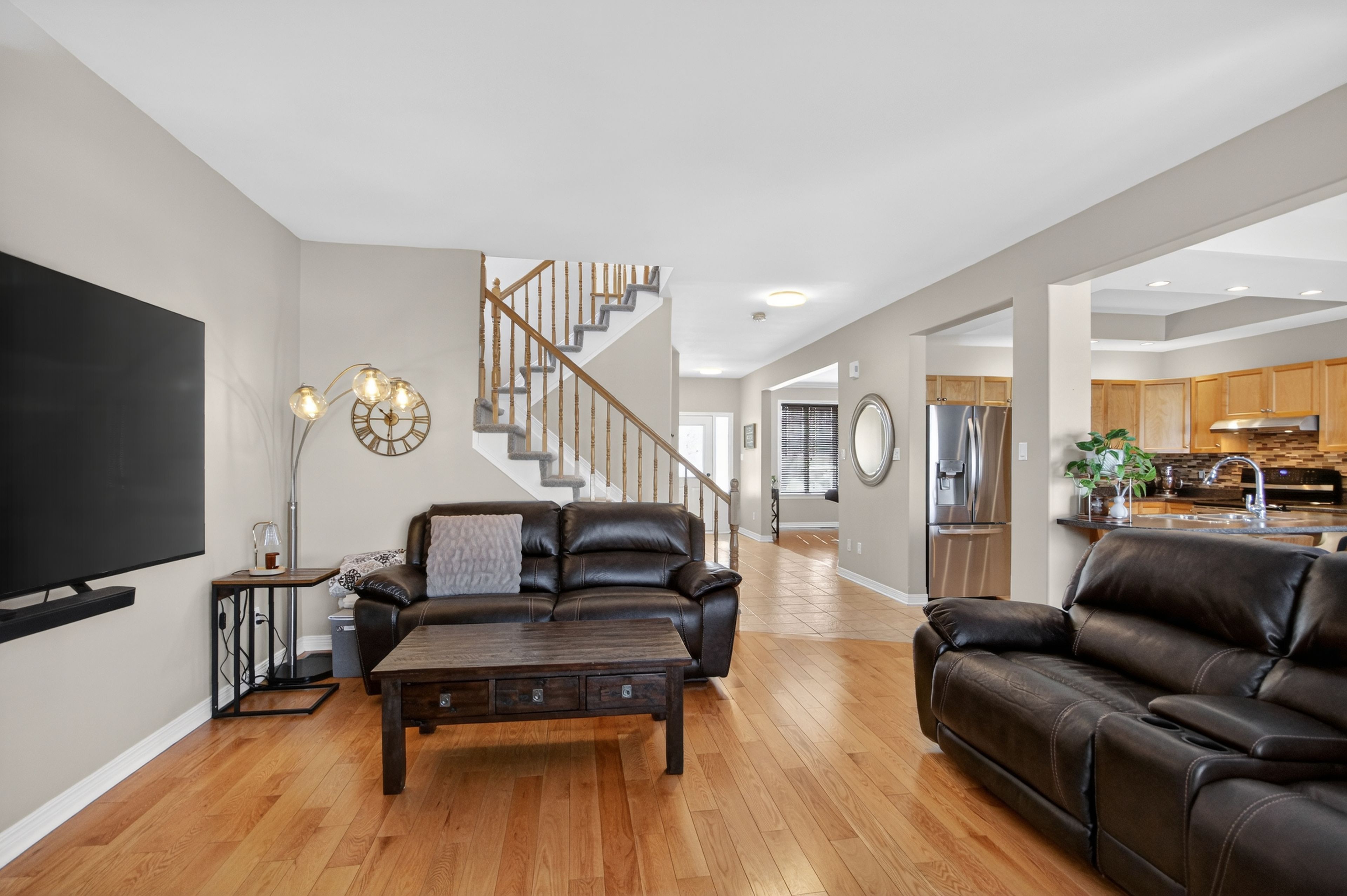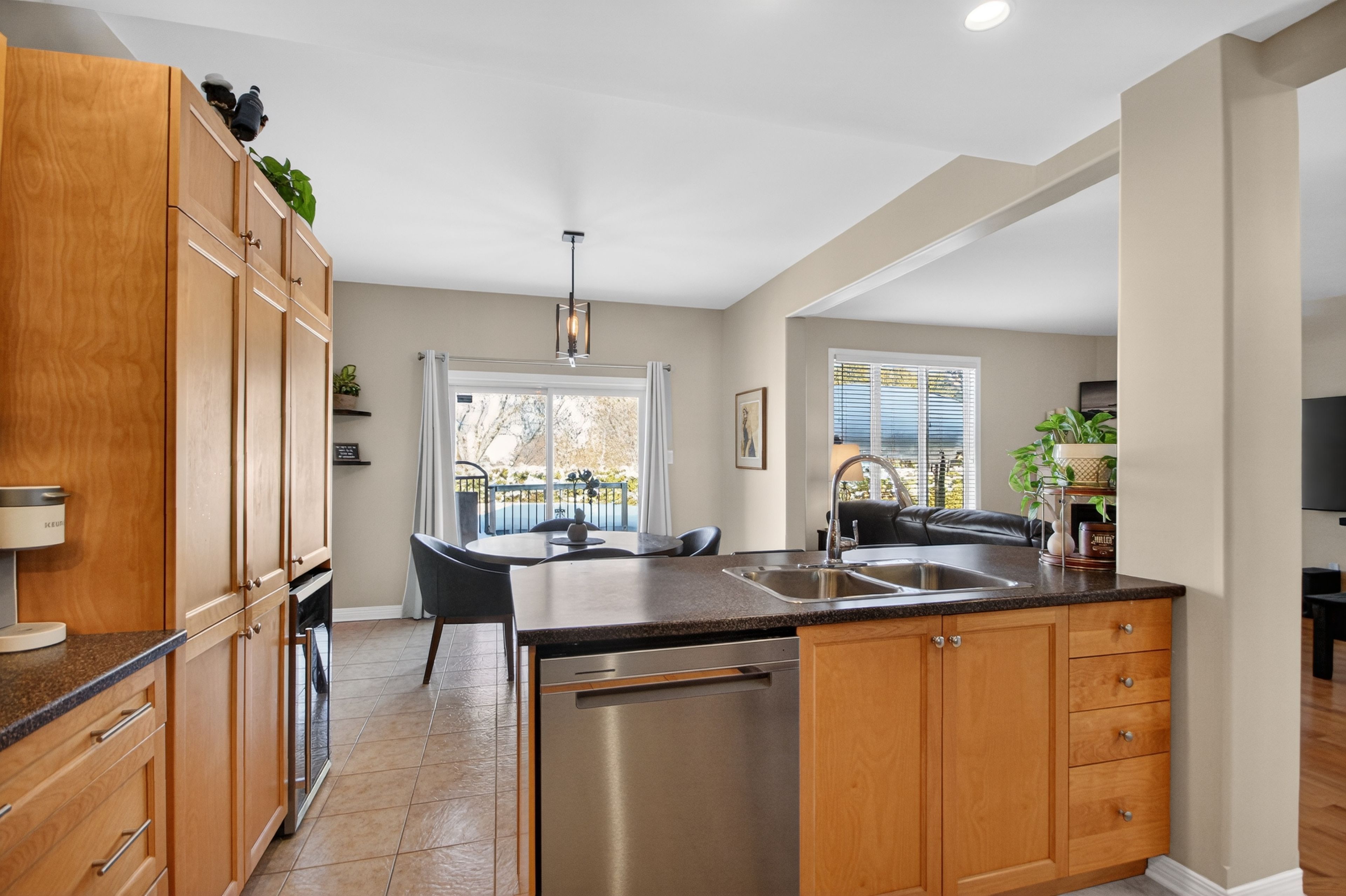 6291 ottawa street w. Beautifully maintained, original-owner 3 bedroom home. "silver birch" model by glenlyn homes. Open concept main floor living with neutral finishes, rounded drywall corners, and thoughtful details throughout. "great room" offers cozy fireplace, large bright window overlooking backyard oasis, and warm hardwood flooring with character. The kitchen is the heart of the home and features an abundance of cabinetry, additional pantry, island with breakfast bar, wine fridge, stainless steel appliances, pot lighting, tile backsplash, and large eating area that leads to the back deck. Flexible living room or dining room with crown molding ideal for everyday living or formal entertaining. Upstairs, the primary bedroom offers a vaulted ceiling, walk-in closet, and updated luxury ensuite. New carpeting adds warmth and comfort. Laundry room conveniently located on the second level. Finished lower level with large recreation room, den, 2 pc bath, and ample storage. Meticulously landscaped backyard complete with heated above-ground saltwater pool, spacious deck for entertaining, and gazebo ideal for summer enjoyment. Ideally located within walking distance to a catholic school, new parks, outdoor recreational spaces, an outdoor rink, and basketball courts. Minutes to richmond centennial golf course. This location offers an exceptional lifestyle for growing families. Note: furnace 2022, carpets 2025, roof 2016, 8' x 8' shed, 50-amp breaker w/240 volt 3 phase in garage.