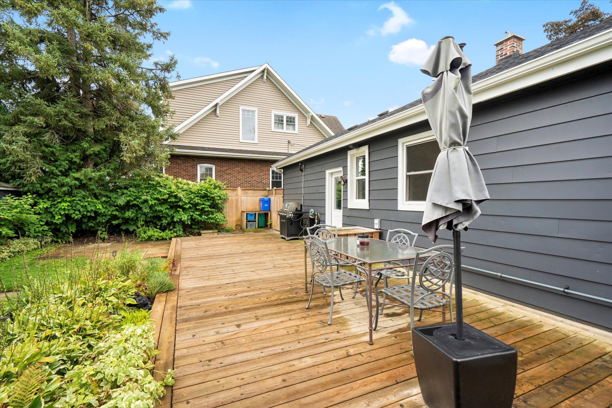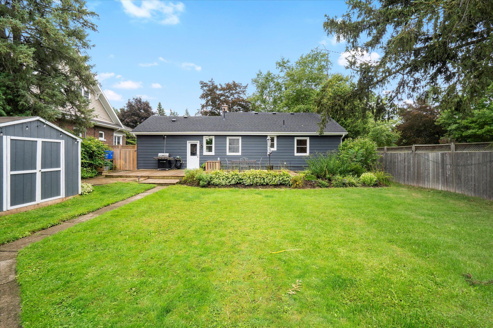 • Fully landscaped backyard featuring a fire-pit and garden beds.
