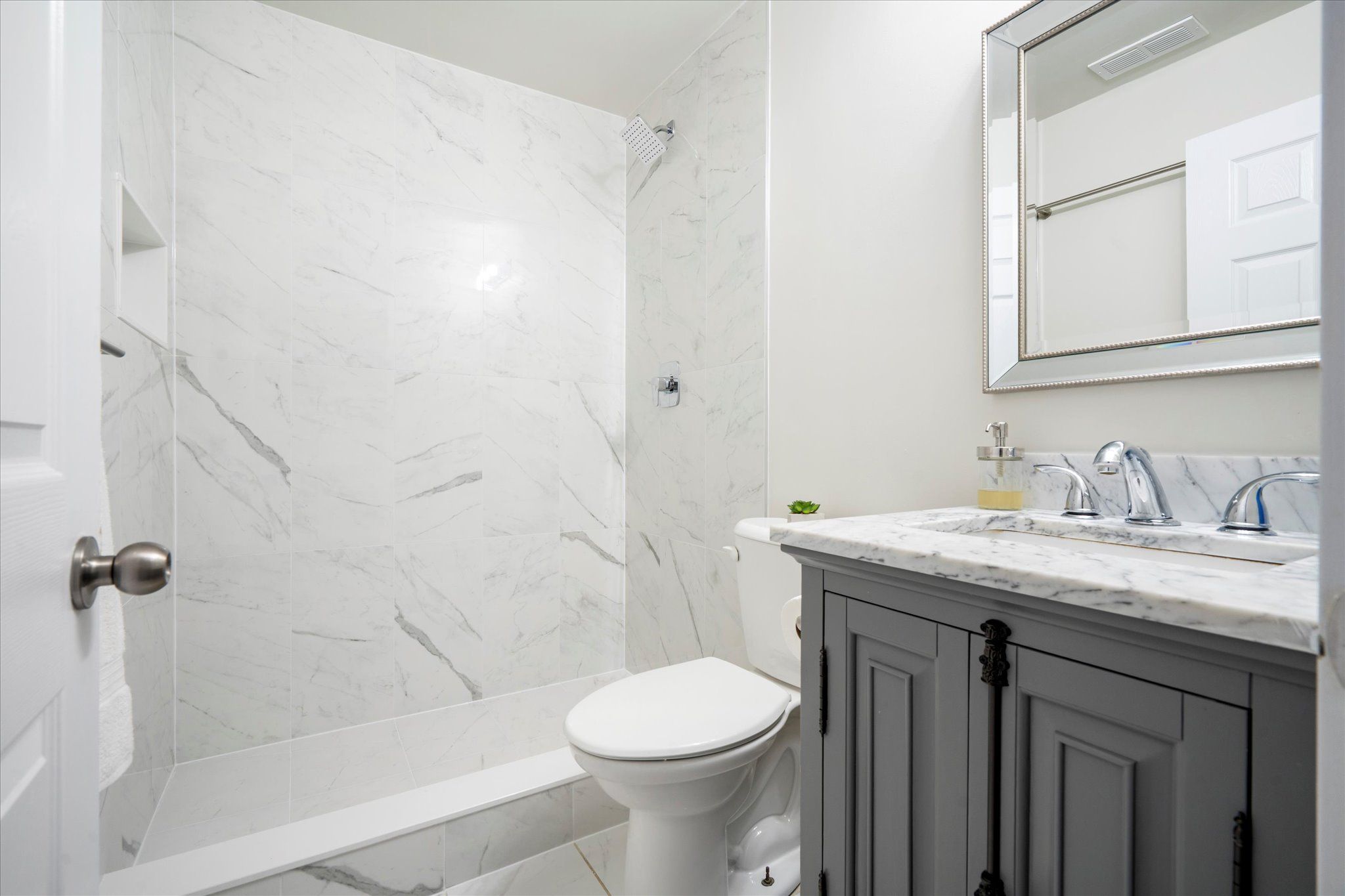 • Renovated kitchen with a natural gas stove for cooking enthusiasts.