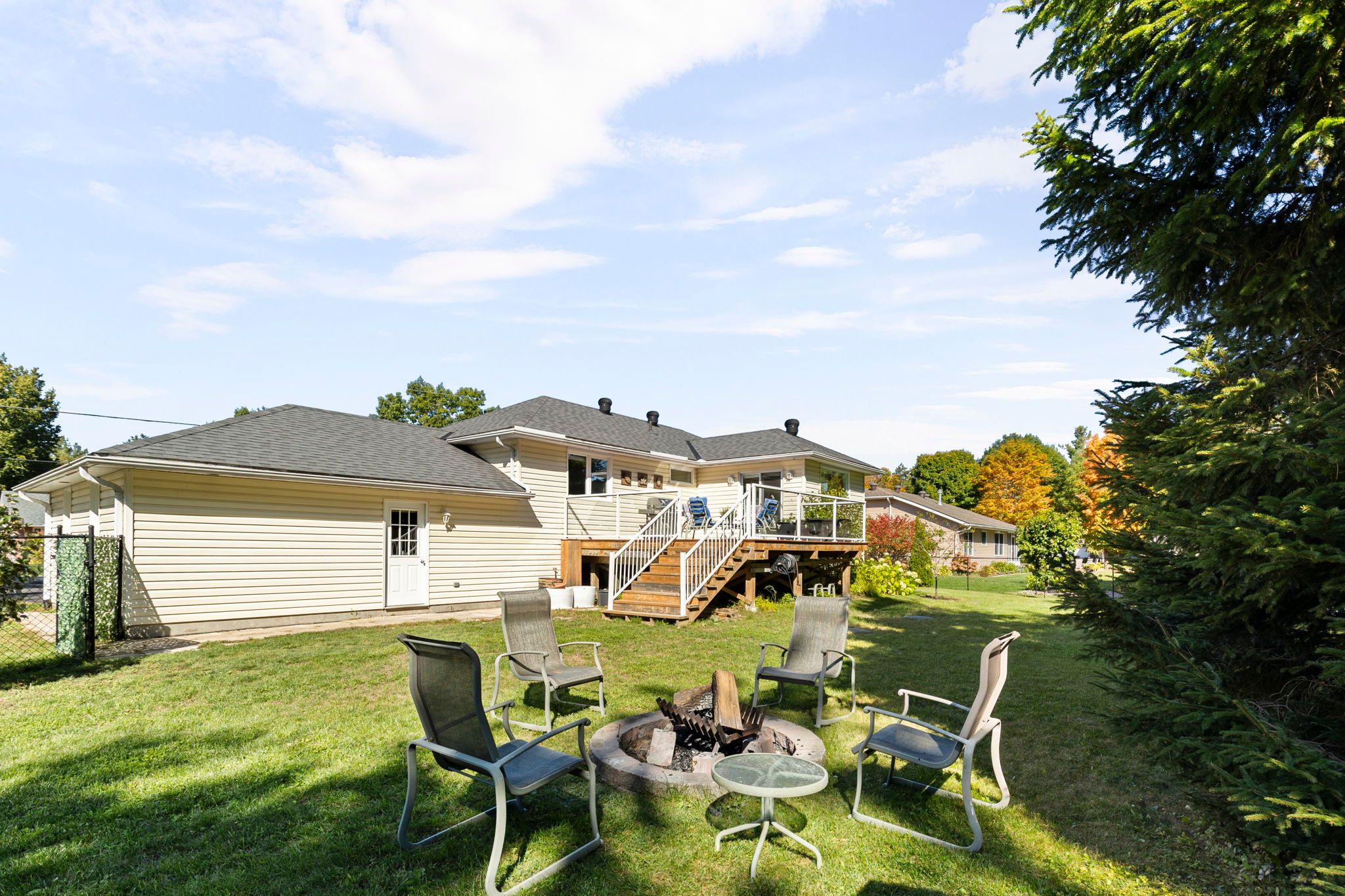 In-law or income potential | separate entrance | large above ground windows on lower level | new septic 2024 | fully fenced yard | double garage with large paved driveway. Move-in ready and packed with flexibility, this well-maintained home offers a family-friendly layout with 3 bedrooms and a full bath on the main level, plus additional bedroom and 4-piece bath on the lower level. A separate entrance already in place makes this an ideal setup for multi-generational living or future income potential. Set on a spacious, mature lot, this sun-filled property offers over 2,300 sq ft of finished living space with tasteful updates throughout. Enjoy a modernized kitchen and bathrooms, cozy gas fireplace on the main floor, and a functional layout designed for everyday family living. The fully finished lower-level features above-ground windows, a wood-burning fireplace, and separate access from the garage, providing excellent in-law or income suite potential. Outside, a spacious deck overlooks the fully fenced yard, perfect for kids, pets, summer entertaining, or the future addition of a pool. Additional highlights include a brand-new septic system (july 2024), natural gas heating, central air, large double-car garage, and paved driveway with ample parking for multiple vehicles and recreational toys. The yard is accented with apple and plum trees and a unique fruit salad tree, adding charm and privacy. Conveniently located close to parks, schools, and amenities, just 8 minutes to elmvale and 20 minutes to midland, this home offers the best of small-town living. Bonus: you're just a short stroll from wyevale's famous soft-serve ice cream - a favourite perk for visitors. A rare offering in wyevale - ideal for families, multi-generational living, or income potential. Book your showing today ** open house sat apr 25 12-3 **