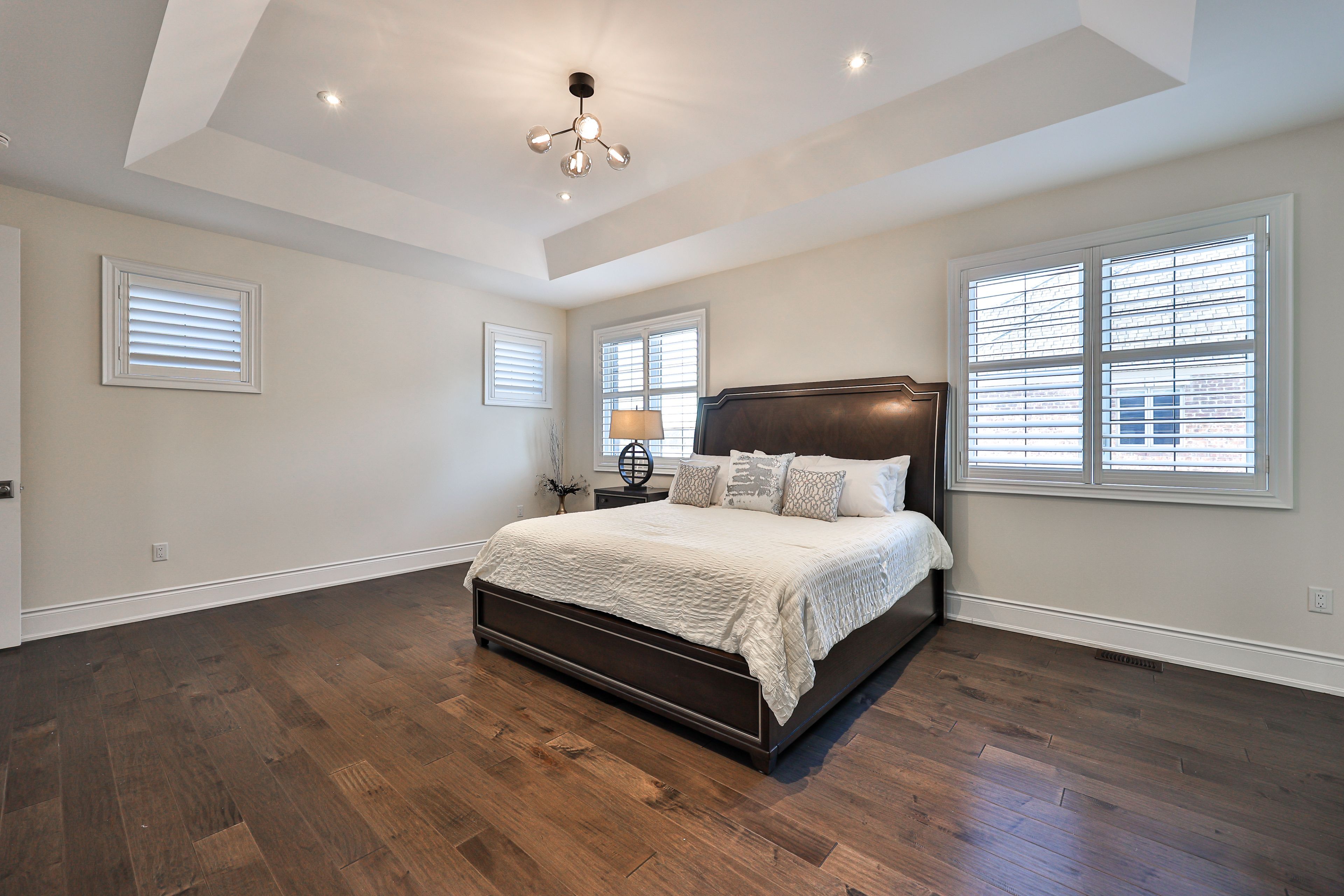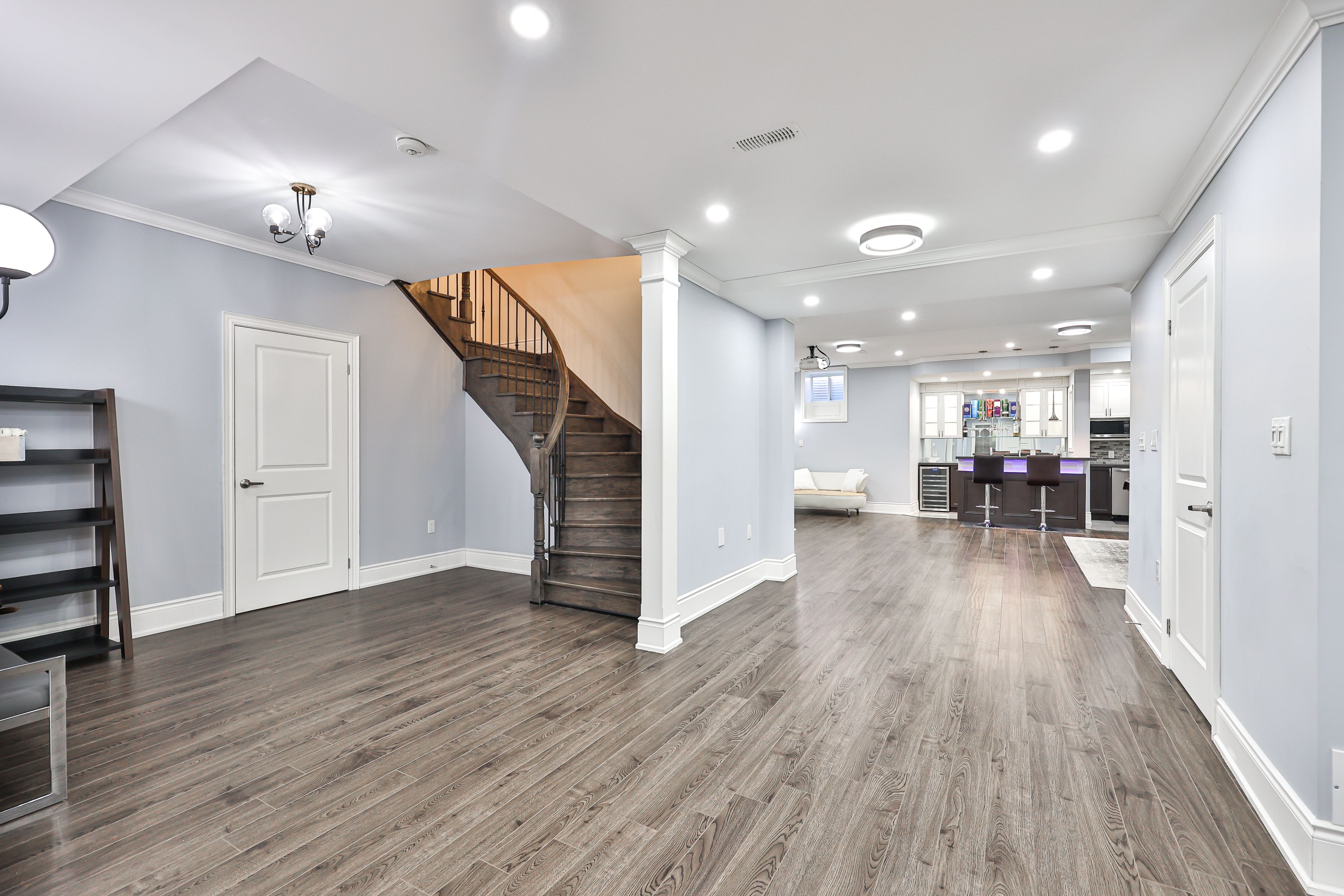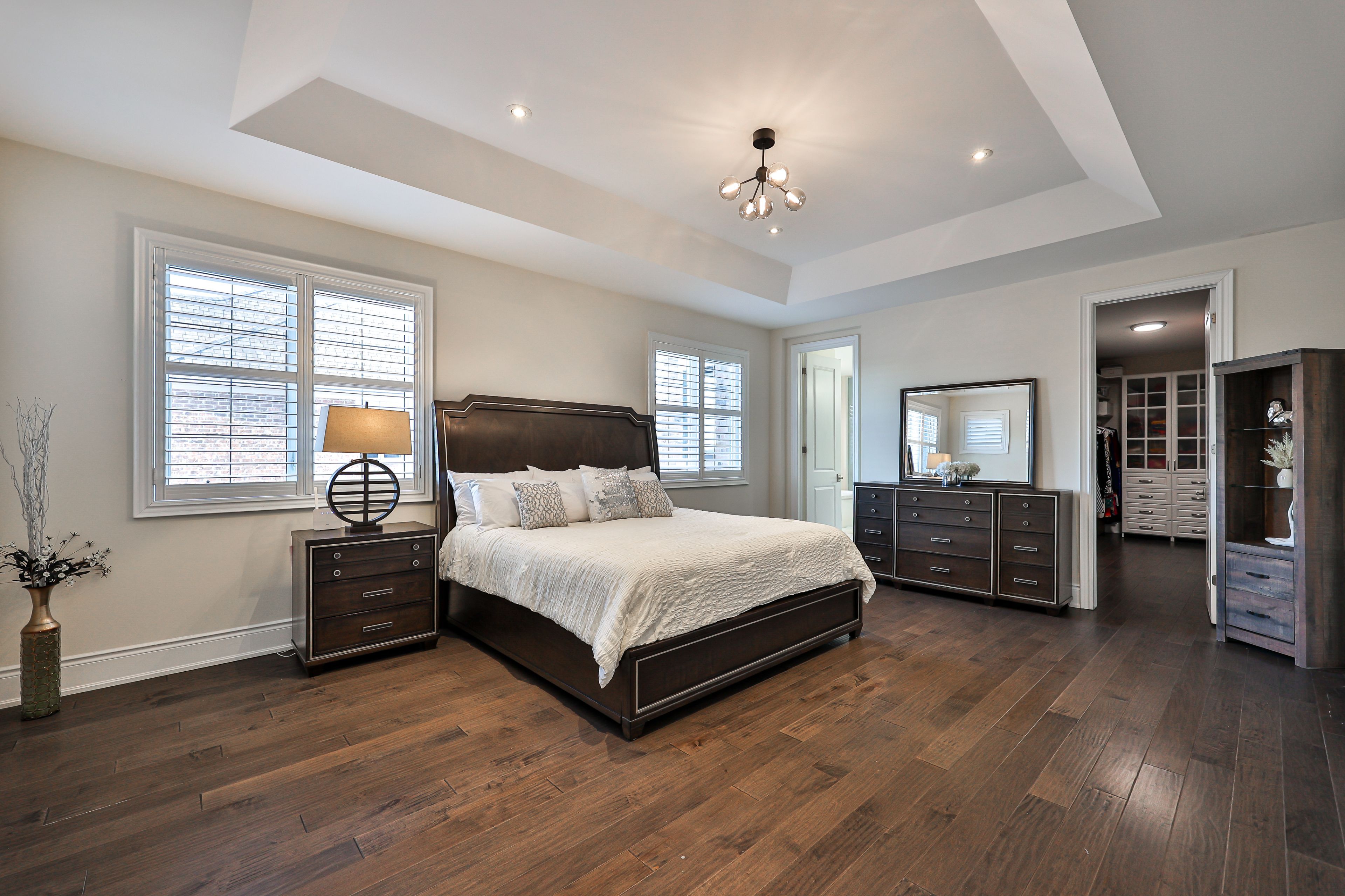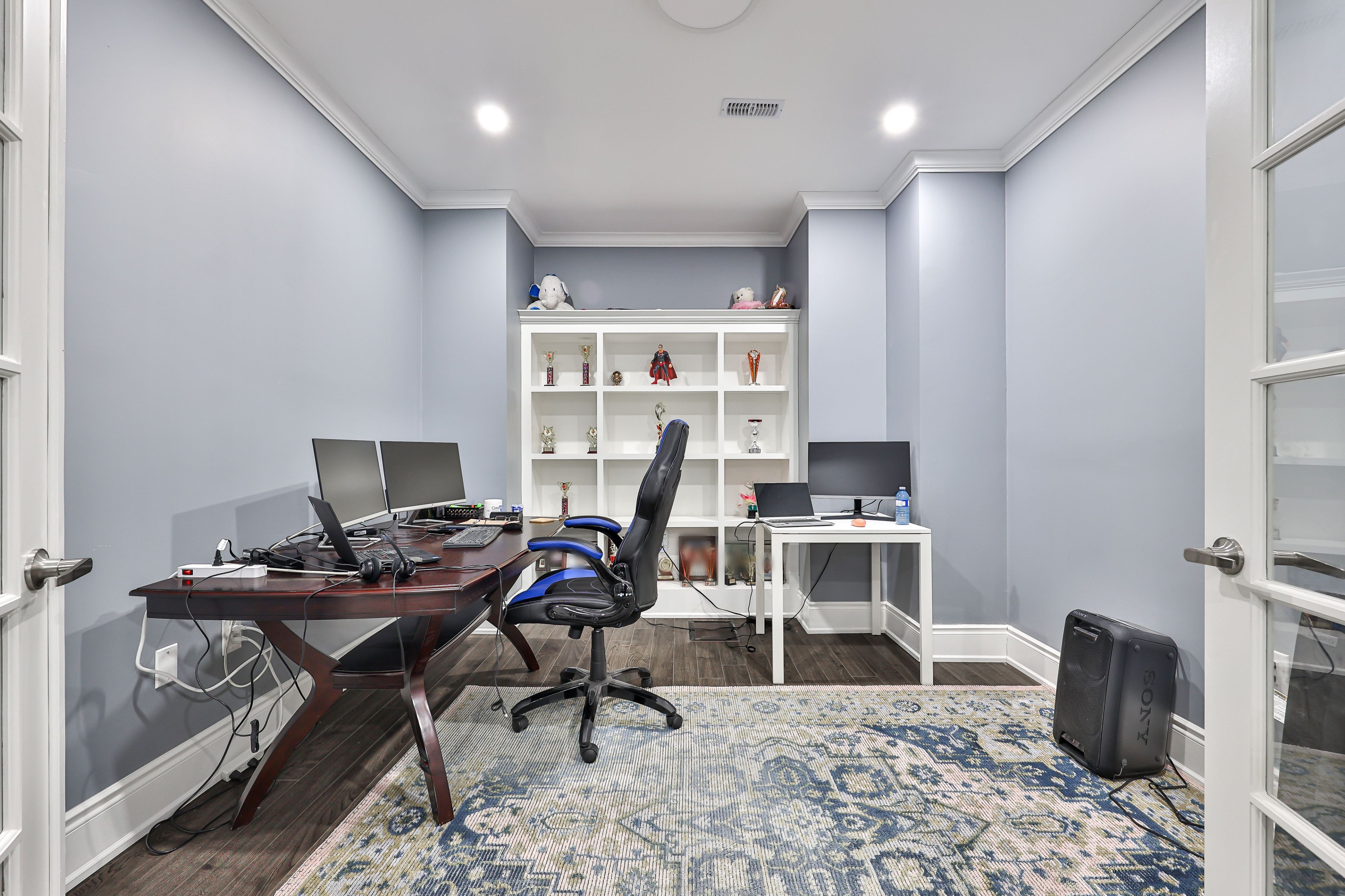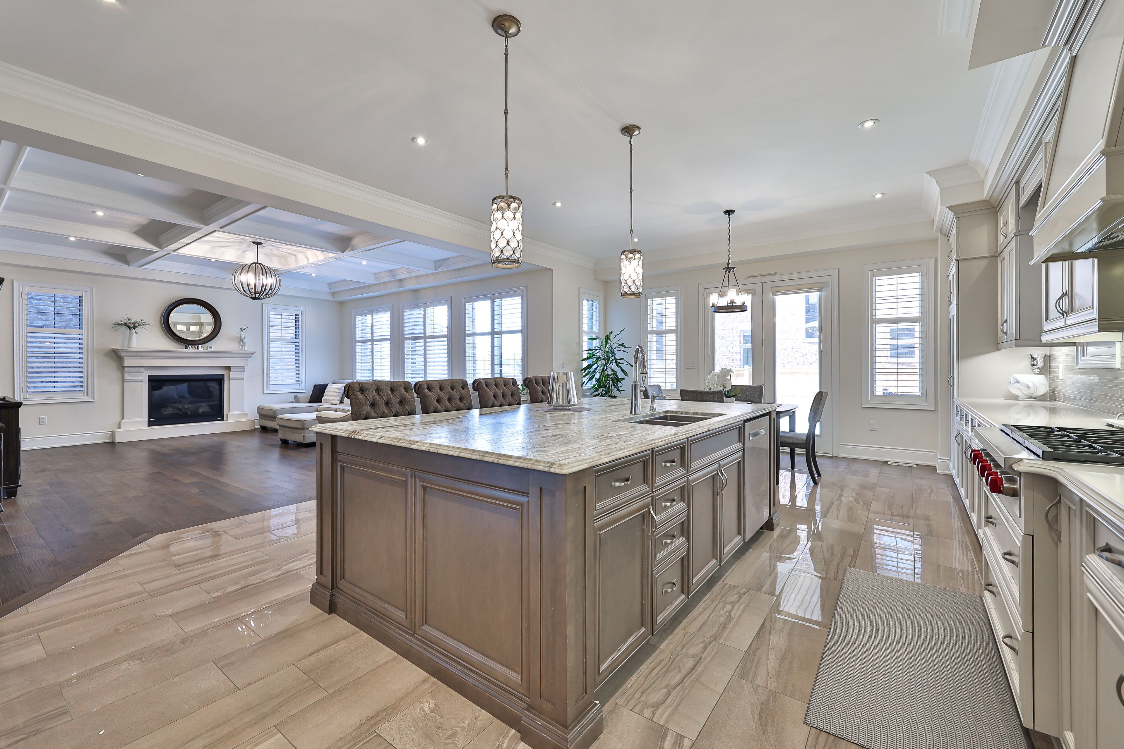 • Immaculate design features like coffered ceilings and hardwood floors.