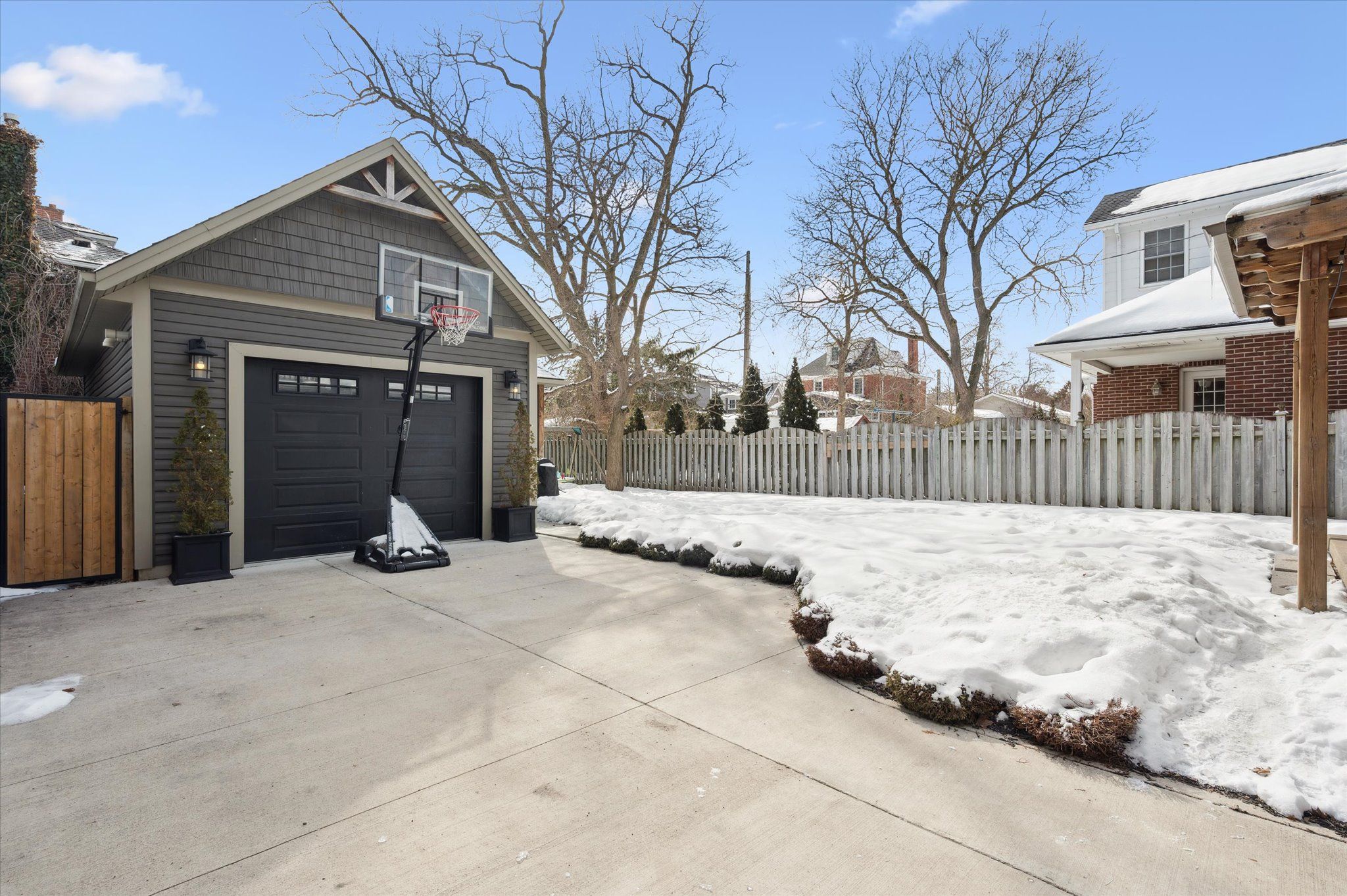 • Heated driveway and detached garage with amenities for entertaining.