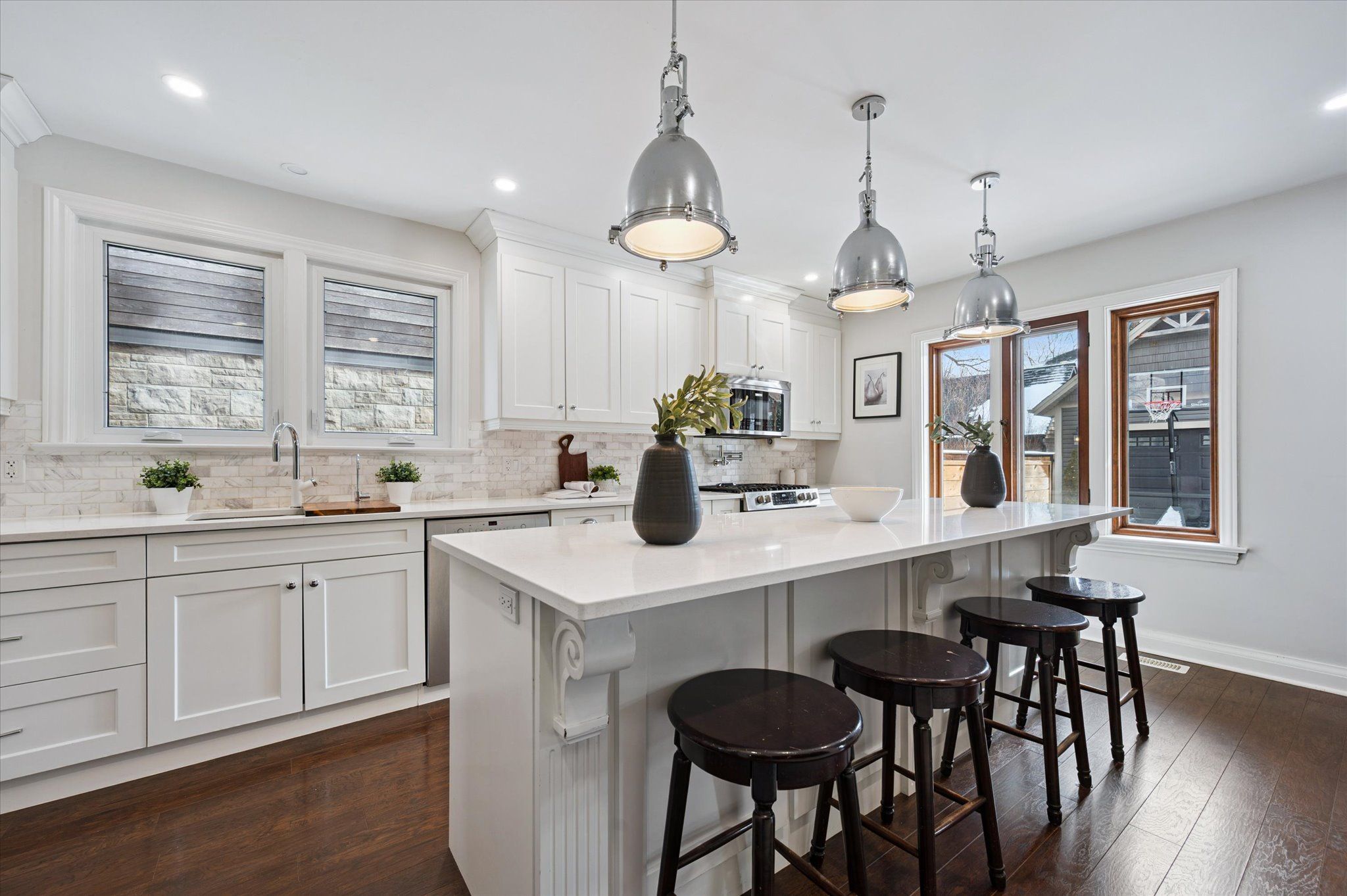 This is 63 claremont ave, a rare opportunity in the heart of old westmount, one of kitchener's most sought-after neighbourhoods. Just steps to the shops, cafés, restaurants, and vibrant community atmosphere of belmont village, this is truly an aaa location. Renovated in 2015, the home blends timeless character with modern updates. Offering 3 bedrooms and 3 bathrooms, the thoughtfully designed layout is anchored by a stunning kitchen with a large island, perfect for entertaining and everyday living. The fully finished basement adds even more living space, complete with a stylish bar area for hosting or relaxing. Outside, the features continue: a heated driveway eliminates winter shoveling, and the detached garage (built in 2019) is a standout. Fully heated with its own full bathroom, bar area, and roll-up hosting window, it's an incredible space for entertaining, hobbies, or the ultimate hangout. A beautifully updated lifestyle property in one of kitchener's most walkable communities, don't miss it.
